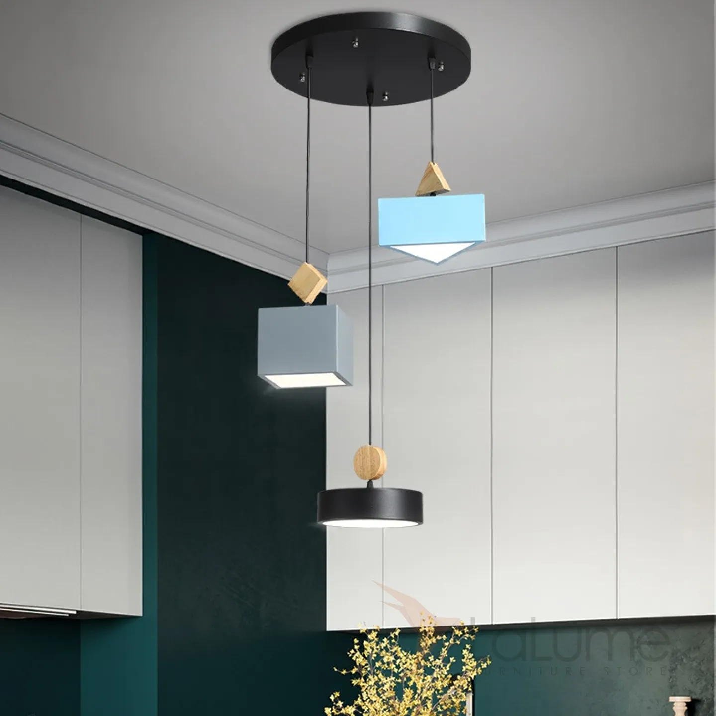 Светодиодная люстра с плафонами разной геометрической формы DENIZA
