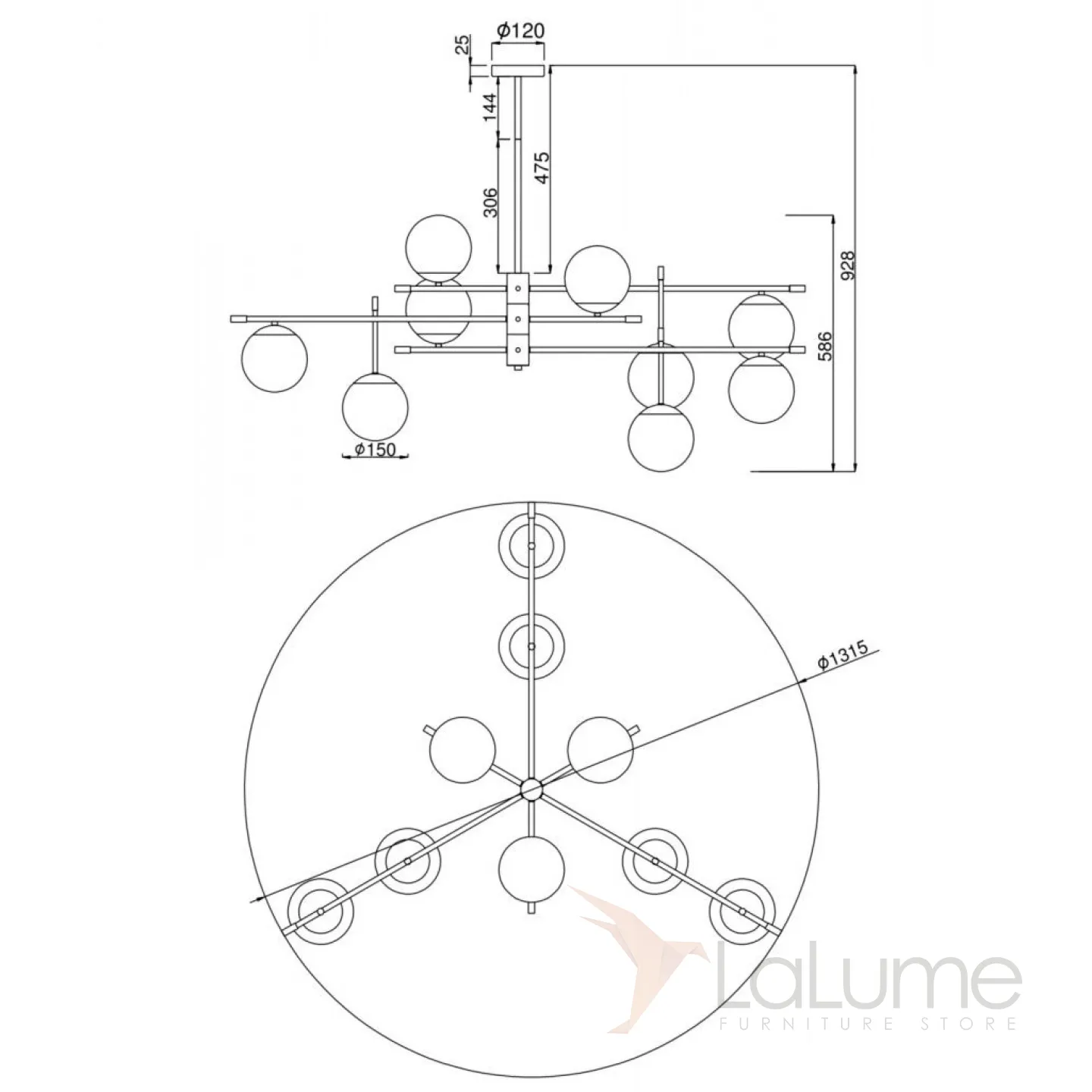 Люстра с шарообразными плафонами на трех разноуровневых планках GERDY CH