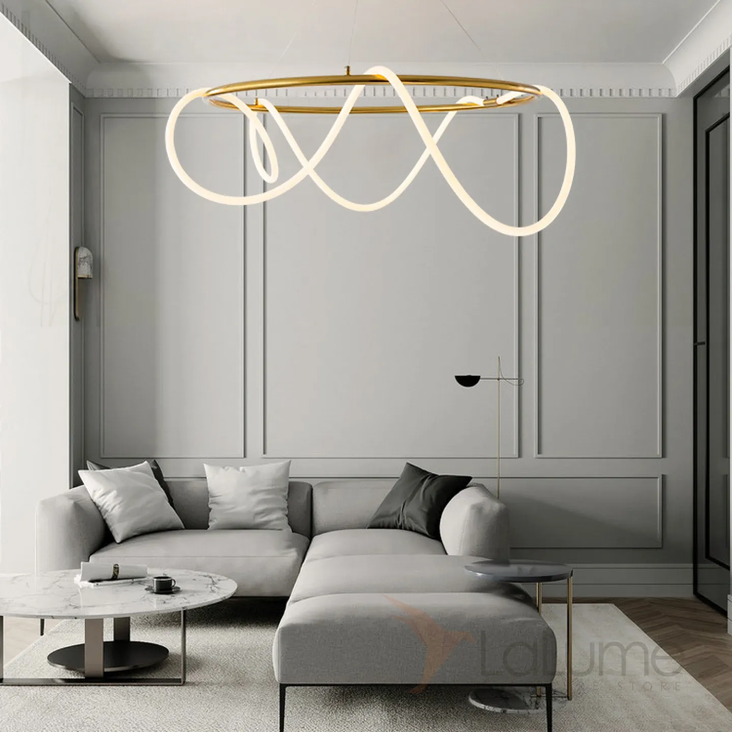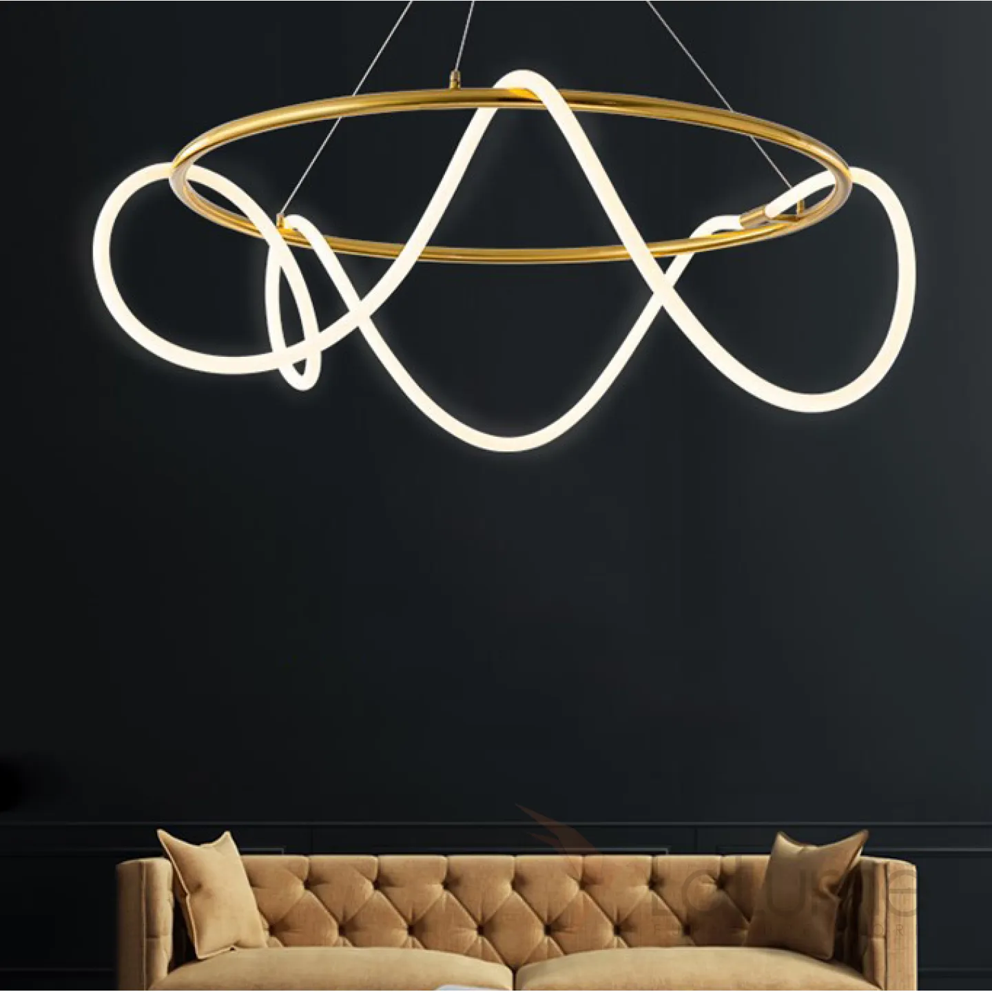 Подвесная люстра в виде кольца, свободно обвитого светодиодным шнуром GLORIFY R