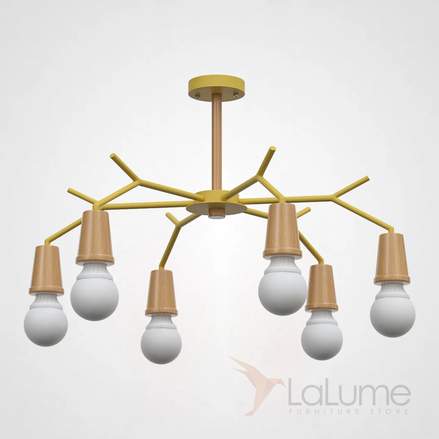 Люстра в скандинавском минималистичном дизайне на каркасе имитирующем ветви дерева. Идеальна для использования в помещениях с низкими потолками без потери желаемого стиля! Высота стойки от потолка — всего 32 см!!!