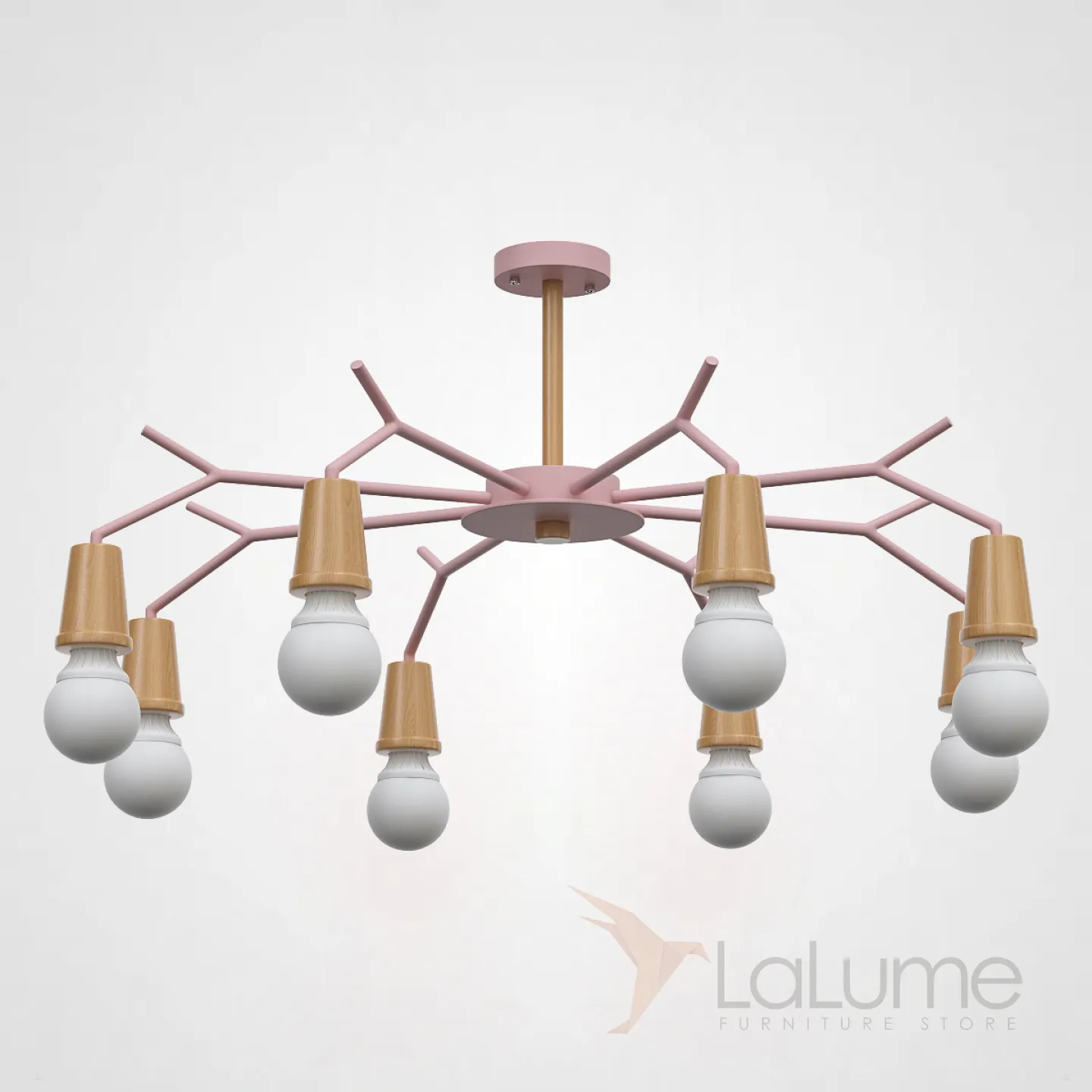 Люстра в скандинавском минималистичном дизайне на каркасе имитирующем ветви дерева. Идеальна для использования в помещениях с низкими потолками без потери желаемого стиля! Высота стойки от потолка — всего 32 см!!!