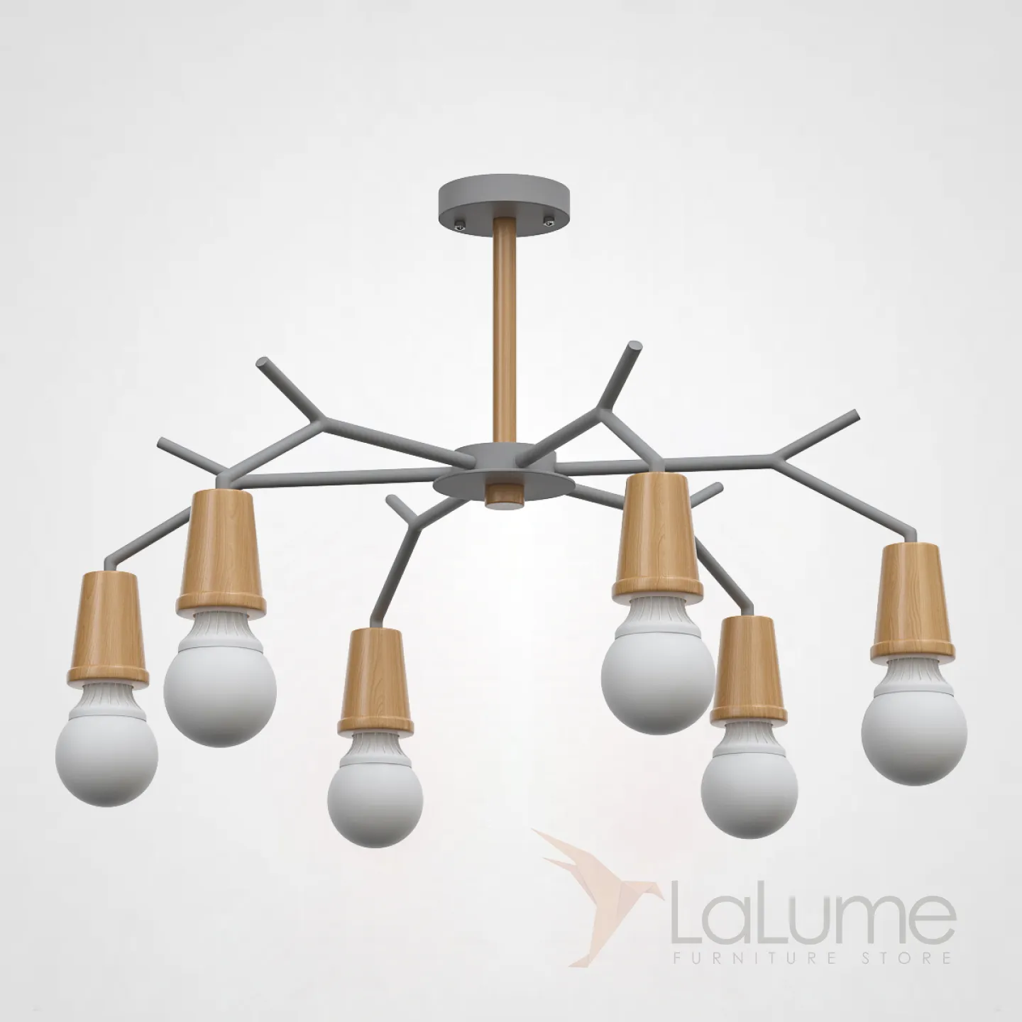 Люстра в скандинавском минималистичном дизайне на каркасе имитирующем ветви дерева. Идеальна для использования в помещениях с низкими потолками без потери желаемого стиля! Высота стойки от потолка — всего 32 см!!!
