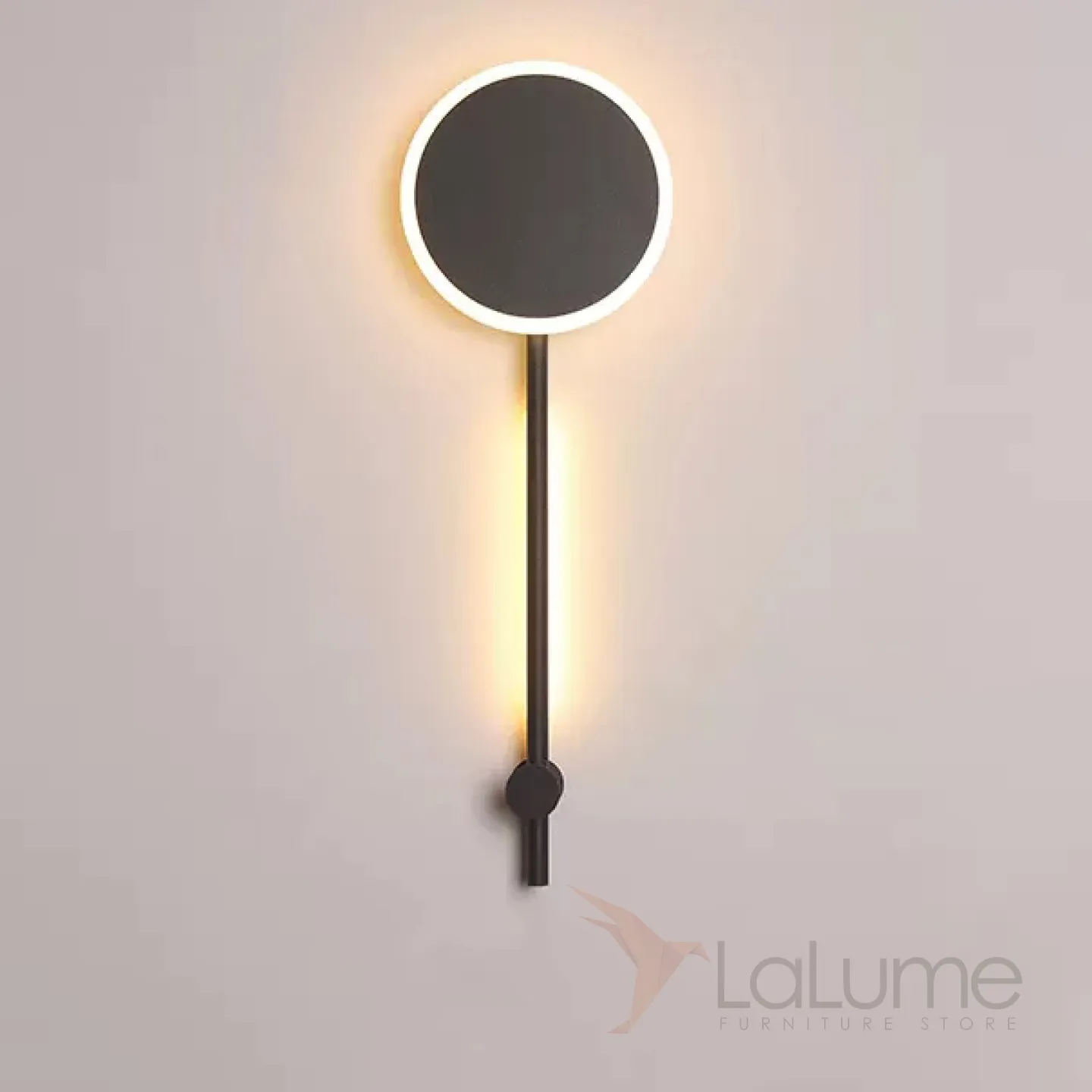 Серия настенных светильников в виде комбинации дисковидного плафона и вертикальной стойки с внешней LED-подсветкой MARA H60 Black Трехцветный свет