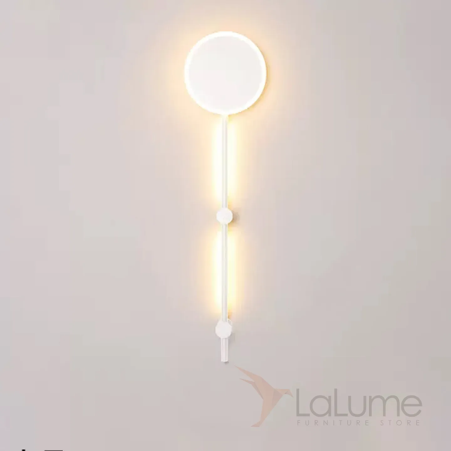 Серия настенных светильников в виде комбинации дисковидного плафона и вертикальной стойки с внешней LED-подсветкой MARA H80 White Трехцветный свет