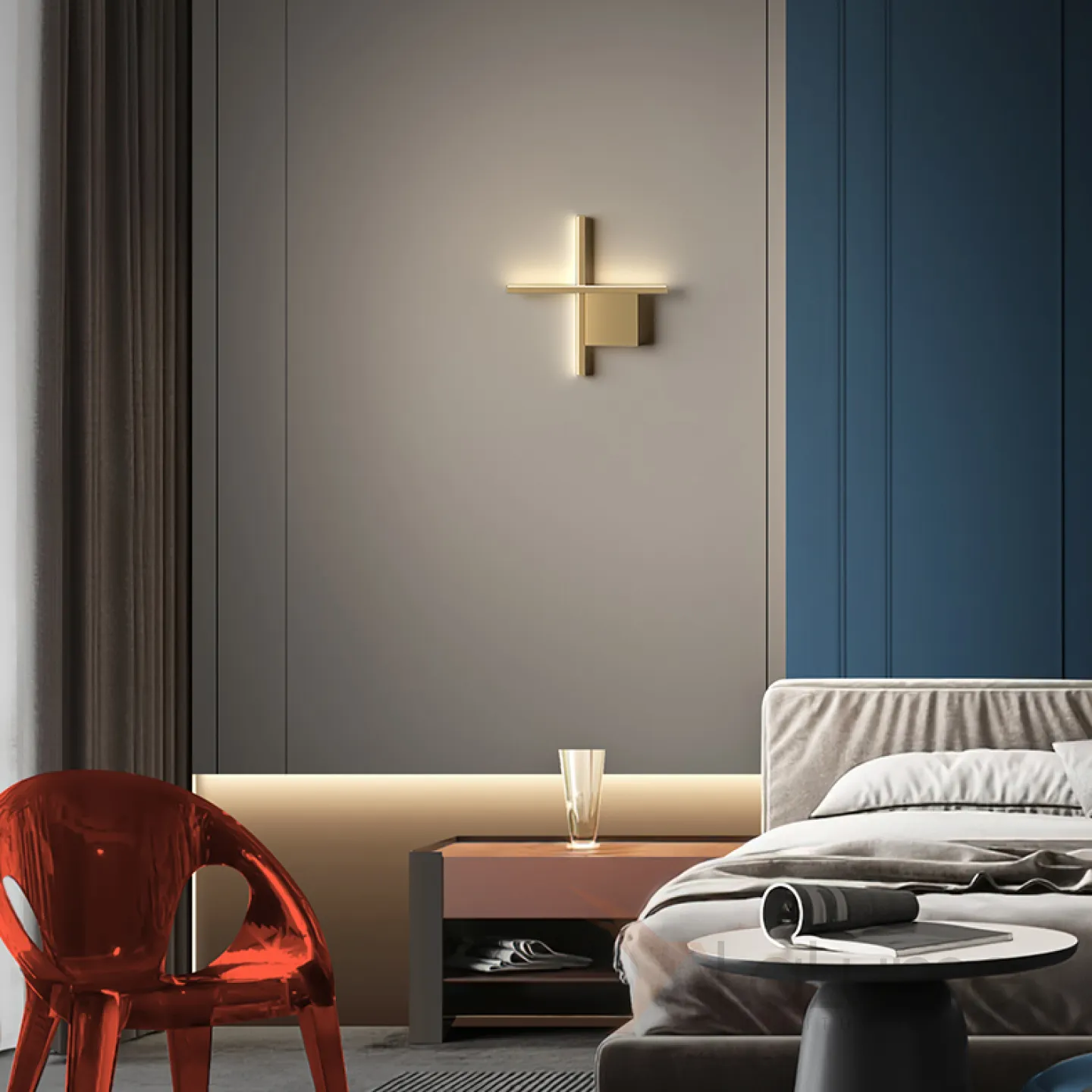 Серия настенных светодиодных светильников с прямоугольными перекрестными плафонами на квадратном креплении STICH B L100 Brass