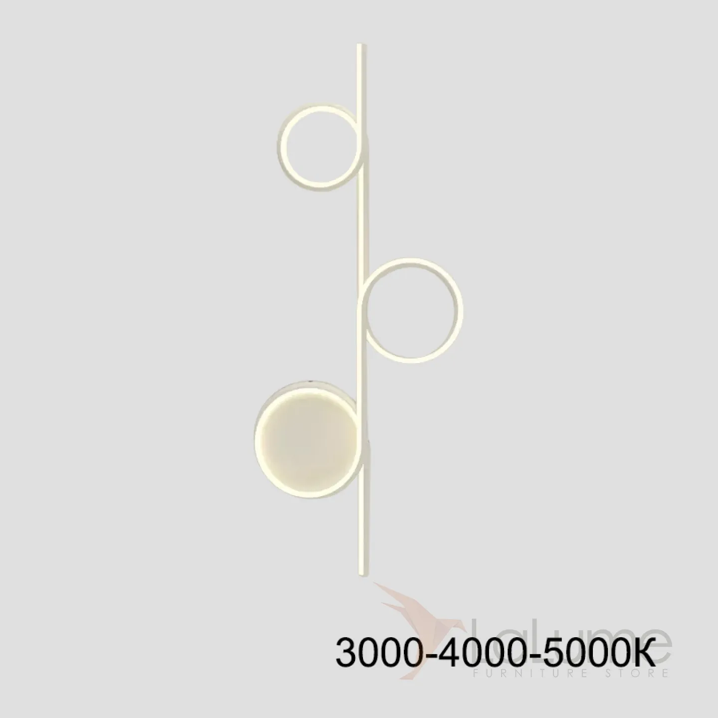 Серия настенных светодиодных светильников в виде комбинации вытянутой вертикальной стойки и светящихся колец DONATA С H60 White Трехцветный свет