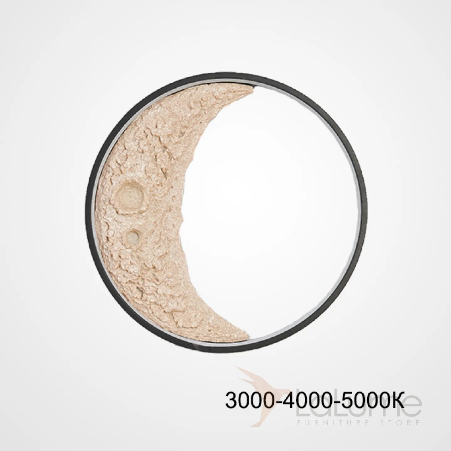Настенный светодиодный светильник на кольцевом каркасе в виде убывающего месяца с рельефной поверхностью COSMOS WANING Луна D40 Трехцветный свет
