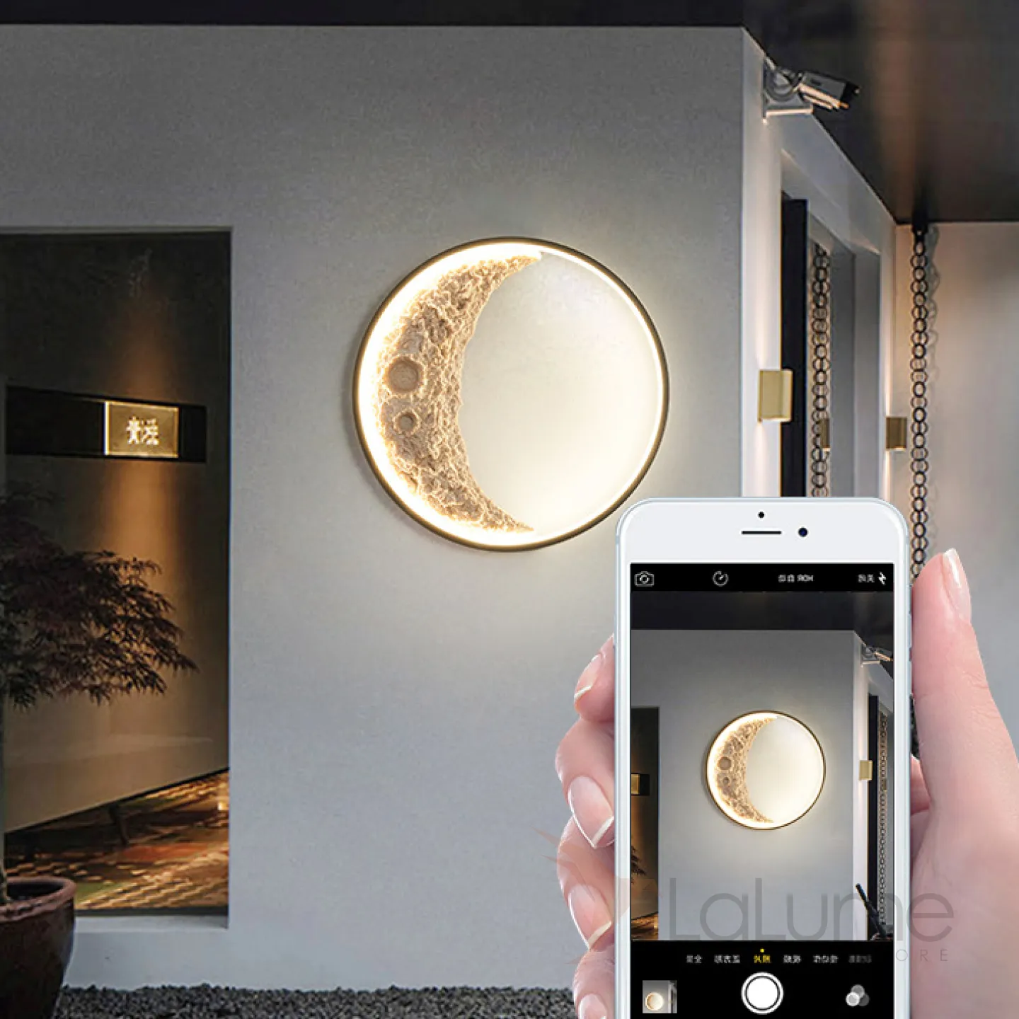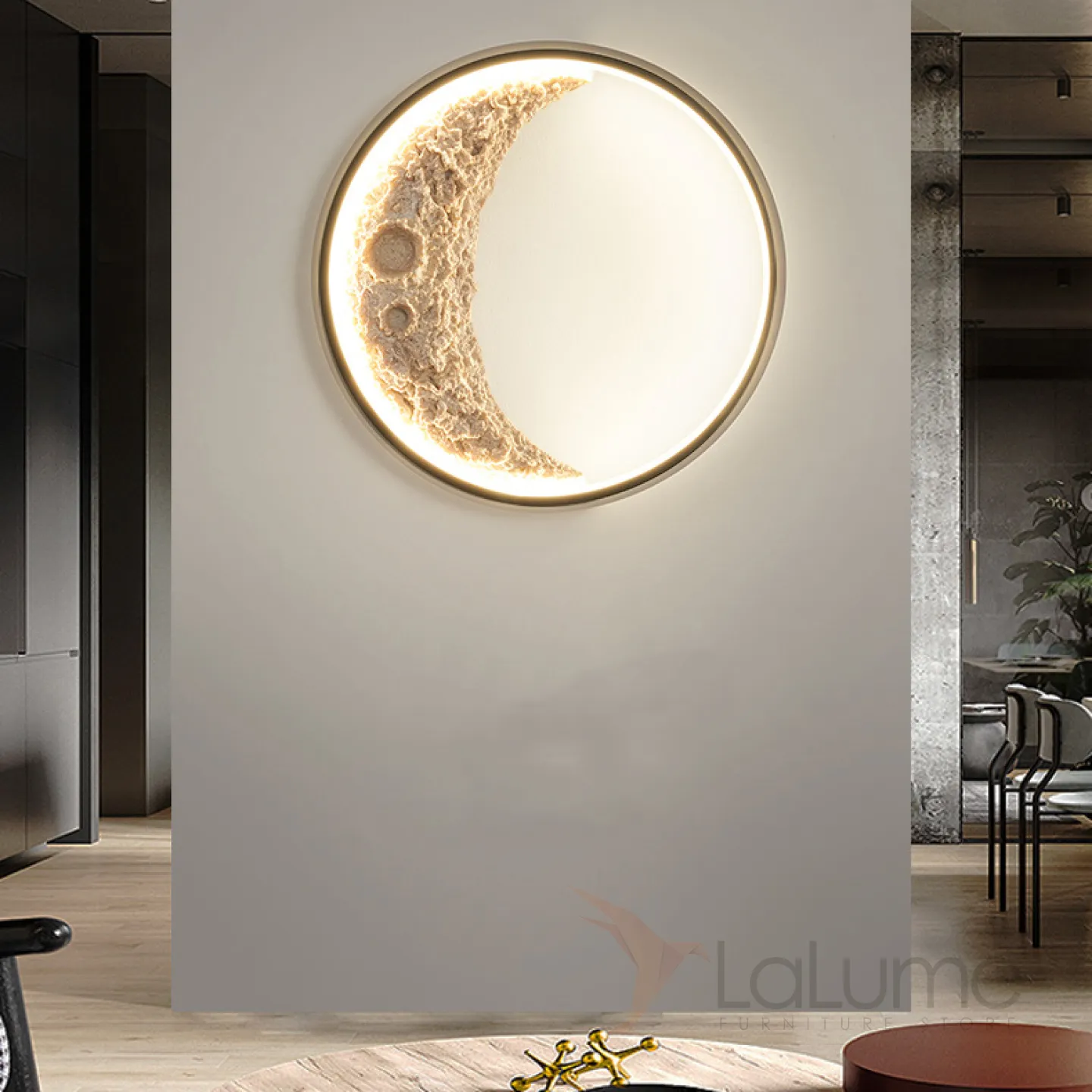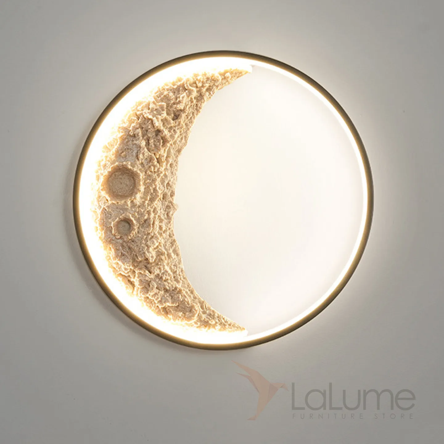 Настенный светодиодный светильник на кольцевом каркасе в виде убывающего месяца с рельефной поверхностью COSMOS WANING Луна D80 Трехцветный свет