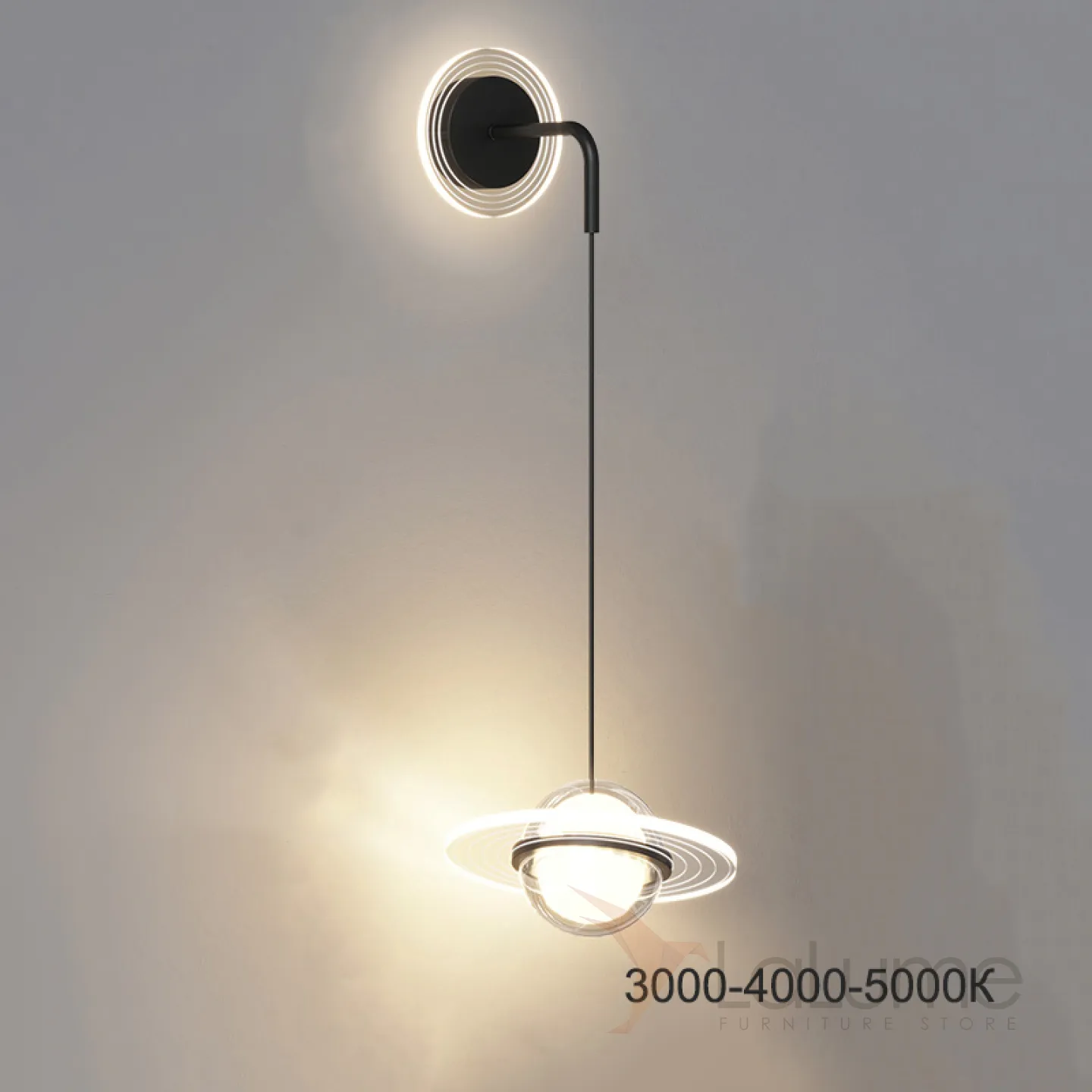 Серия настенных светодиодных светильников с плафонами в виде комбинации шара и пересеченного диска ELECTRON WALL B Трехцветный свет