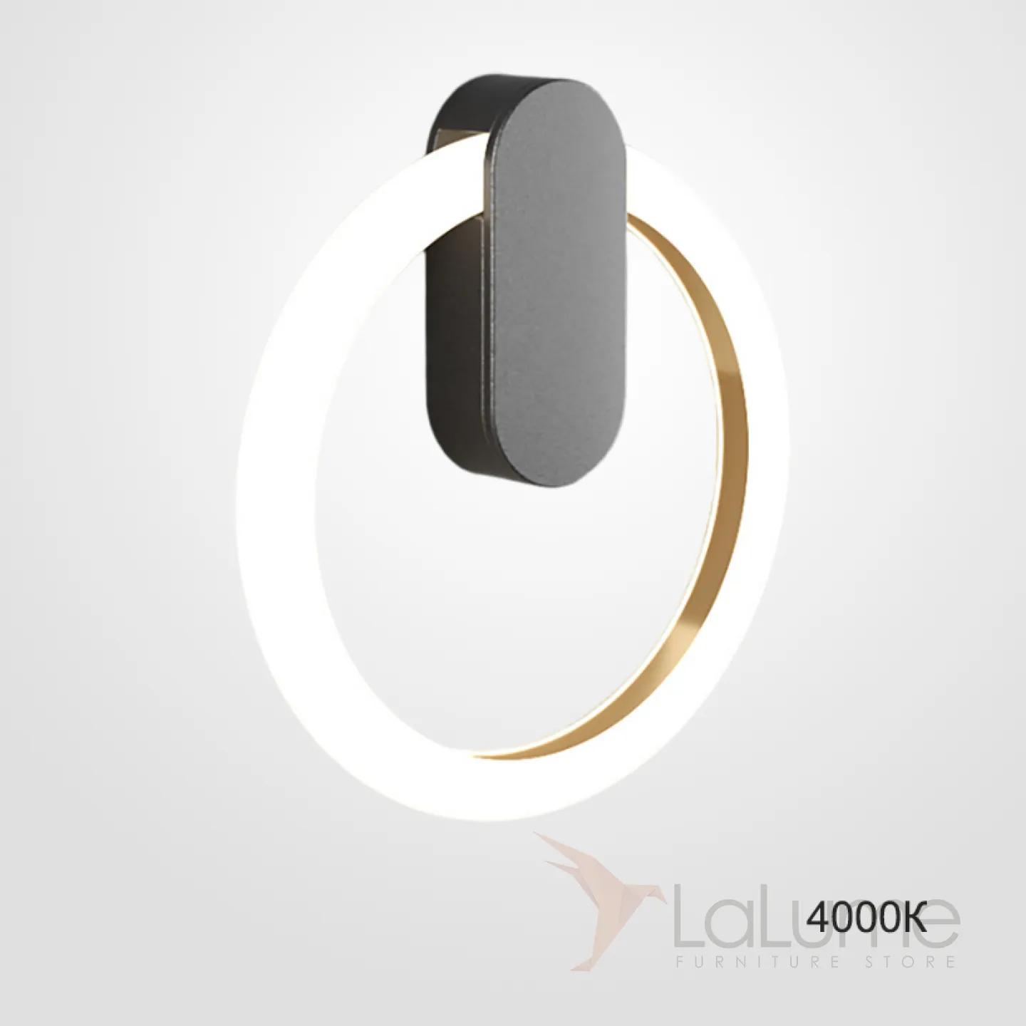 Серия настенных светодиодных светильников с отделкой в цвете латунь по внутреннему контуру кольцевидного плафона GINA WALL D30 Black 4000К