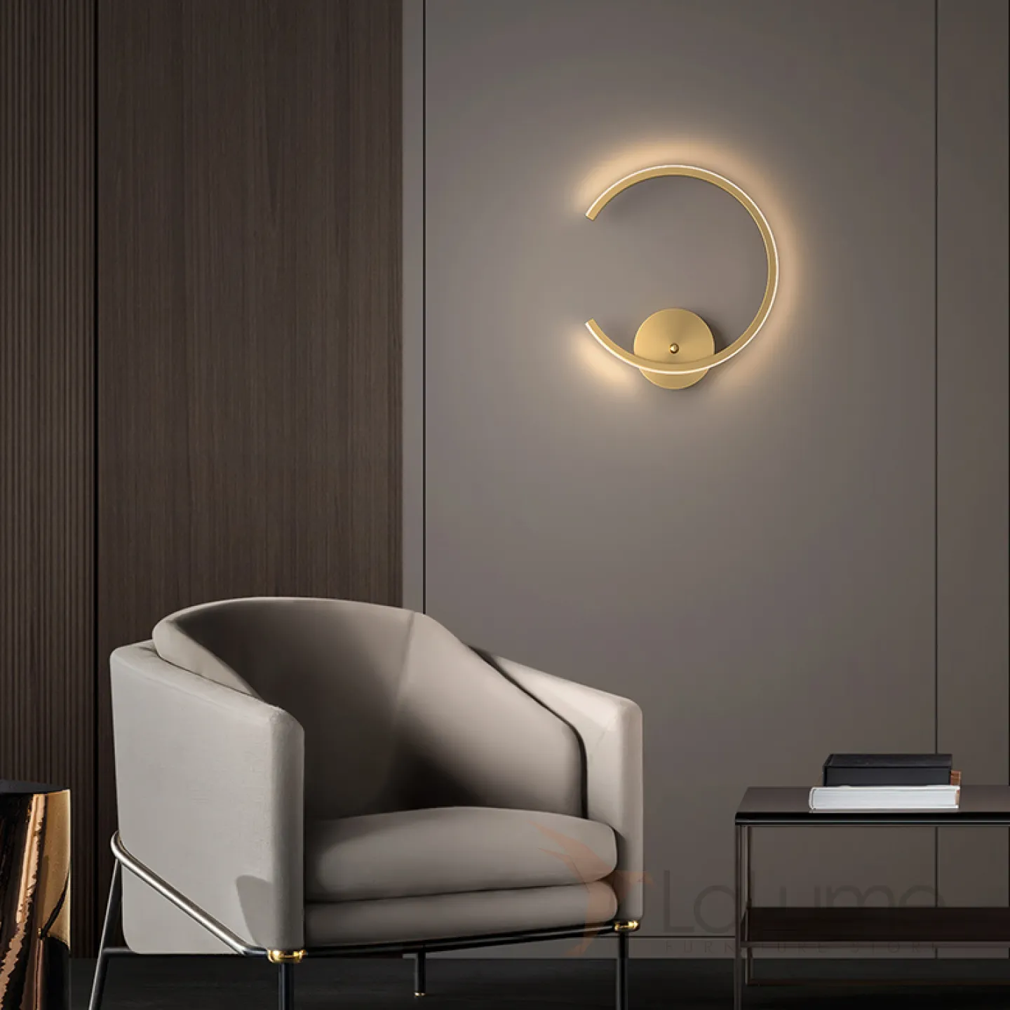 Серия настенных светодиодных светильников с плафоном в виде разомкнутого кольца с внешней LED-подсветкой RIN D20 Brass