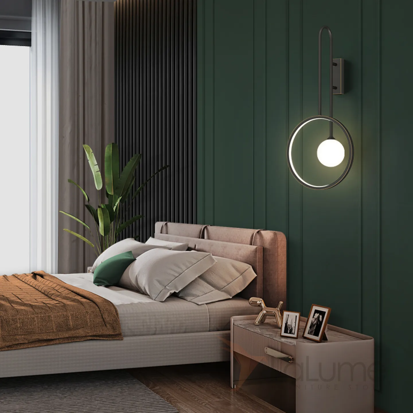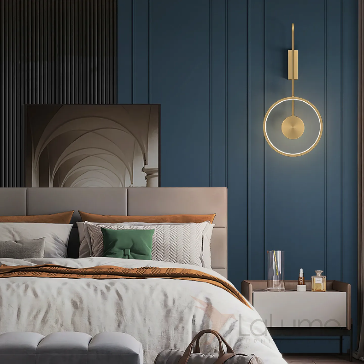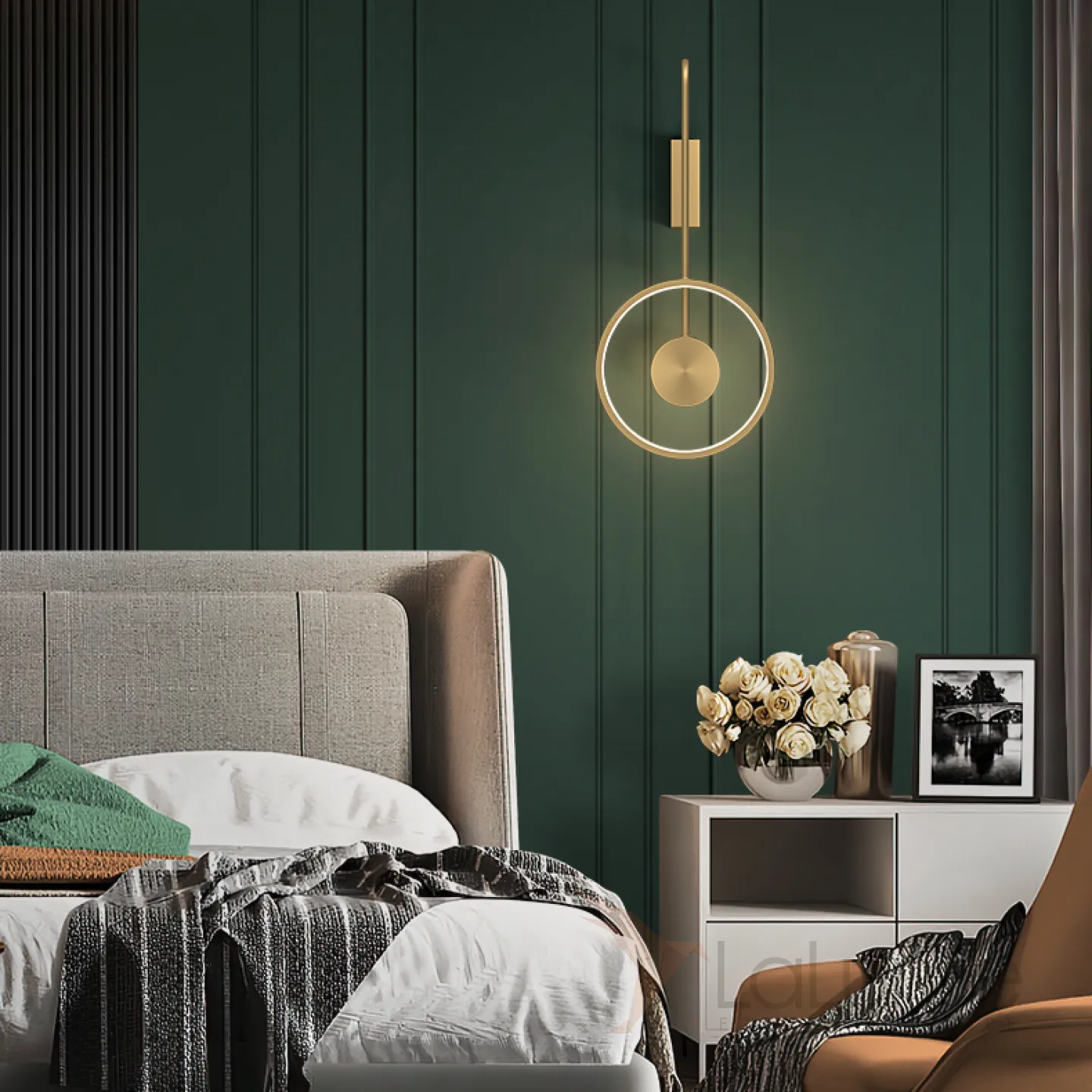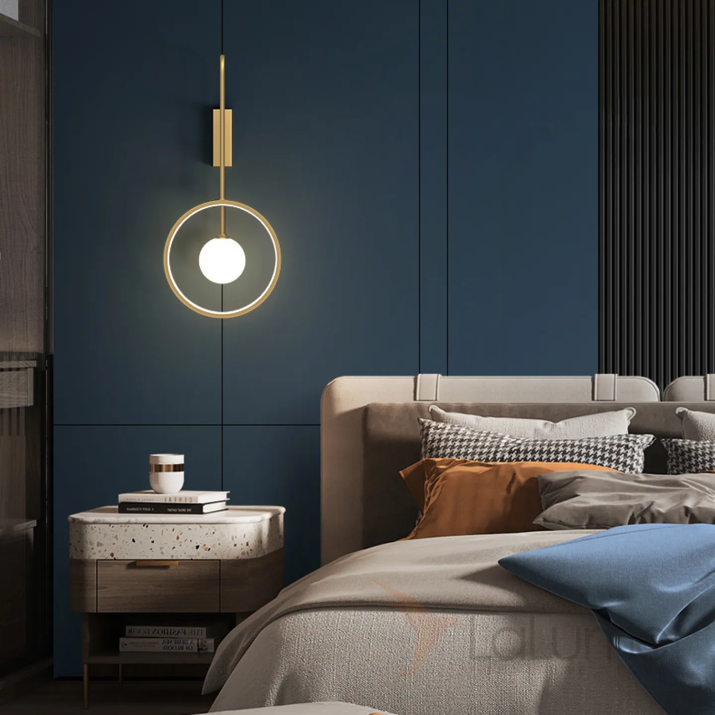 Серия светодиодных настенных светильников в виде комбинации светящегося кольца и шарообразного плафона из стекла DIDDI A Brass