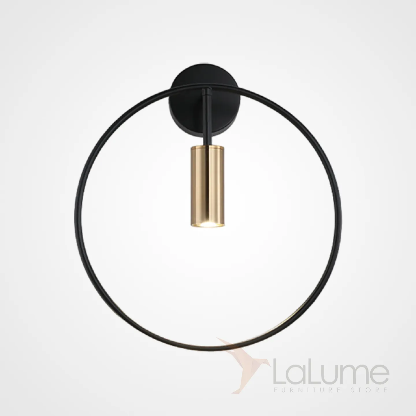 Серия настенных светильников с цилиндрическим плафоном на кольцевом каркасе с круглым креплением VELMA D28 Black Gold