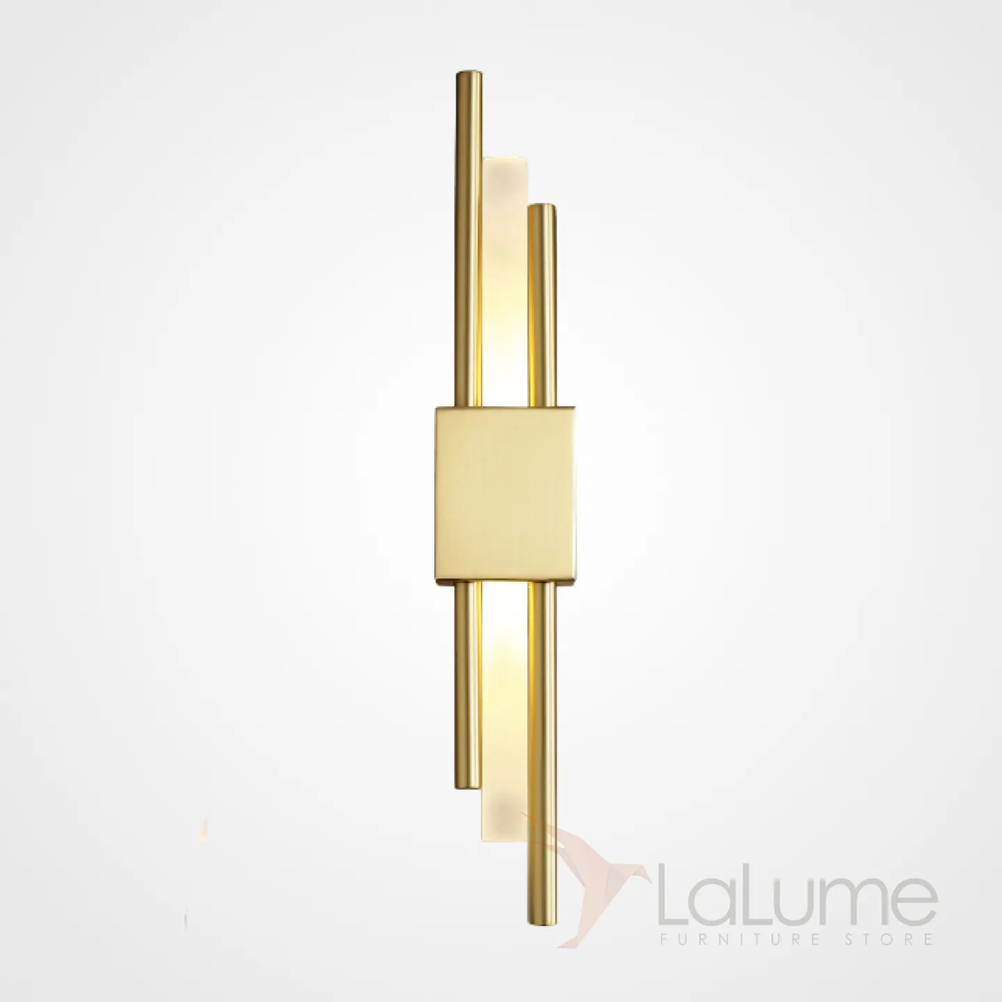 Настенный светодиодный светильник с белым цилиндрическими плафоном на металлическом основании с двумя разноуровневыми стержнями CHORD C Brass
