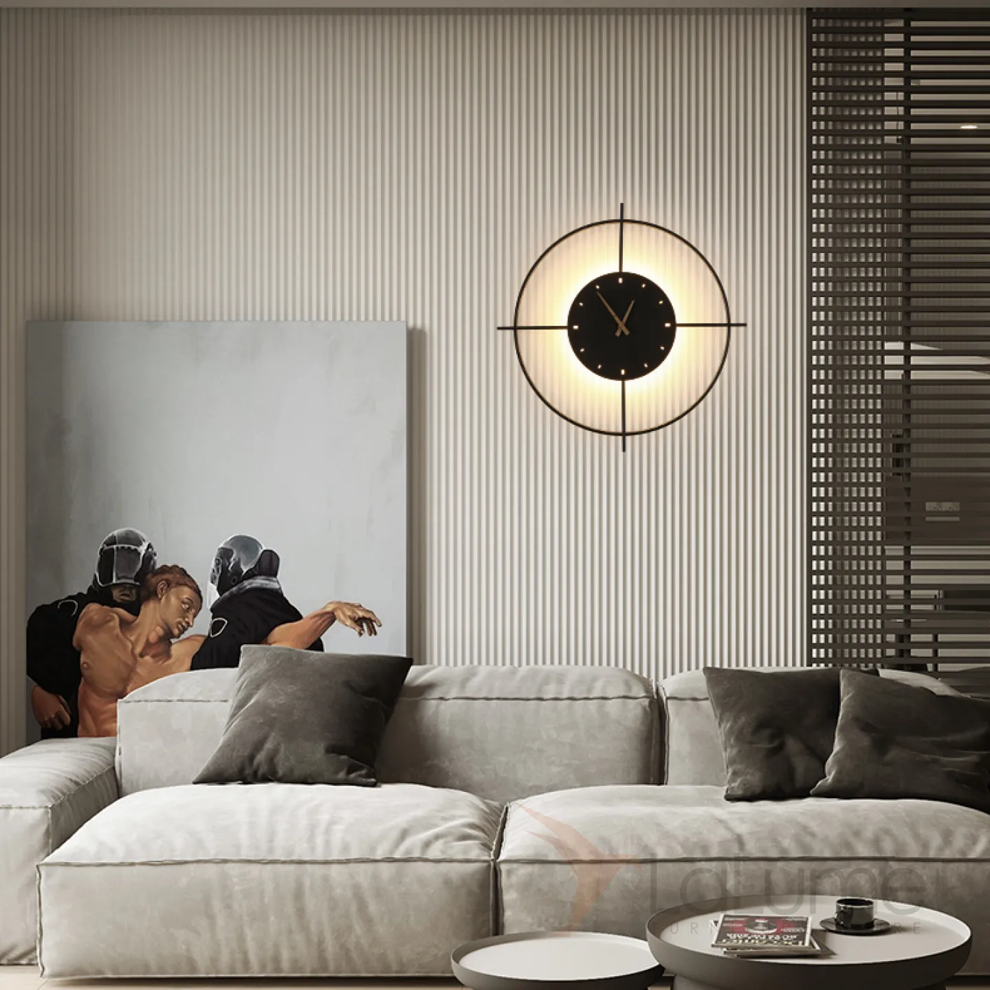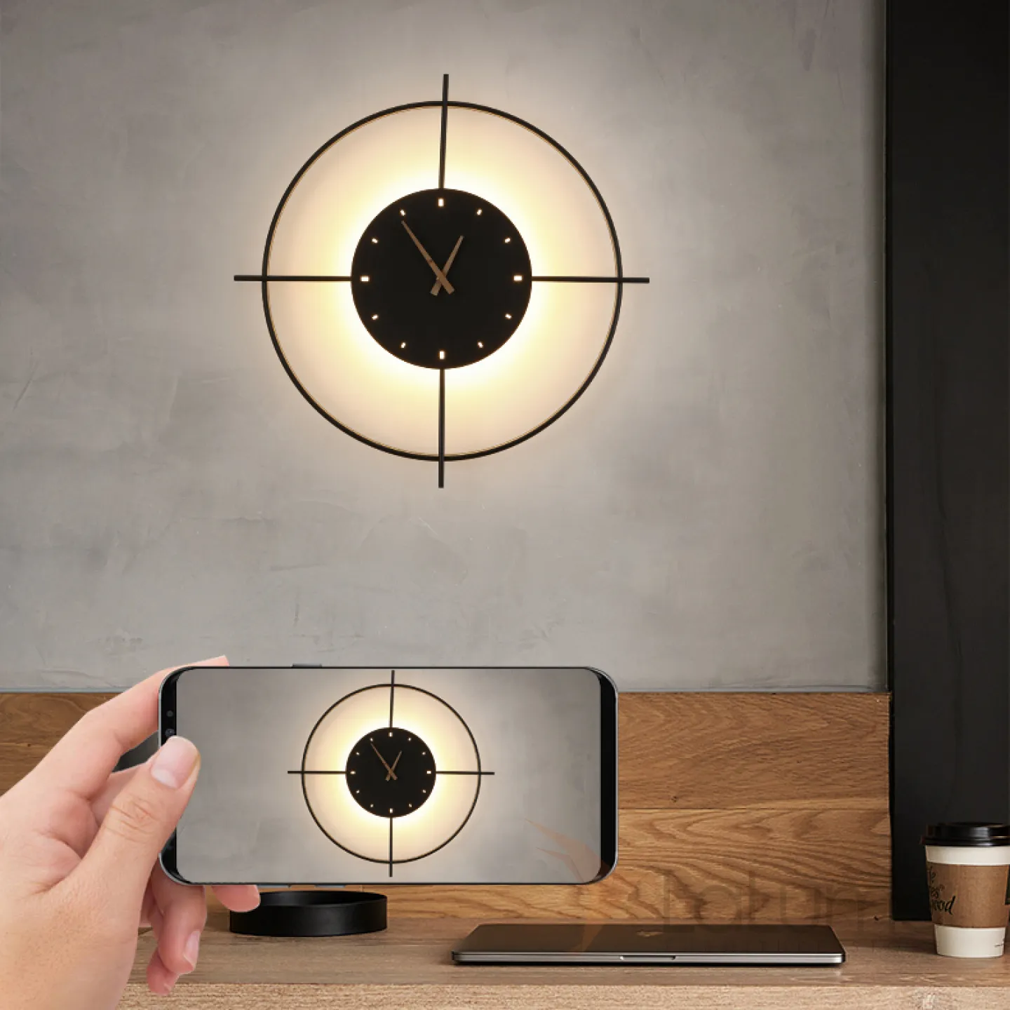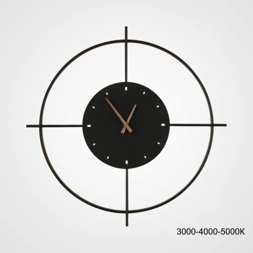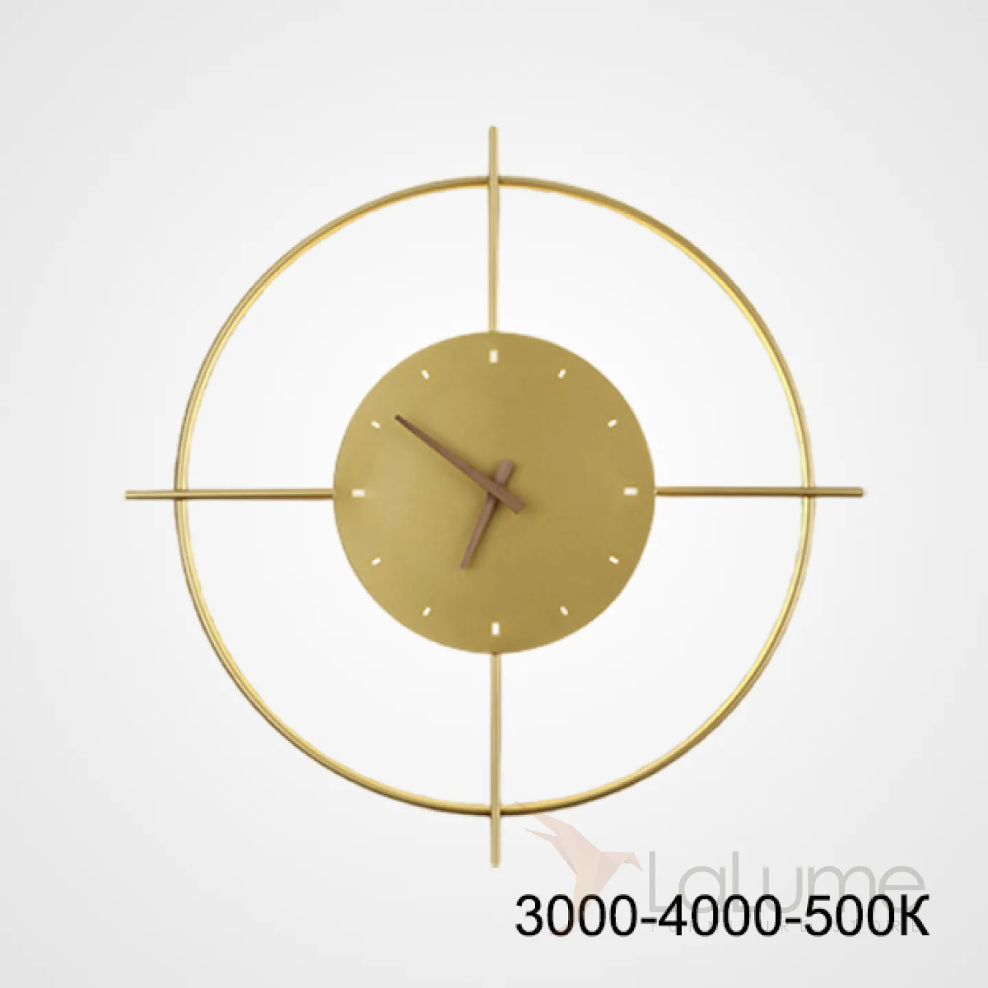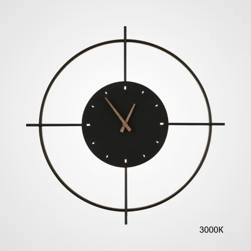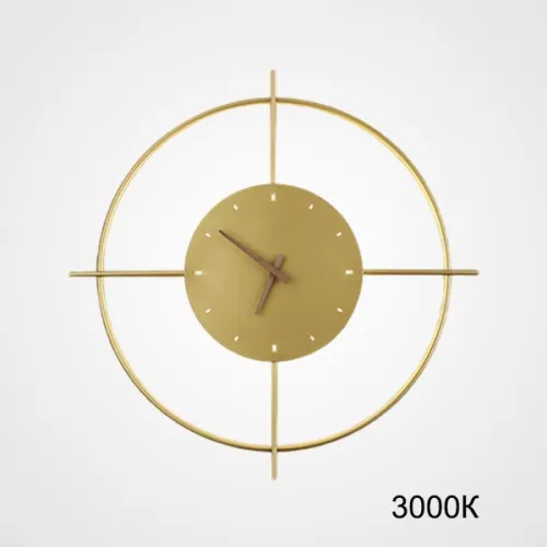 Серия настенных светодиодных светильников в виде композиции металлического кольца и диска с часовым механизмом NINNA Brass Трехцветный свет