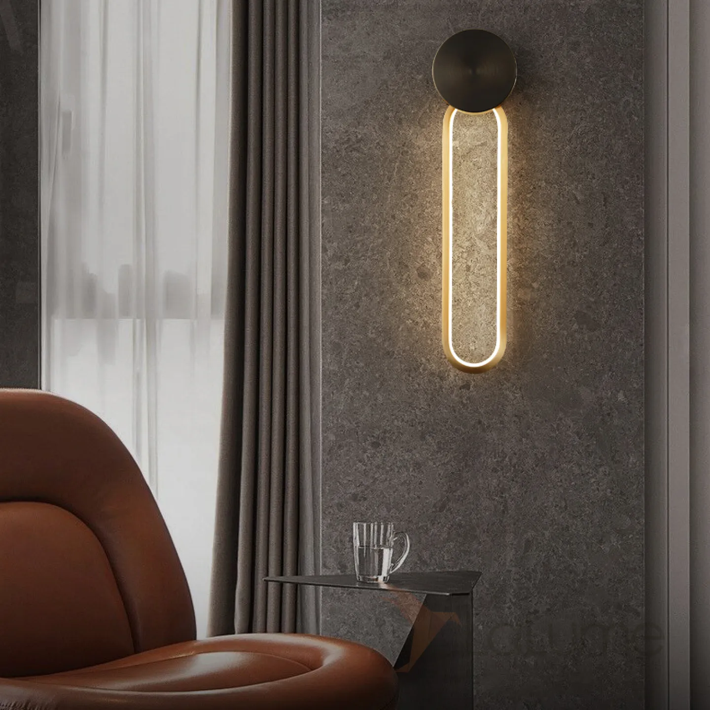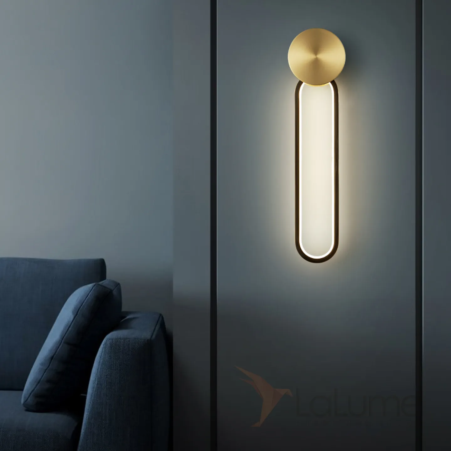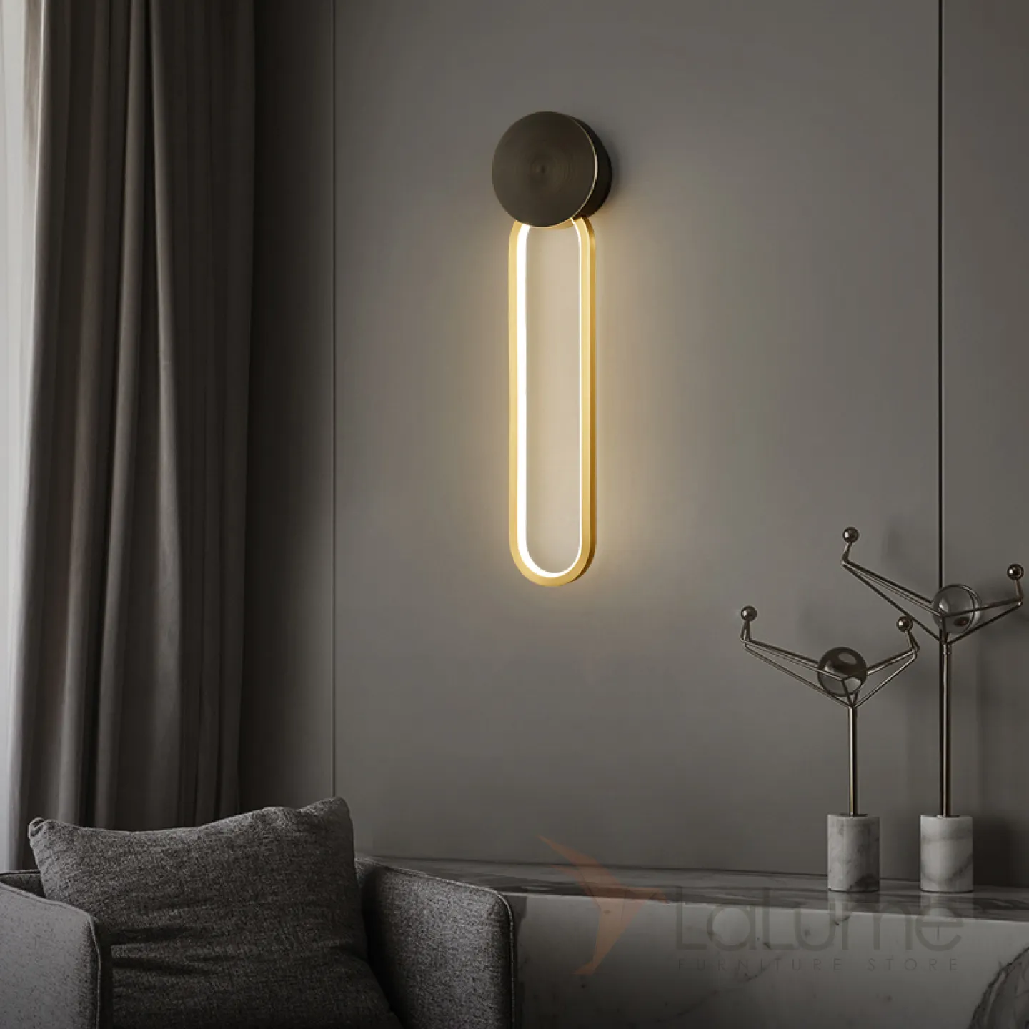 Серия настенных светильников с латунными дисками на закольцованном корпусе с внутренней LED-подсветкой MANCHESTER W Black