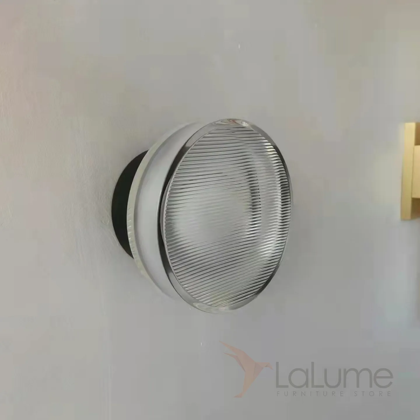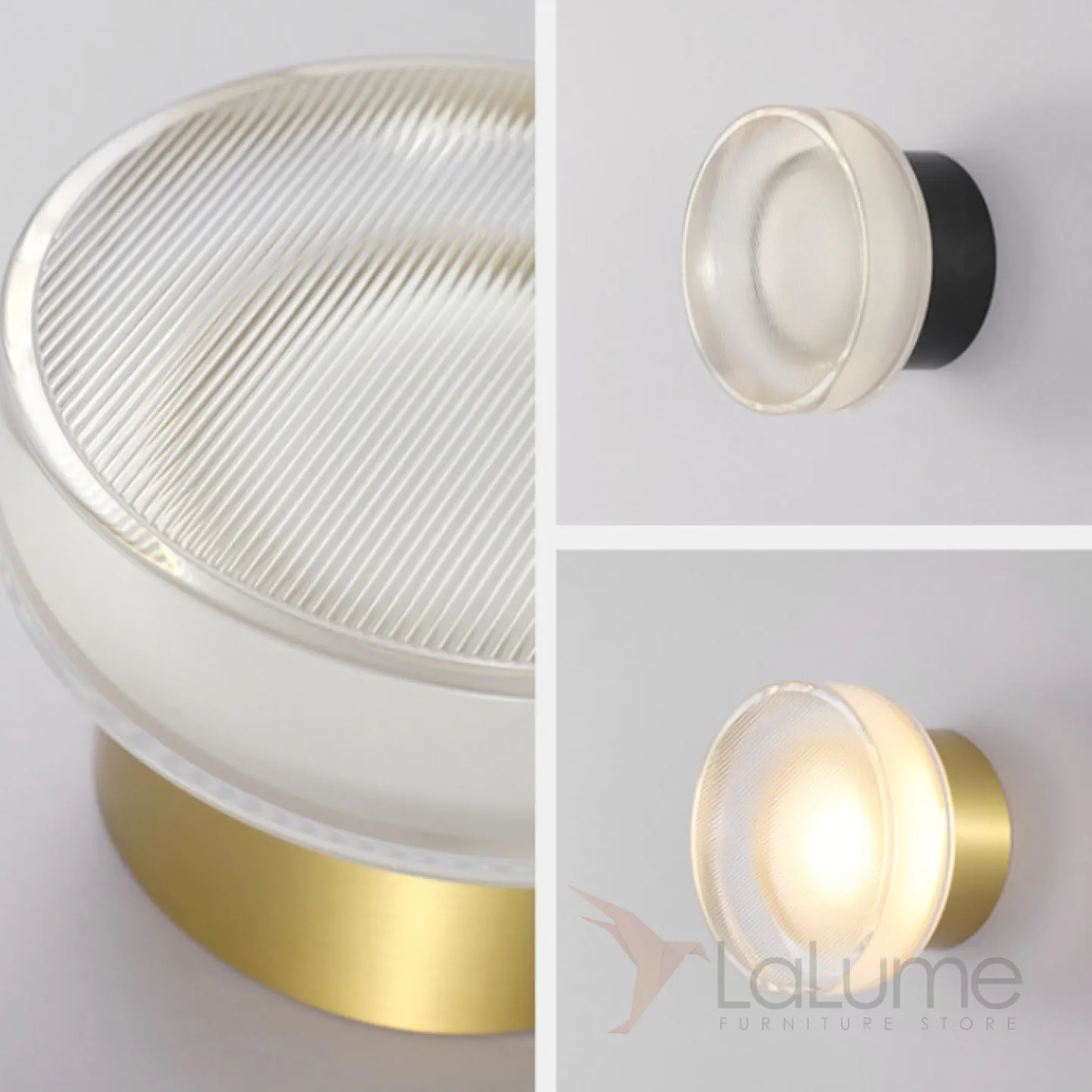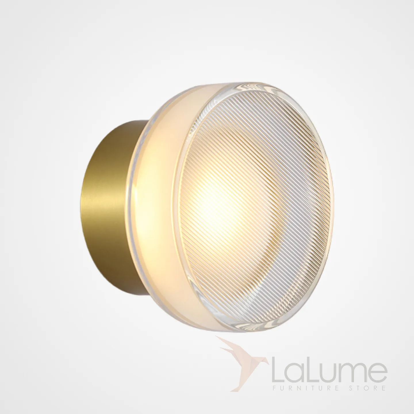Серия настенных светодиодных светильников с круглым прозрачным плафоном с рельефной поверхностью LILO Brass