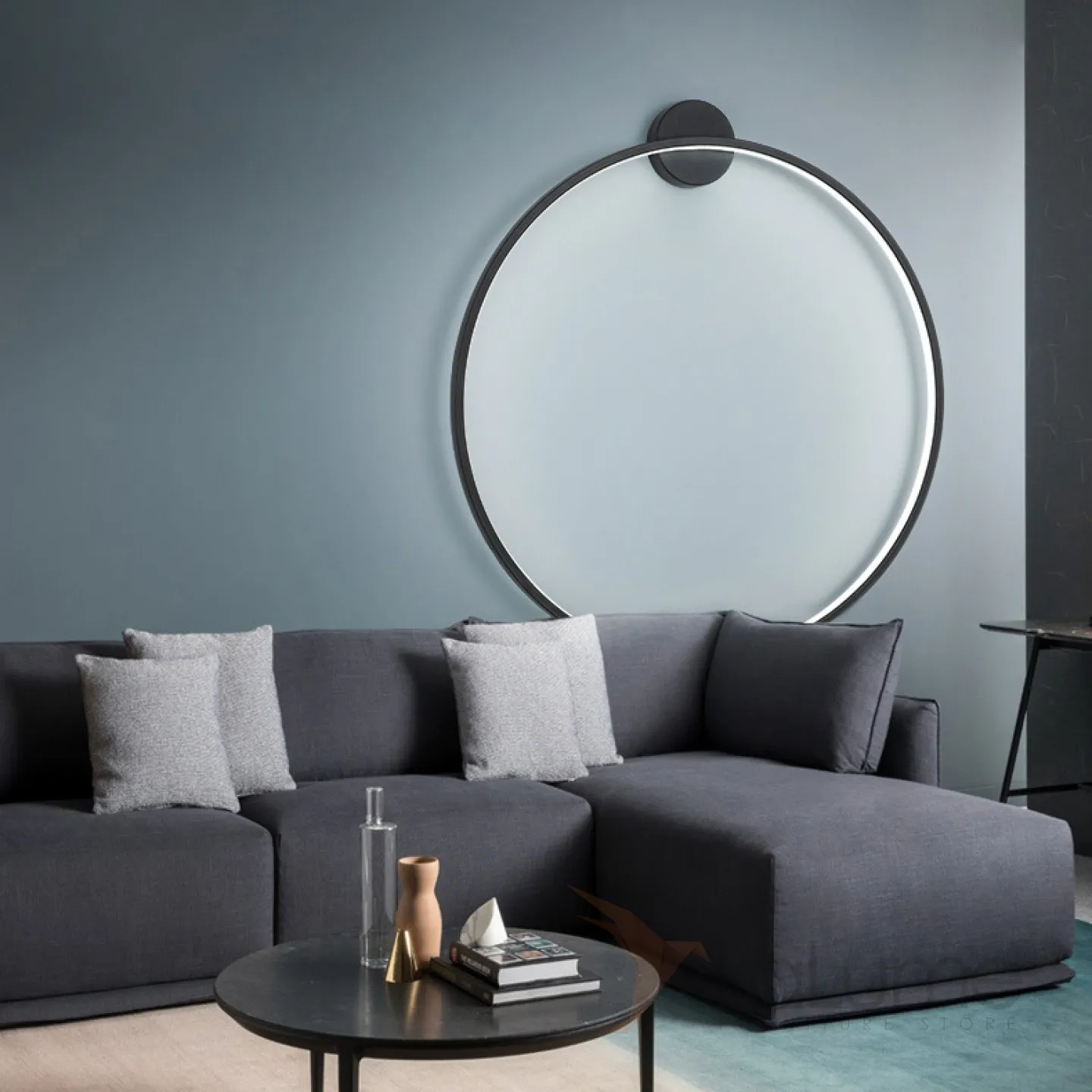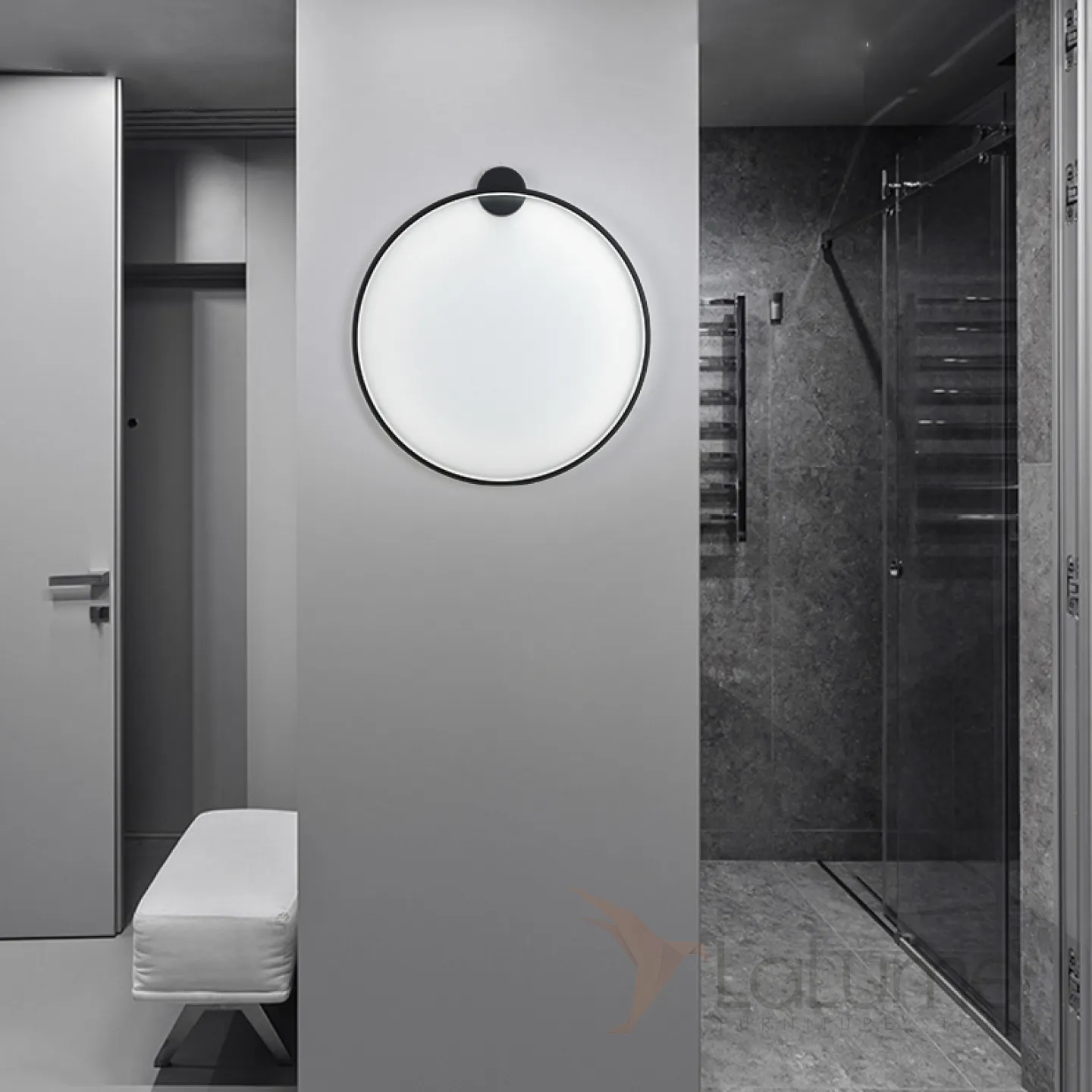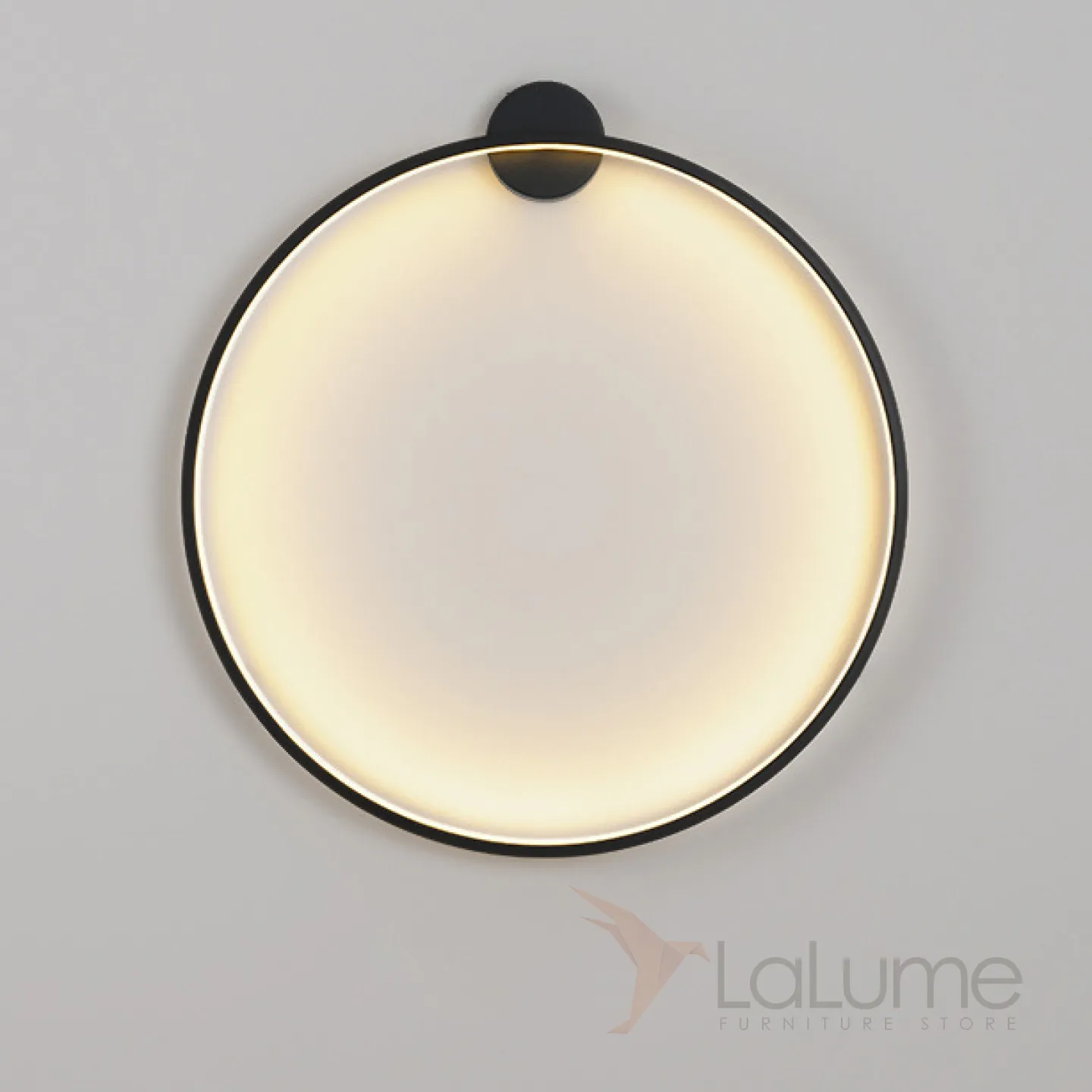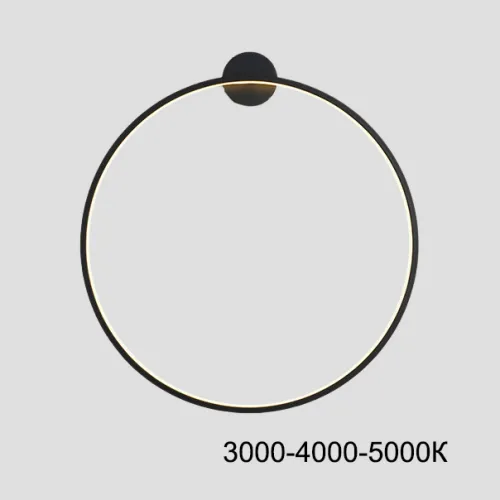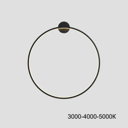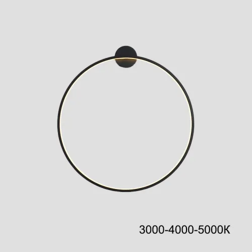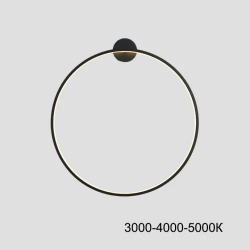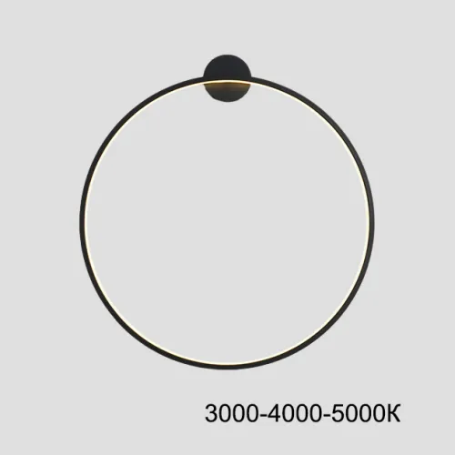 Серия настенных светильников в виде черных металлический колец разного диаметра с LED-подсветкой по контуру корпуса с круглым креплением GUARD B D80 4000К
