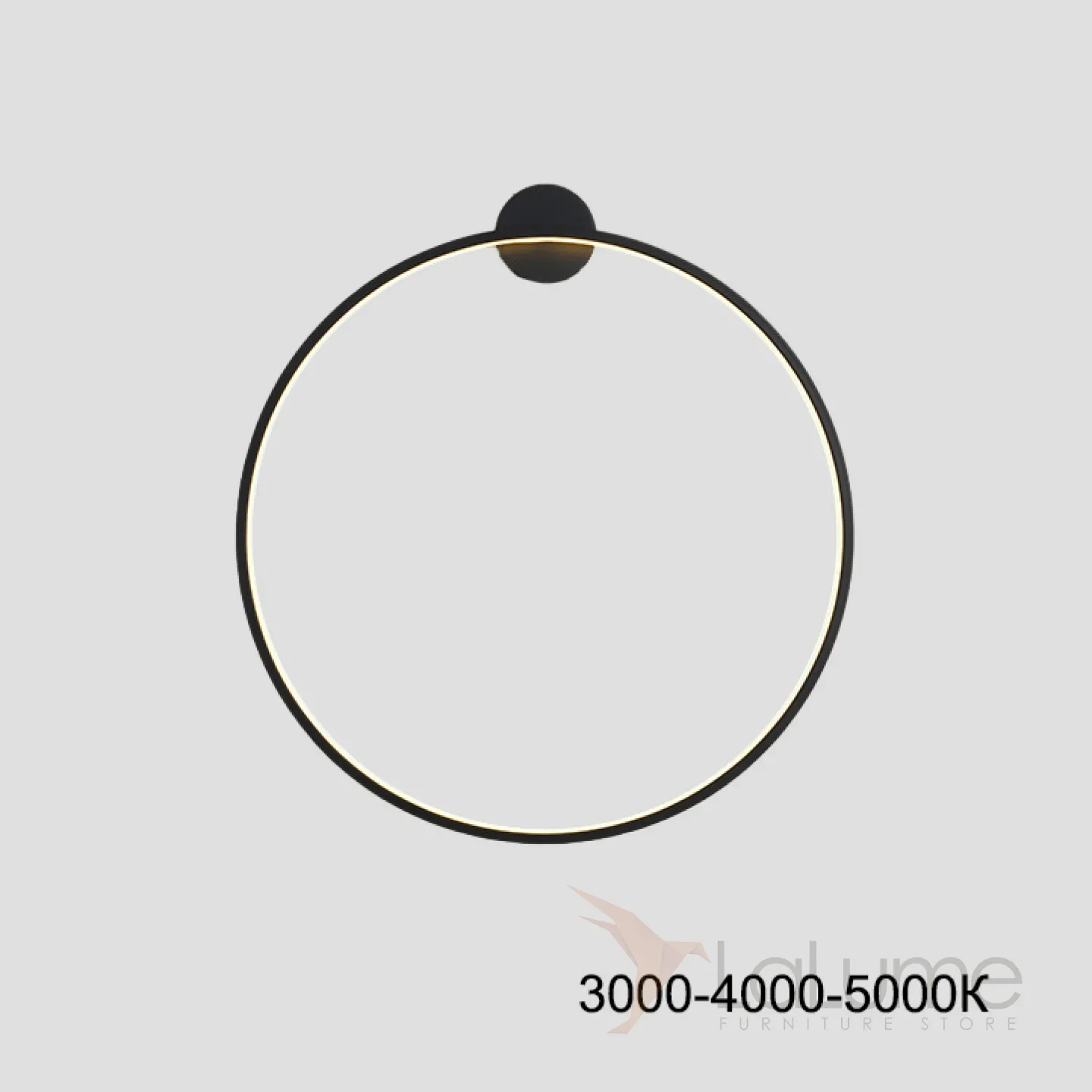 Серия настенных светильников в виде черных металлический колец разного диаметра с LED-подсветкой по контуру корпуса с круглым креплением GUARD B D50 Трехцветный свет