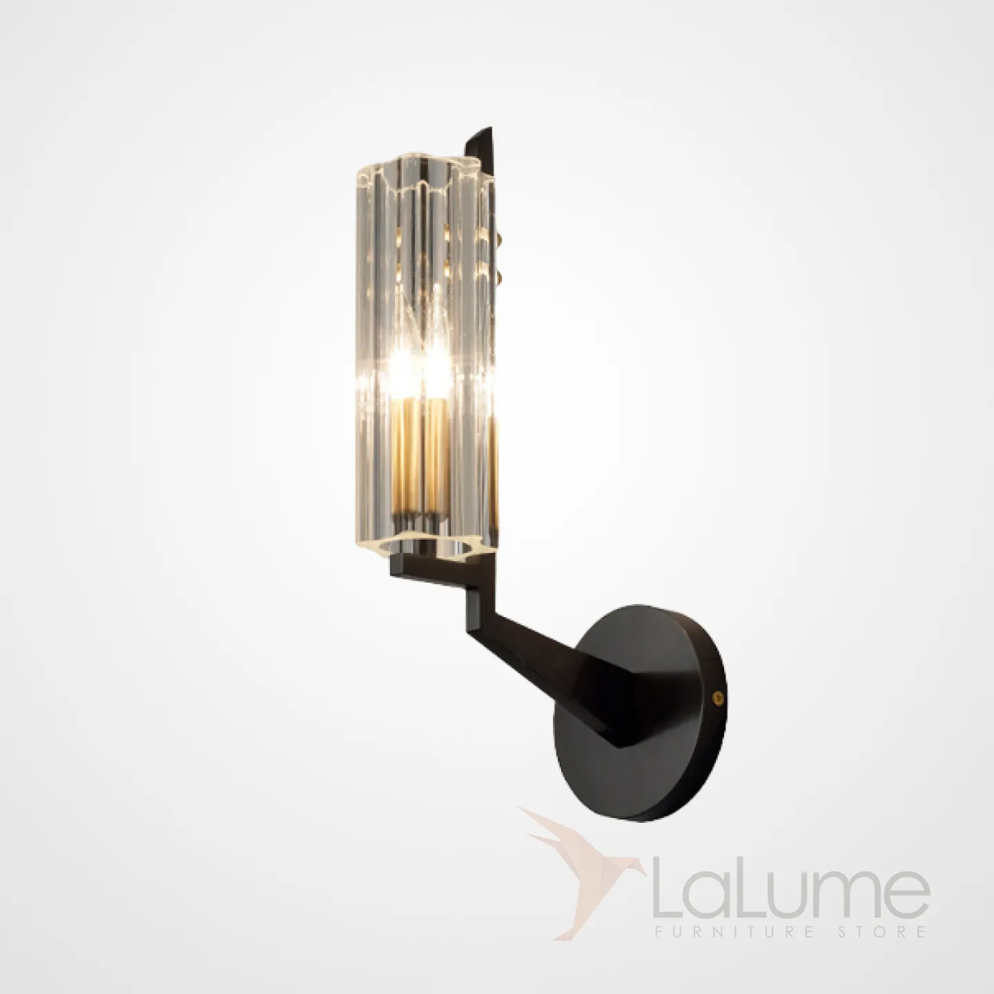Серия настенных светильников с цилиндрическими рельефными плафонами из хрусталя на металлическом кронштейне под углом HELLA L1 Black