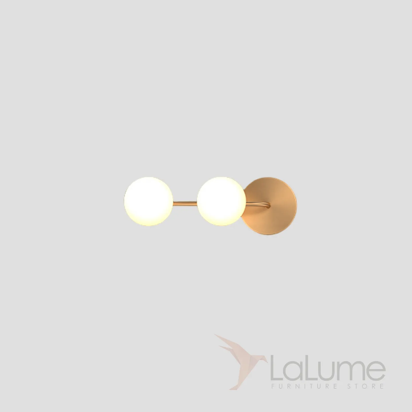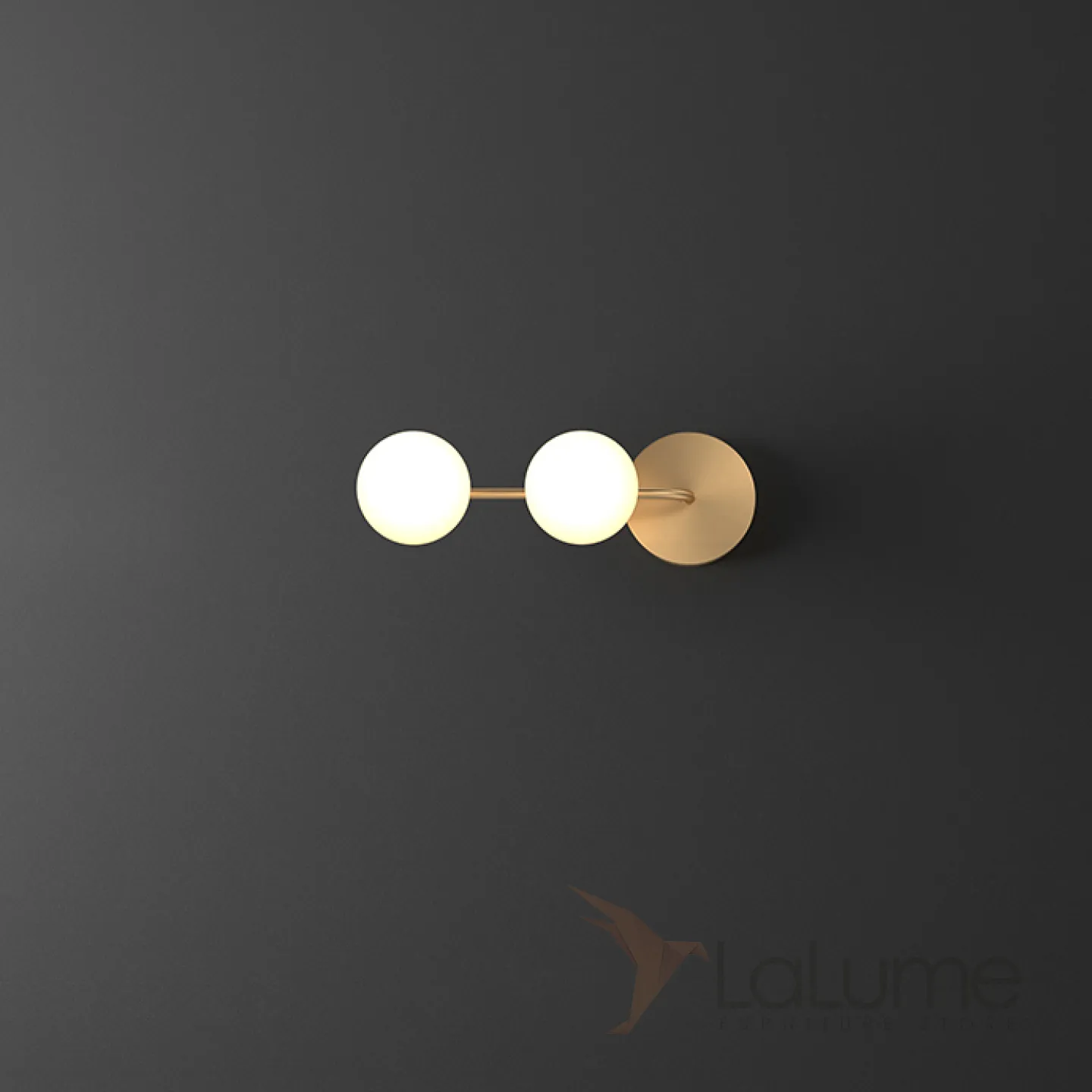 Серия настенных светильников с белыми шарообразными плафонами из стекла на горизонтальной рейке с круглыми креплениями SVALE L32