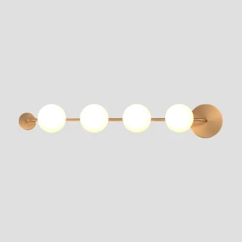 Серия настенных светильников с белыми шарообразными плафонами из стекла на горизонтальной рейке с круглыми креплениями SVALE L81