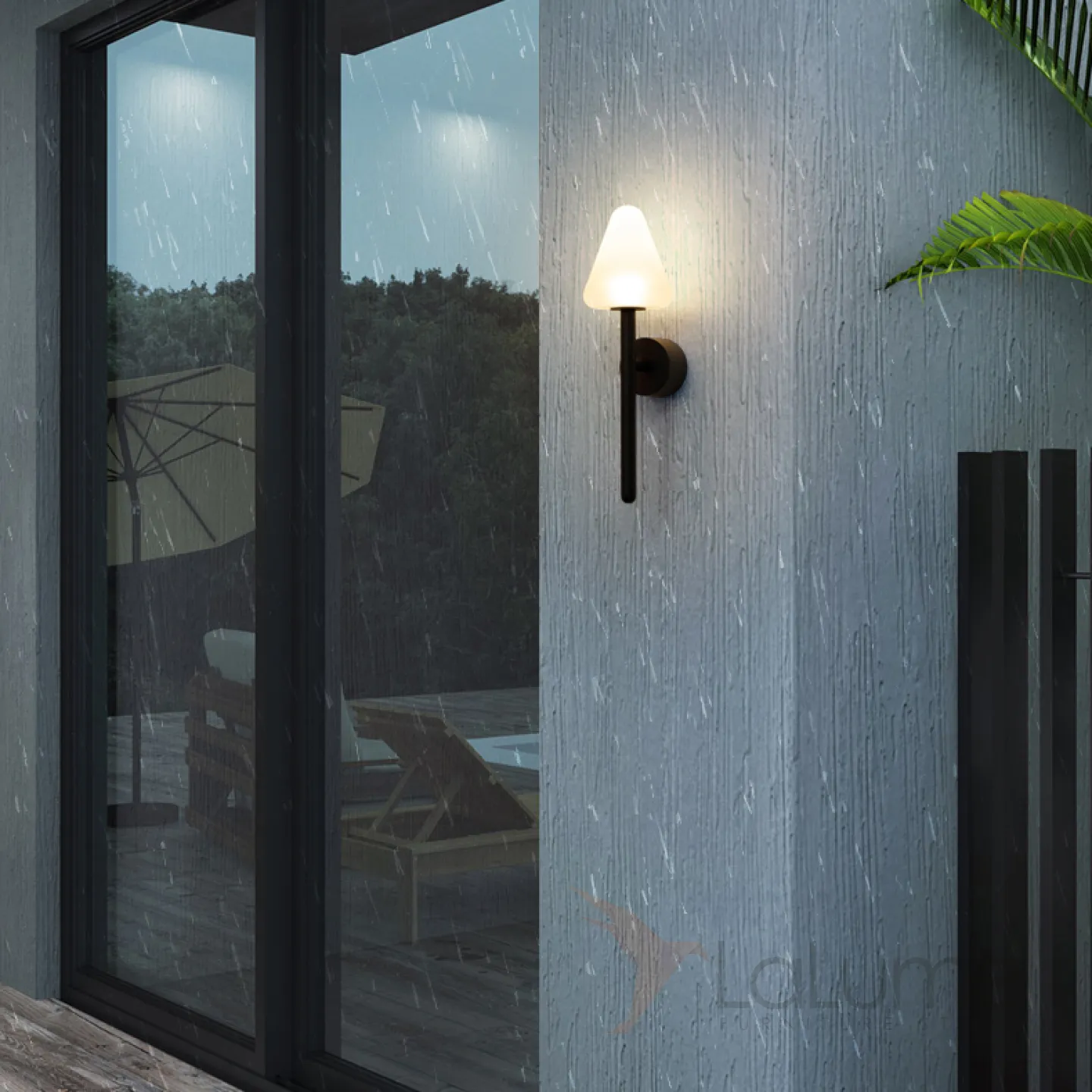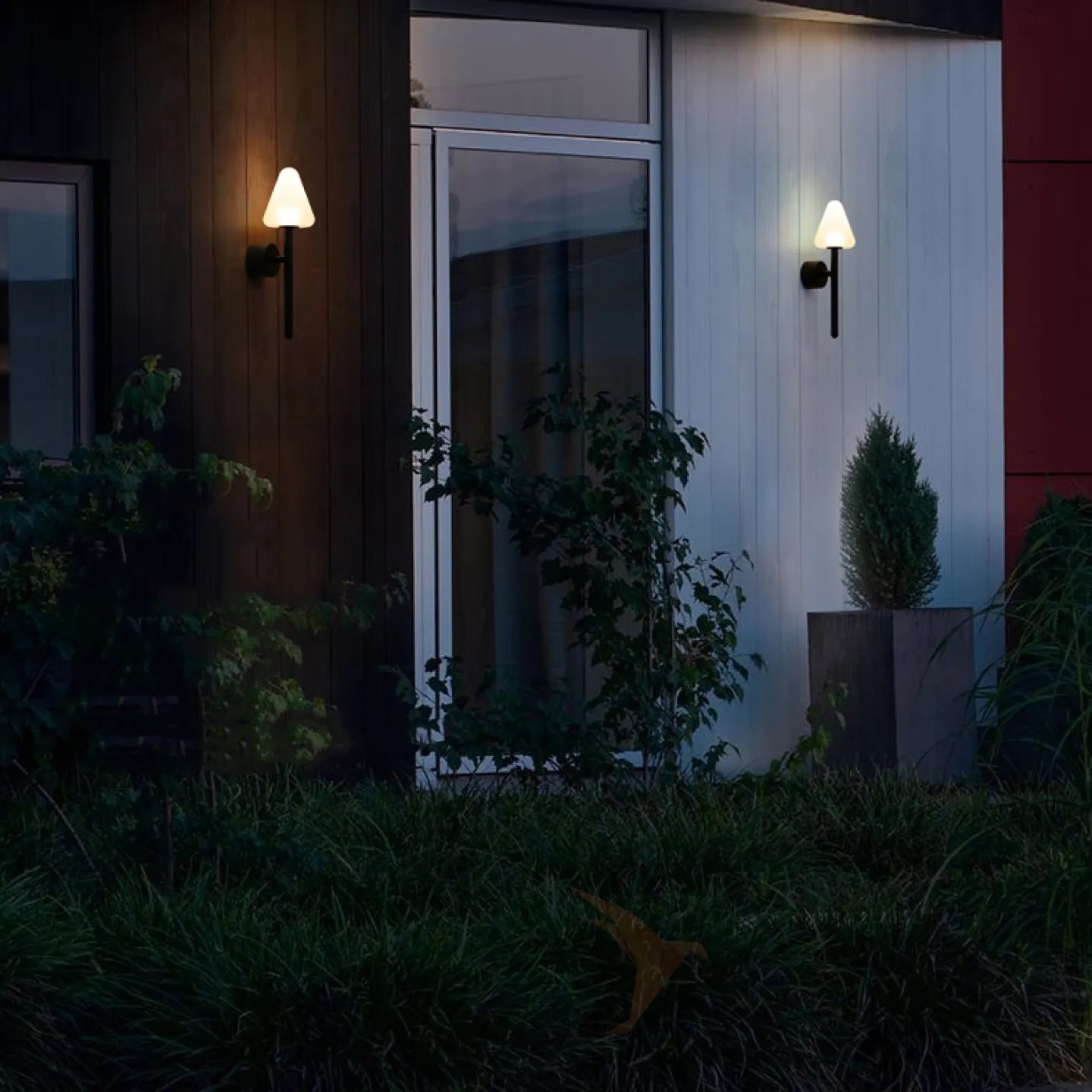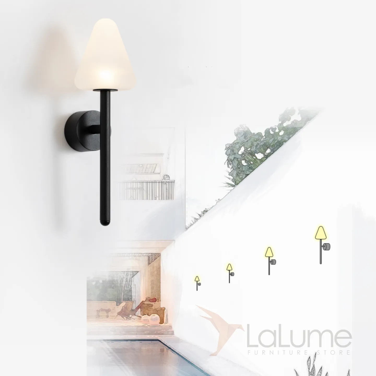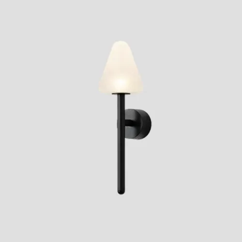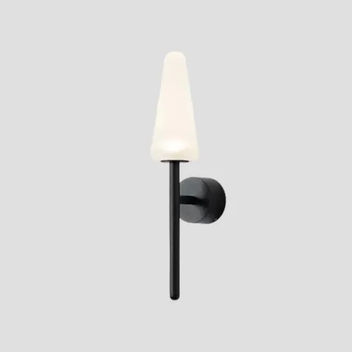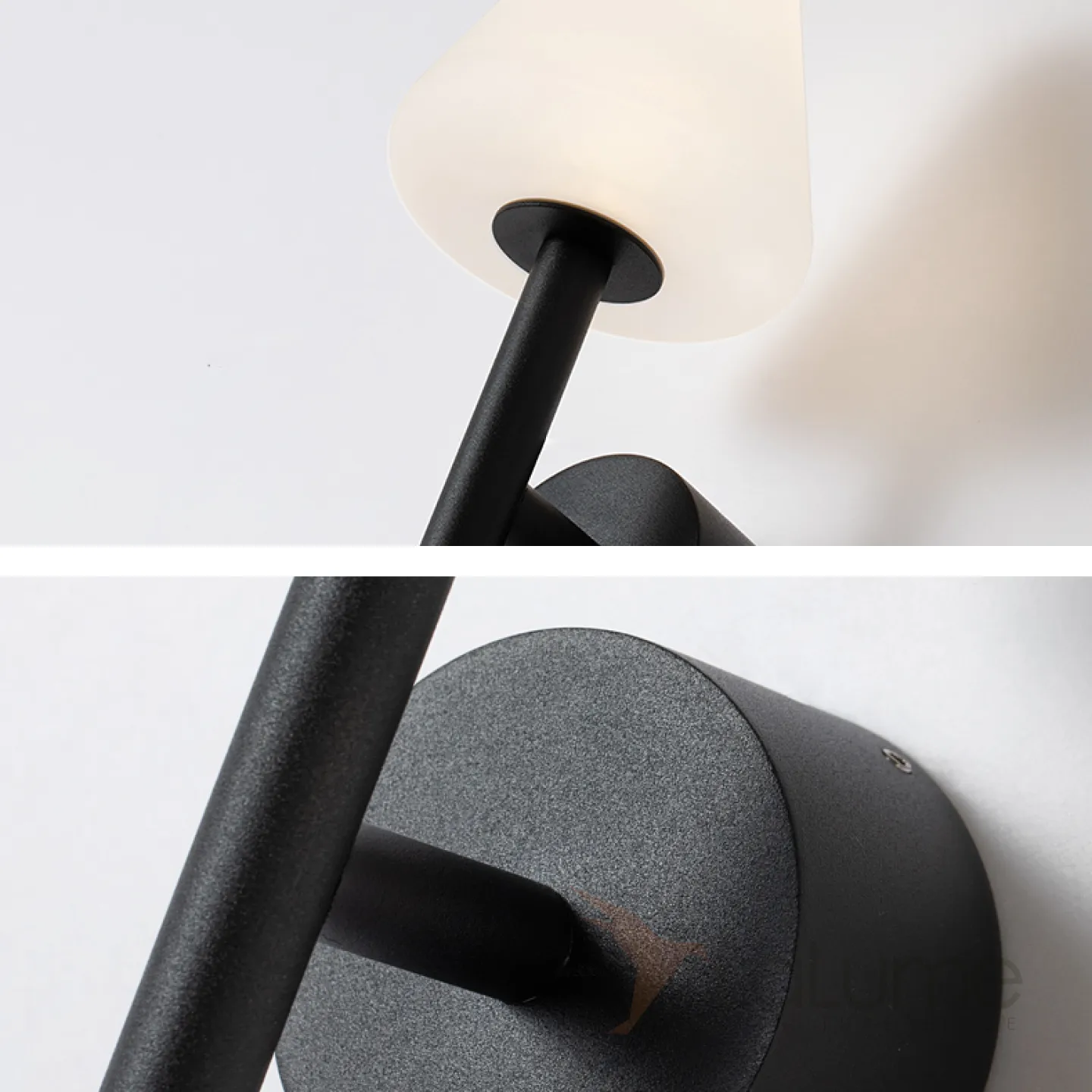 Серия настенных светодиодных светильников с белыми разнотипными плафонами конической формы на черном креплении ADORA A