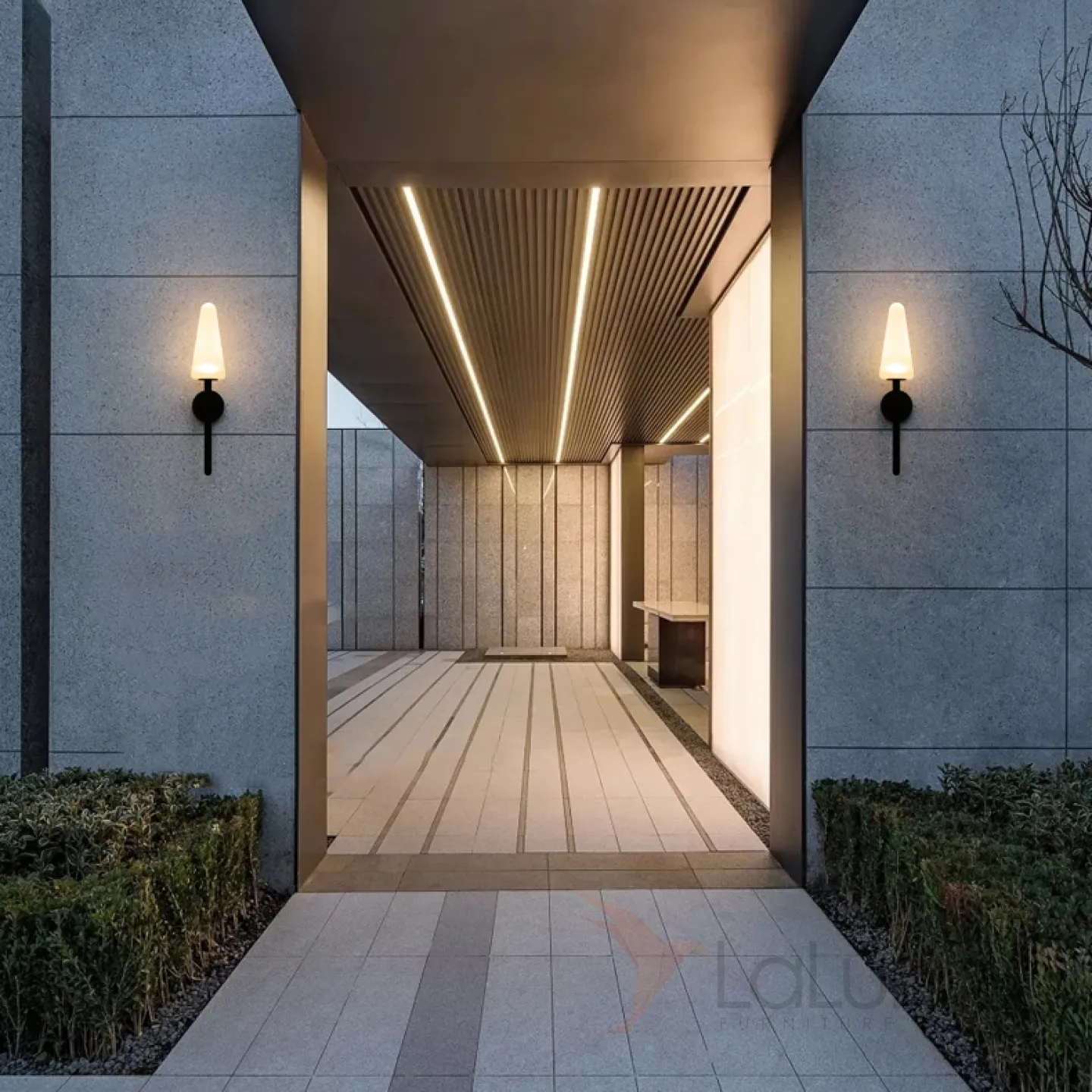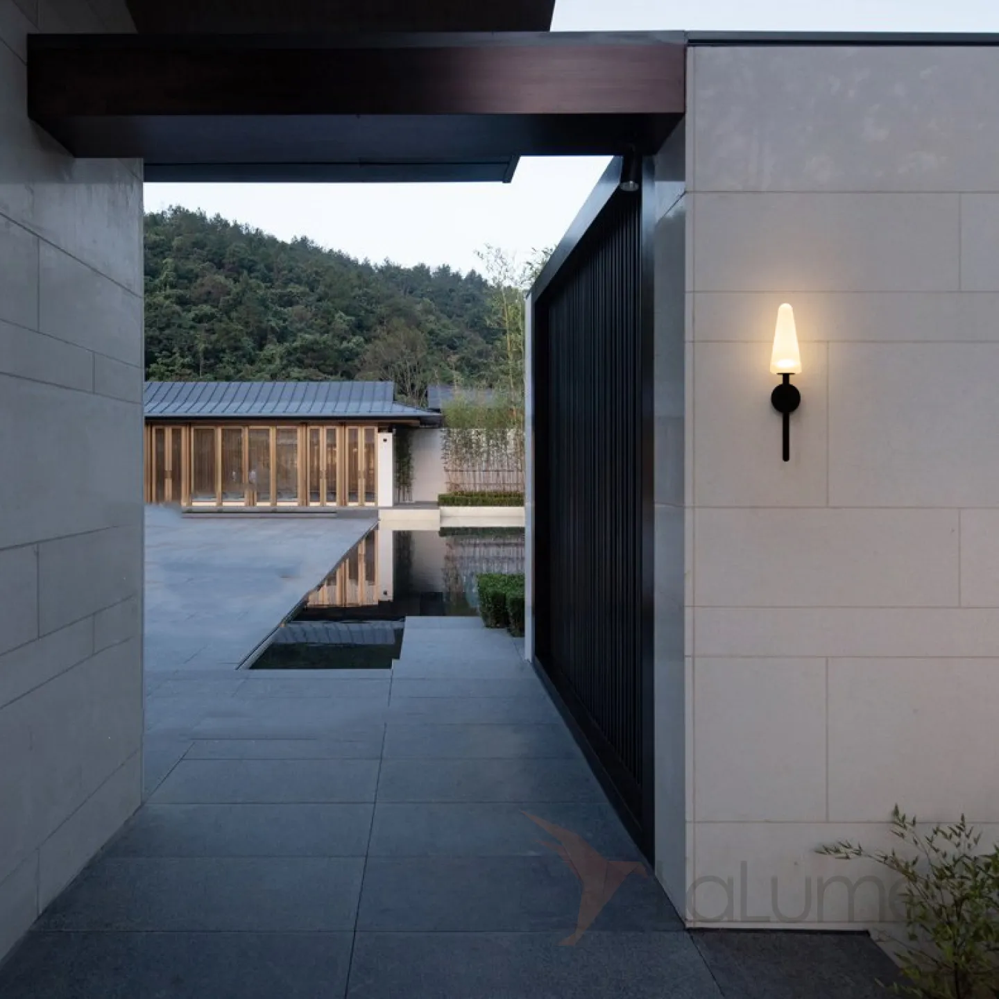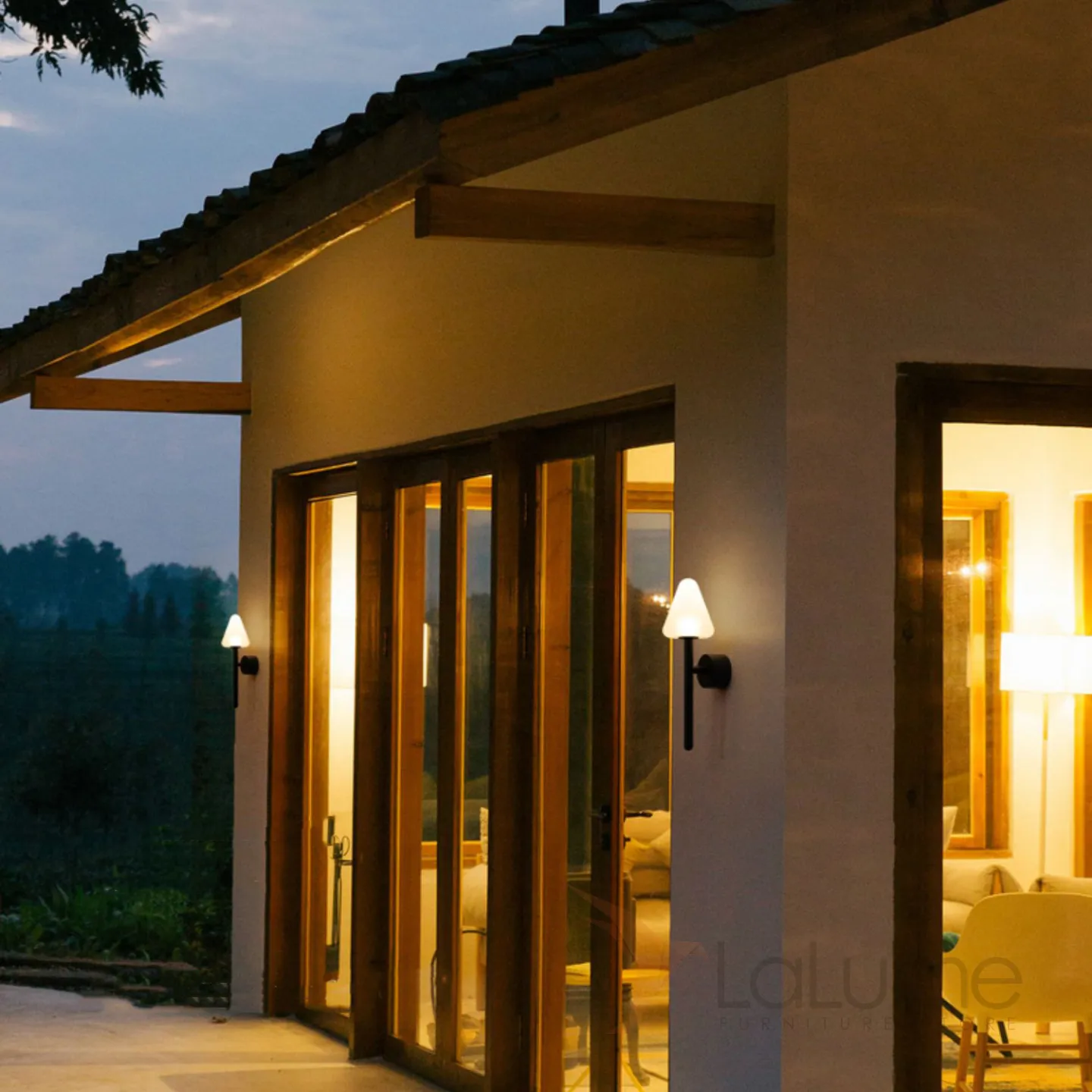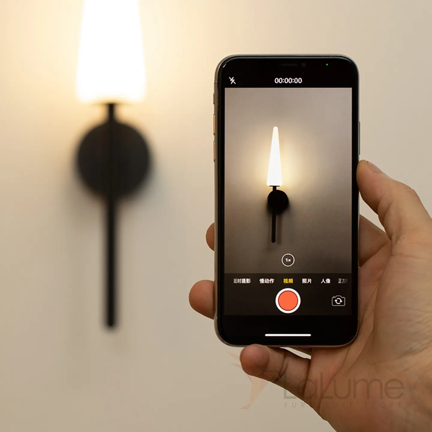 Серия настенных светодиодных светильников с белыми разнотипными плафонами конической формы на черном креплении ADORA A