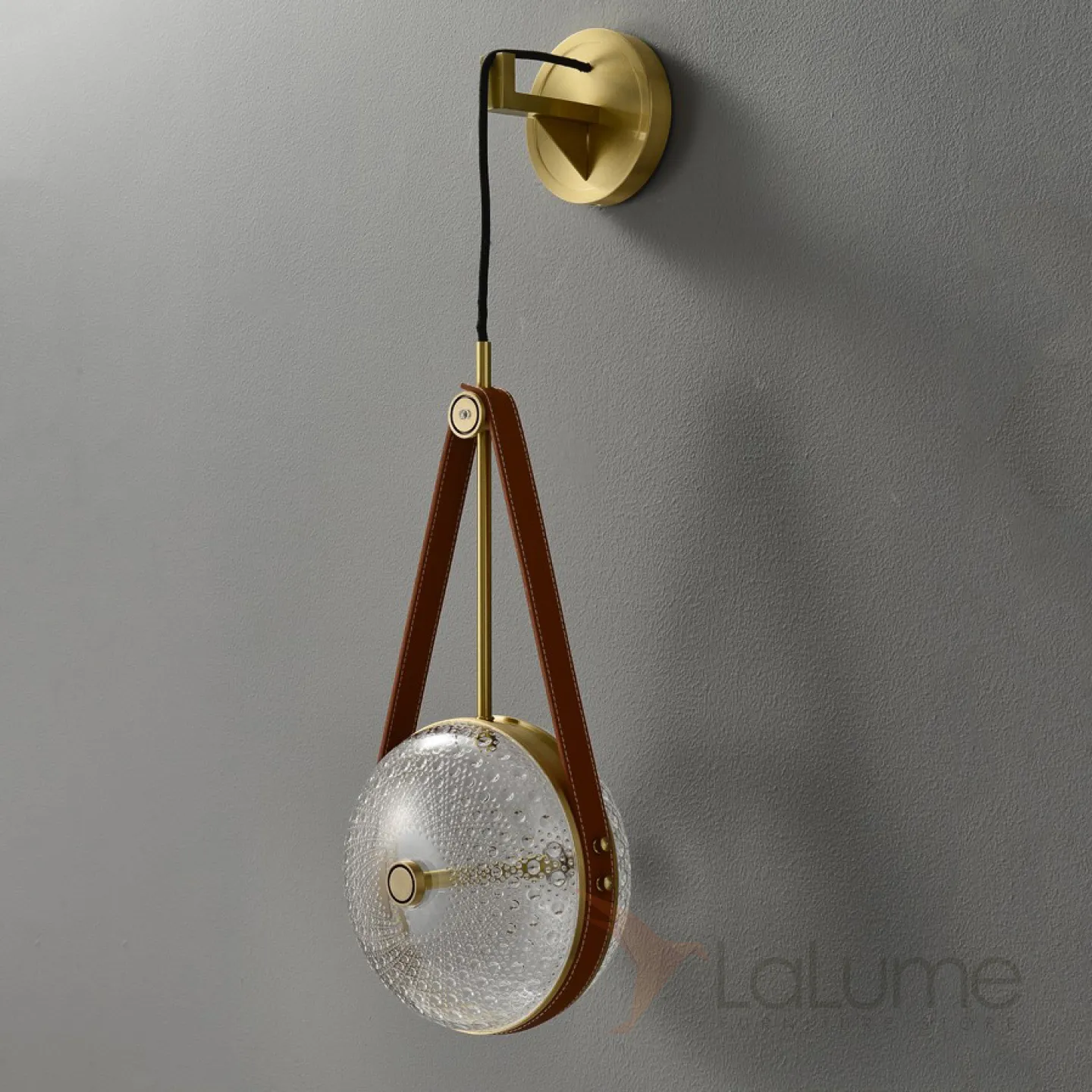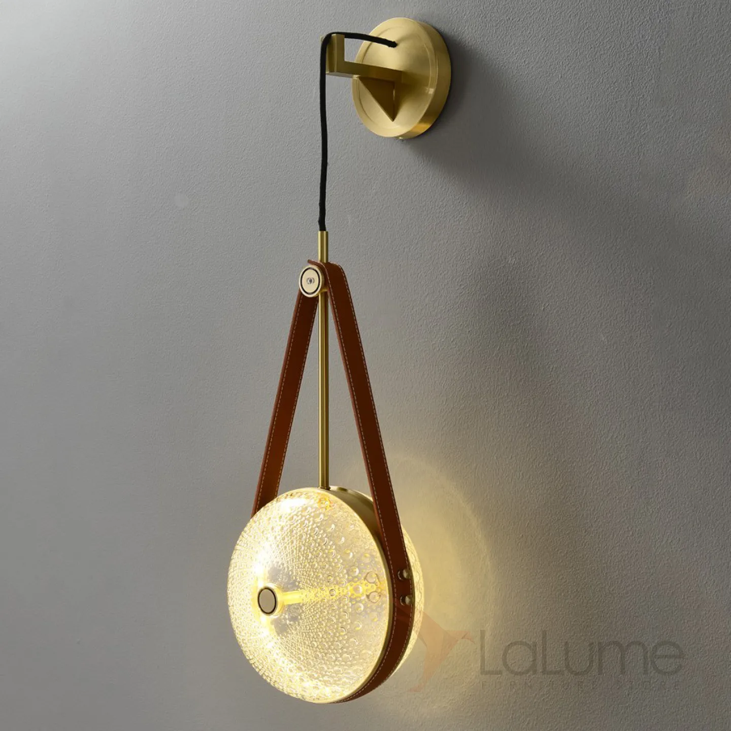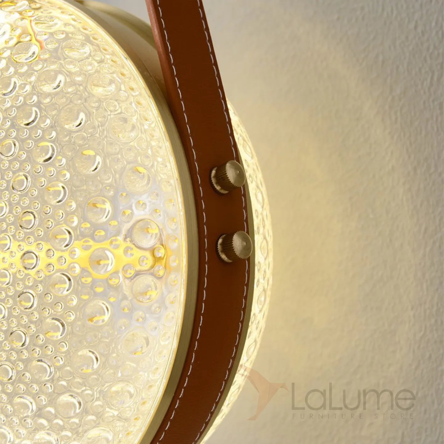 Настенный светодиодный светильник с рельефным стеклянным плафоном в форме линзы на кожаном ремешке AGLA WALL