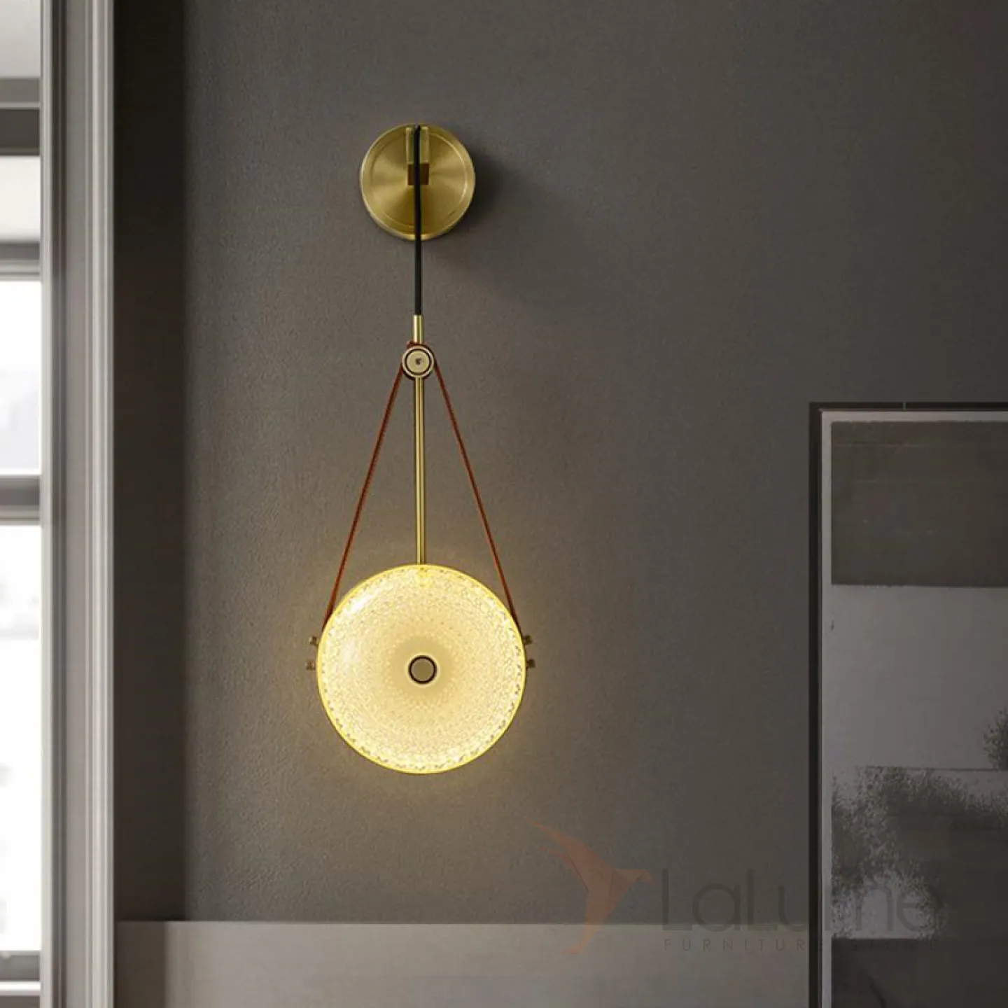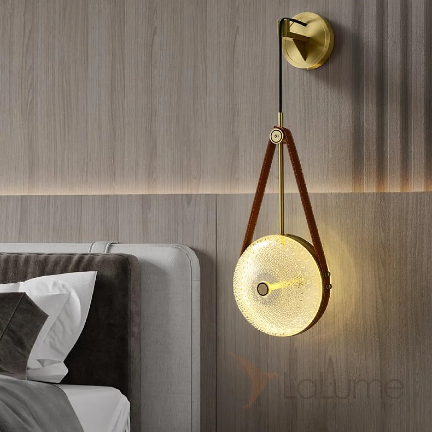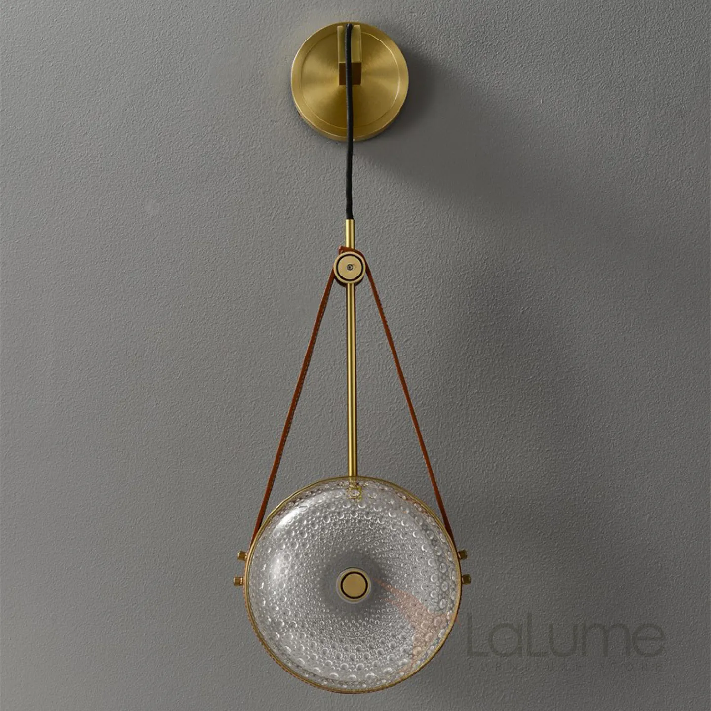 Настенный светодиодный светильник с рельефным стеклянным плафоном в форме линзы на кожаном ремешке AGLA WALL