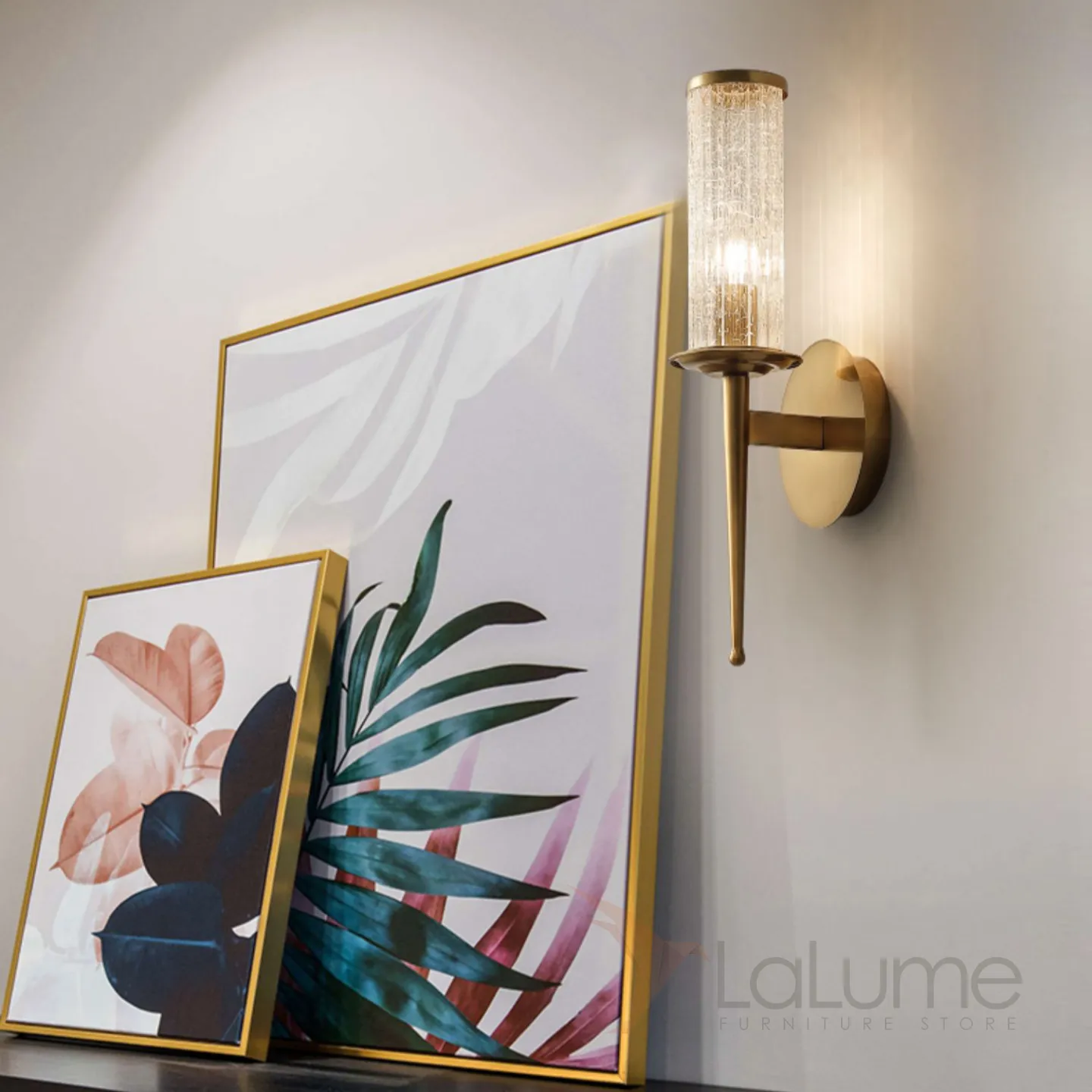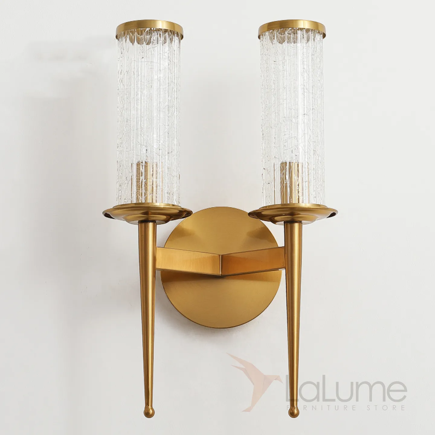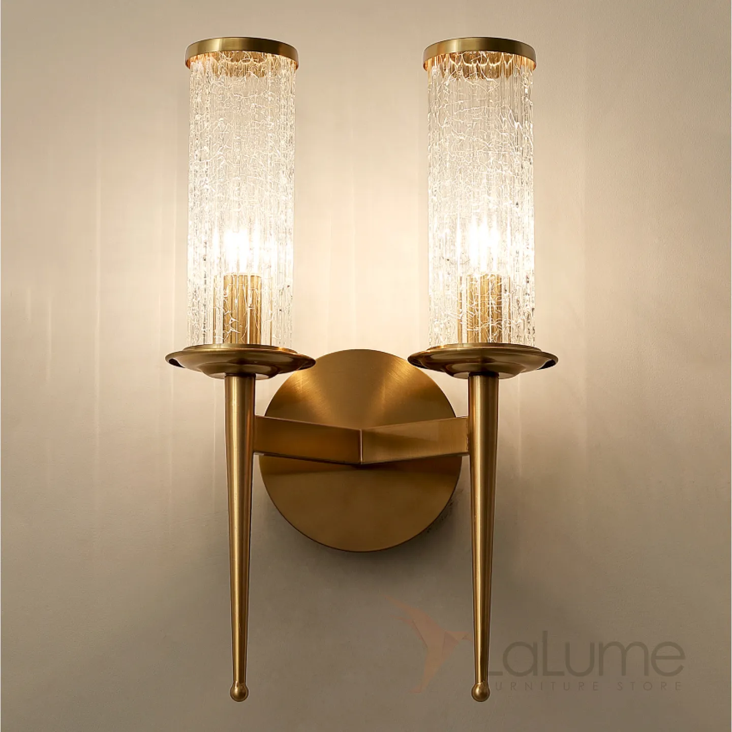 Серия настенных светильников с цилиндрическими плафонами из кракелированного стекла на конических рожках IRAIDA B L2