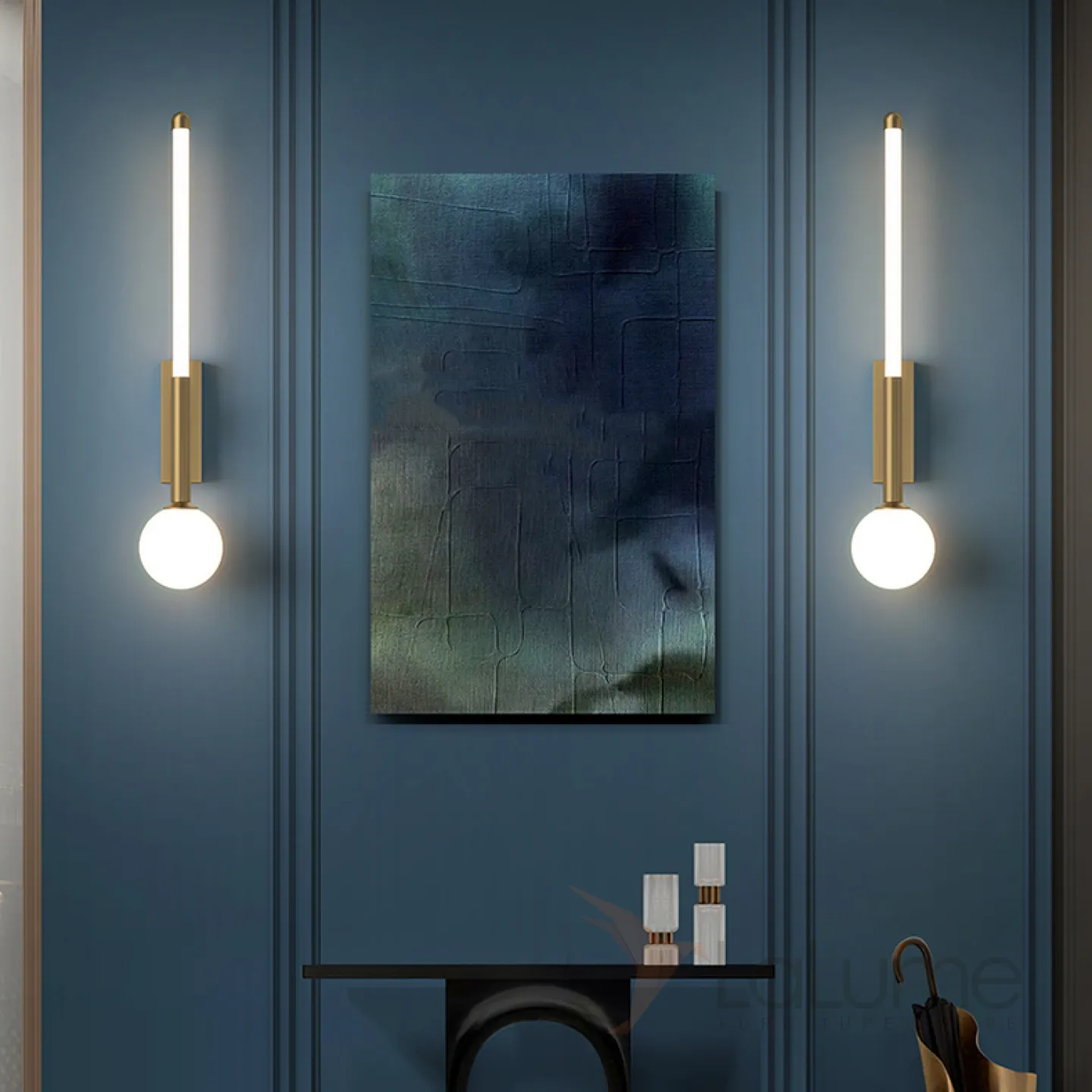 Настенный светодиодный светильник с цилиндрическим и шарообразным плафоном на одном вертикальном кронштейне HELGA