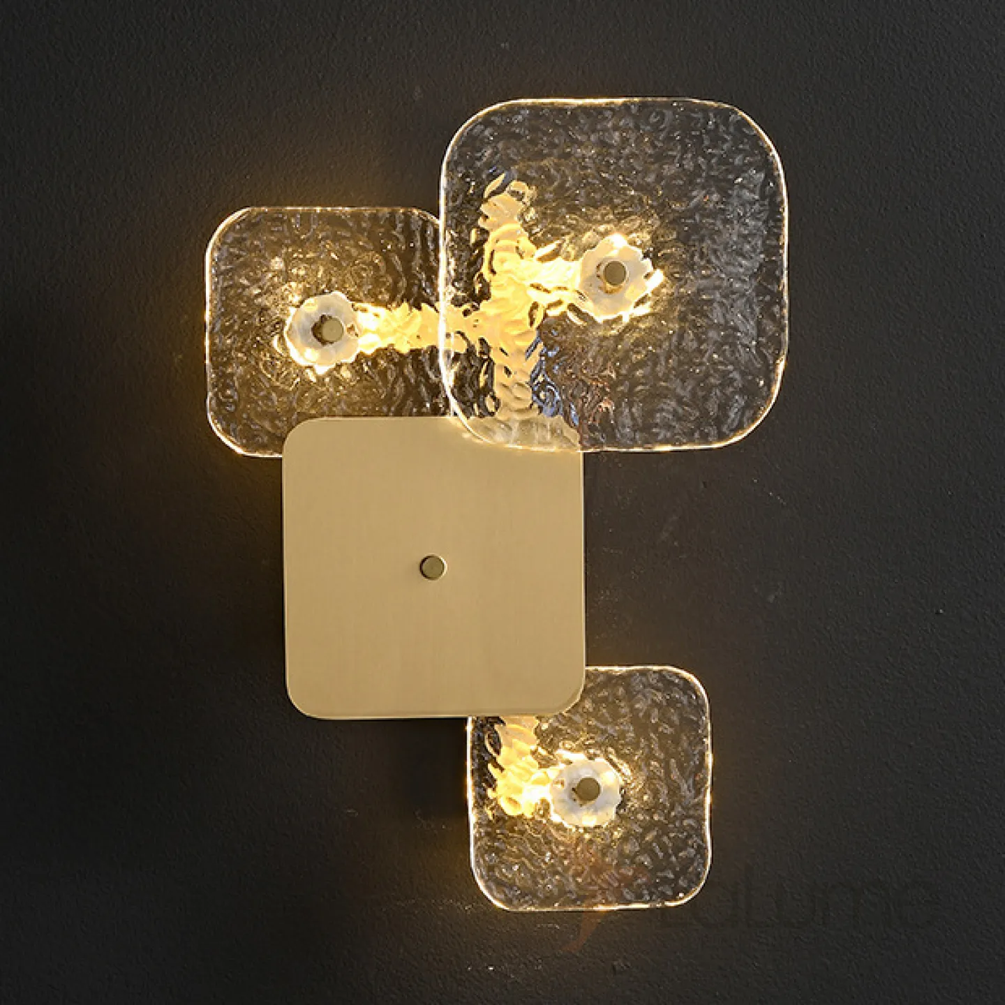 Серия настенных светильников в виде комбинации квадратных рассеивателей из металла и рельефного стекла DEBRA H33