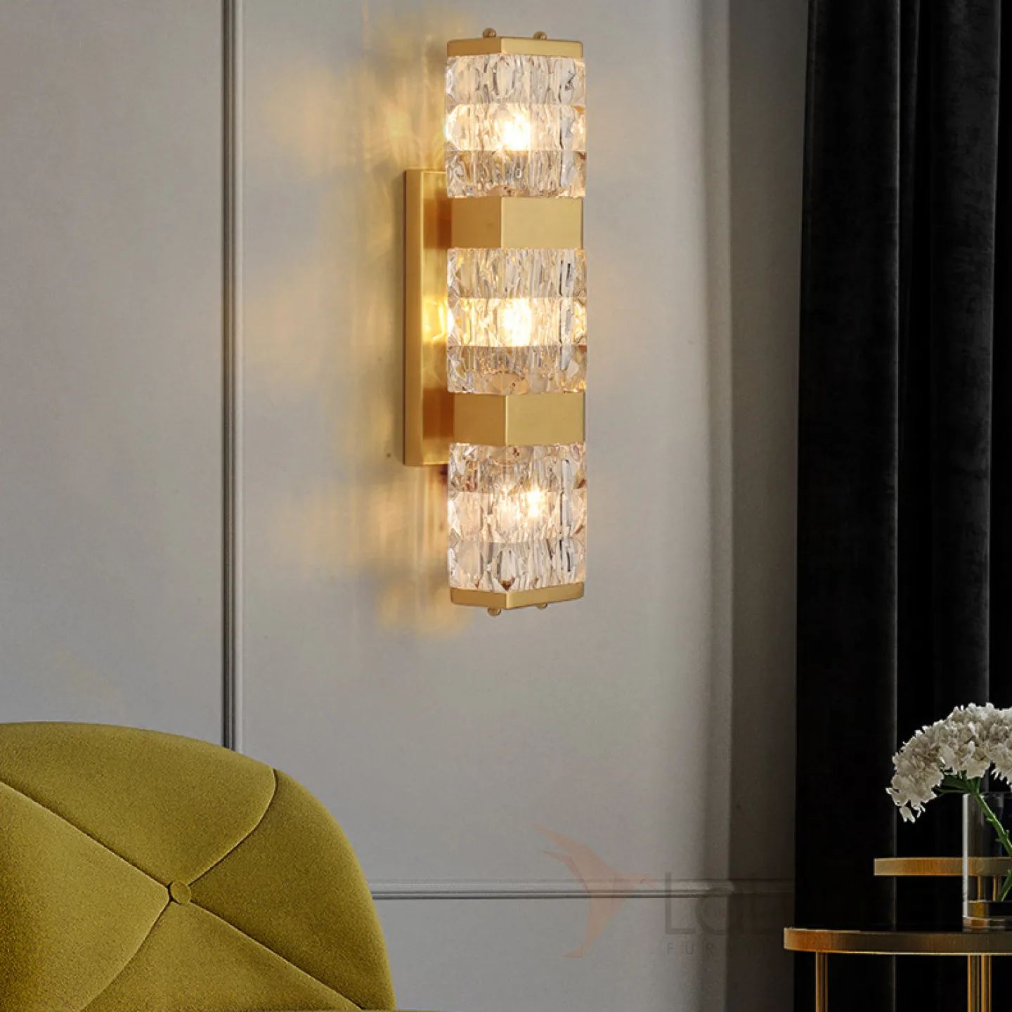 Бра со стеклянным плафоном в виде рельефного слитка в латунном корпусе MAGNET WALL