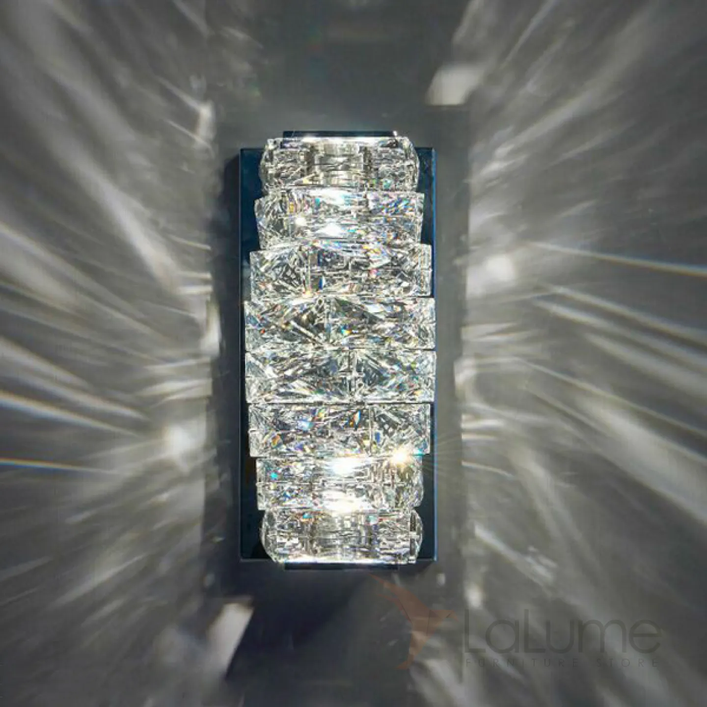 Настенный светодиодный светильник с прямоугольным плафоном из составных хрустальных слитков на хромированном основании CARE WALL H26 Chrome