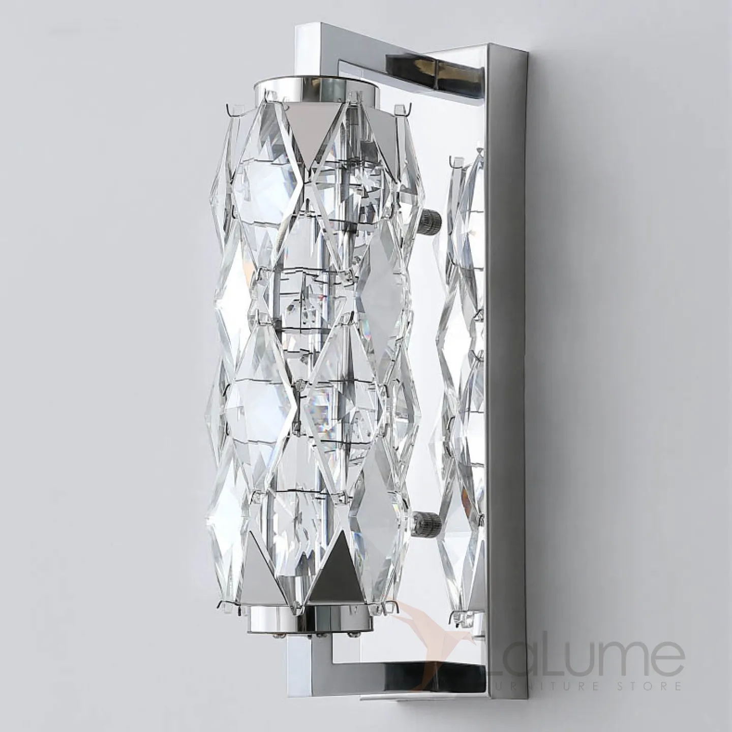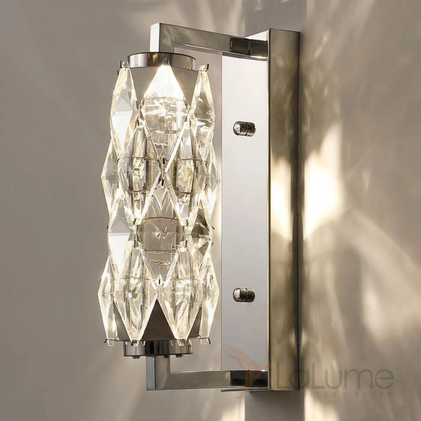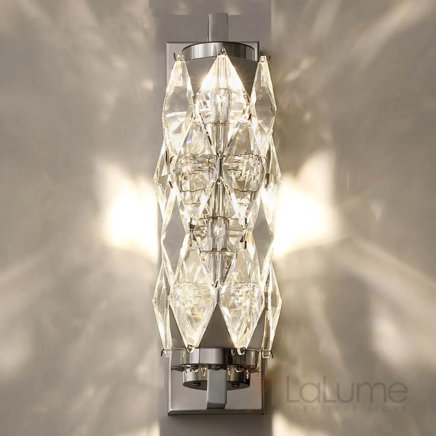 Серия настенных светодиодных светильников с витым многогранным плафоном из хрусталя в хромированном держателе ROYAL H32