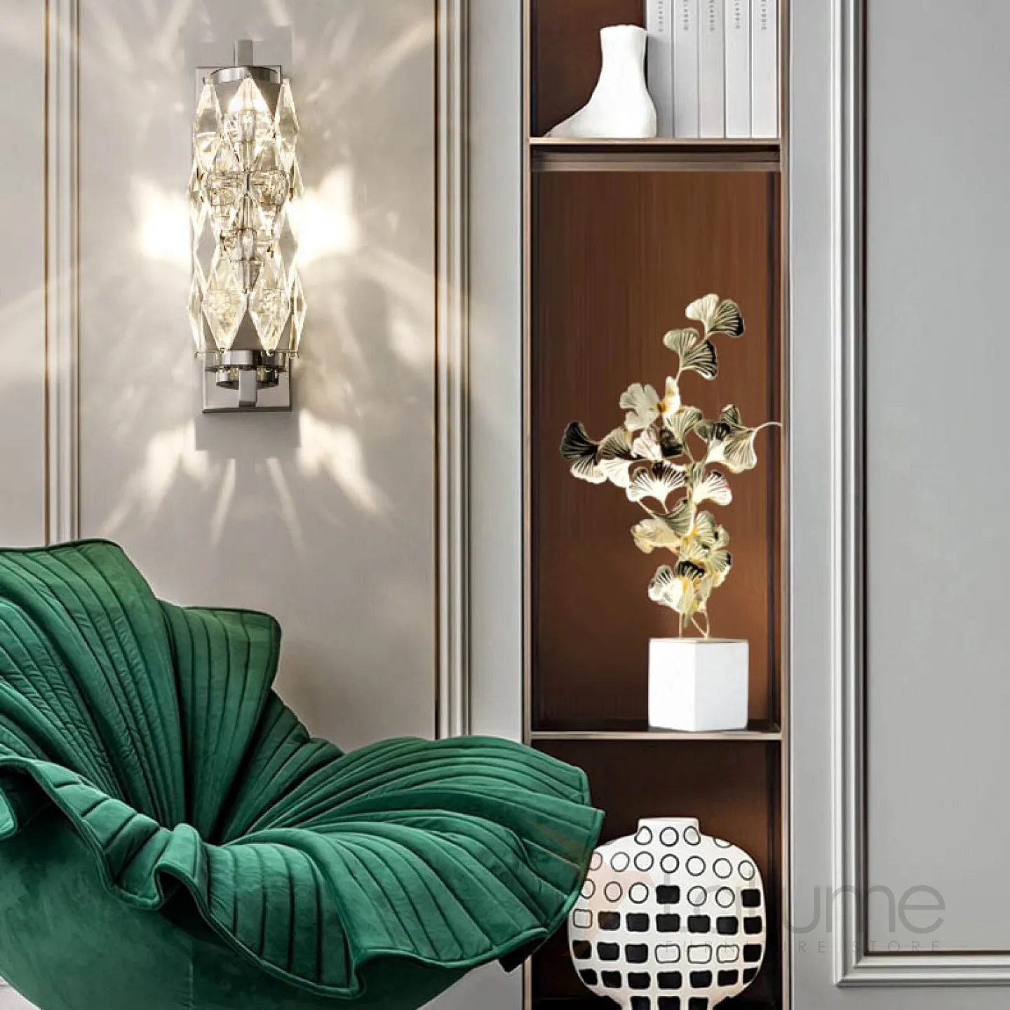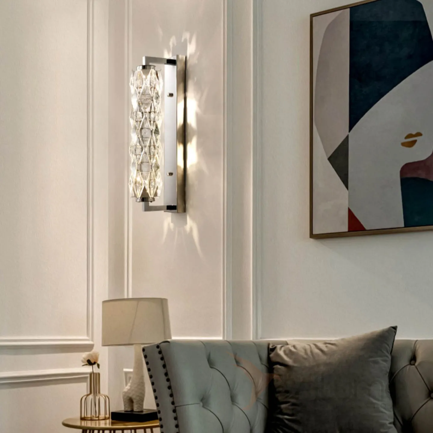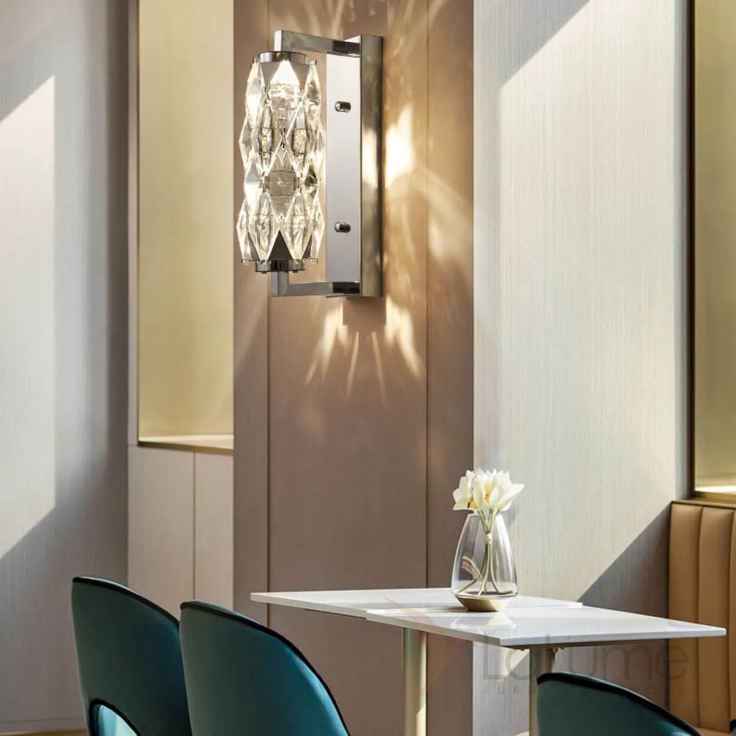 Серия настенных светодиодных светильников с витым многогранным плафоном из хрусталя в хромированном держателе ROYAL H32