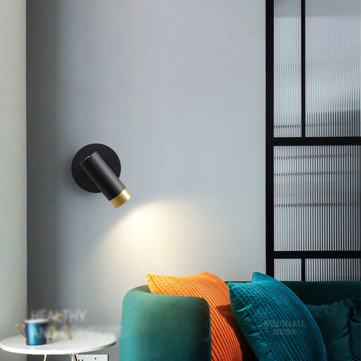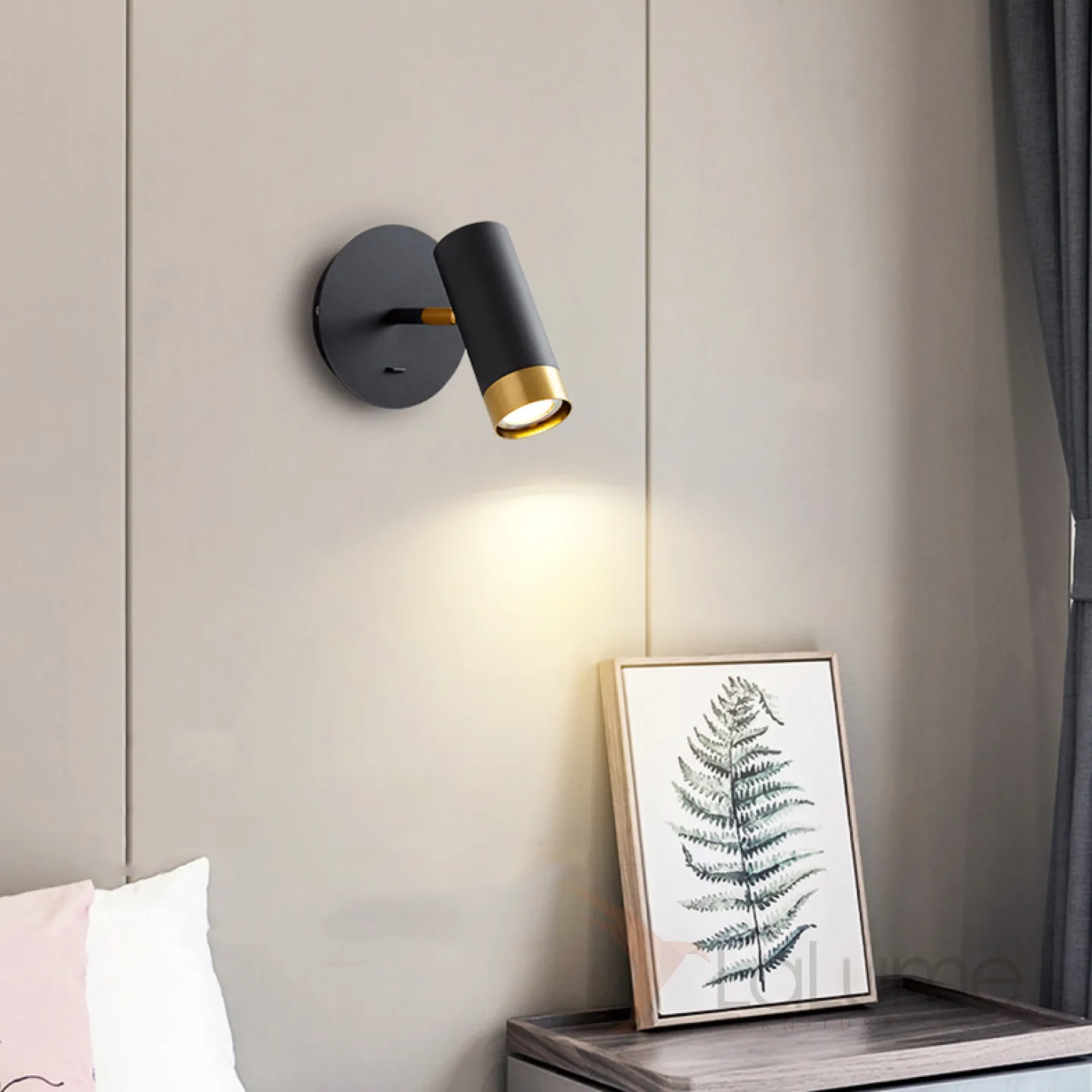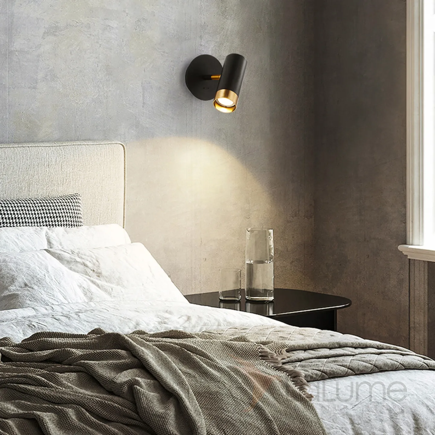 Серия настенных светильников с цилиндрическими плафонами с отделкой оттенка латунь на кронштейне с круглым креплением GET Black