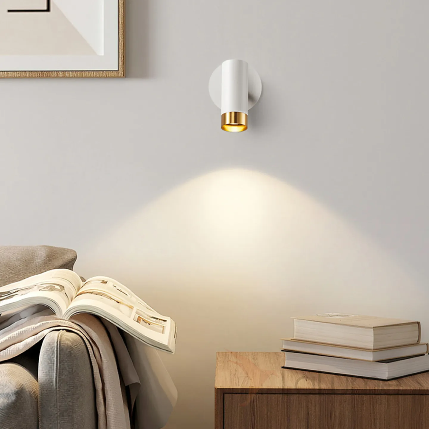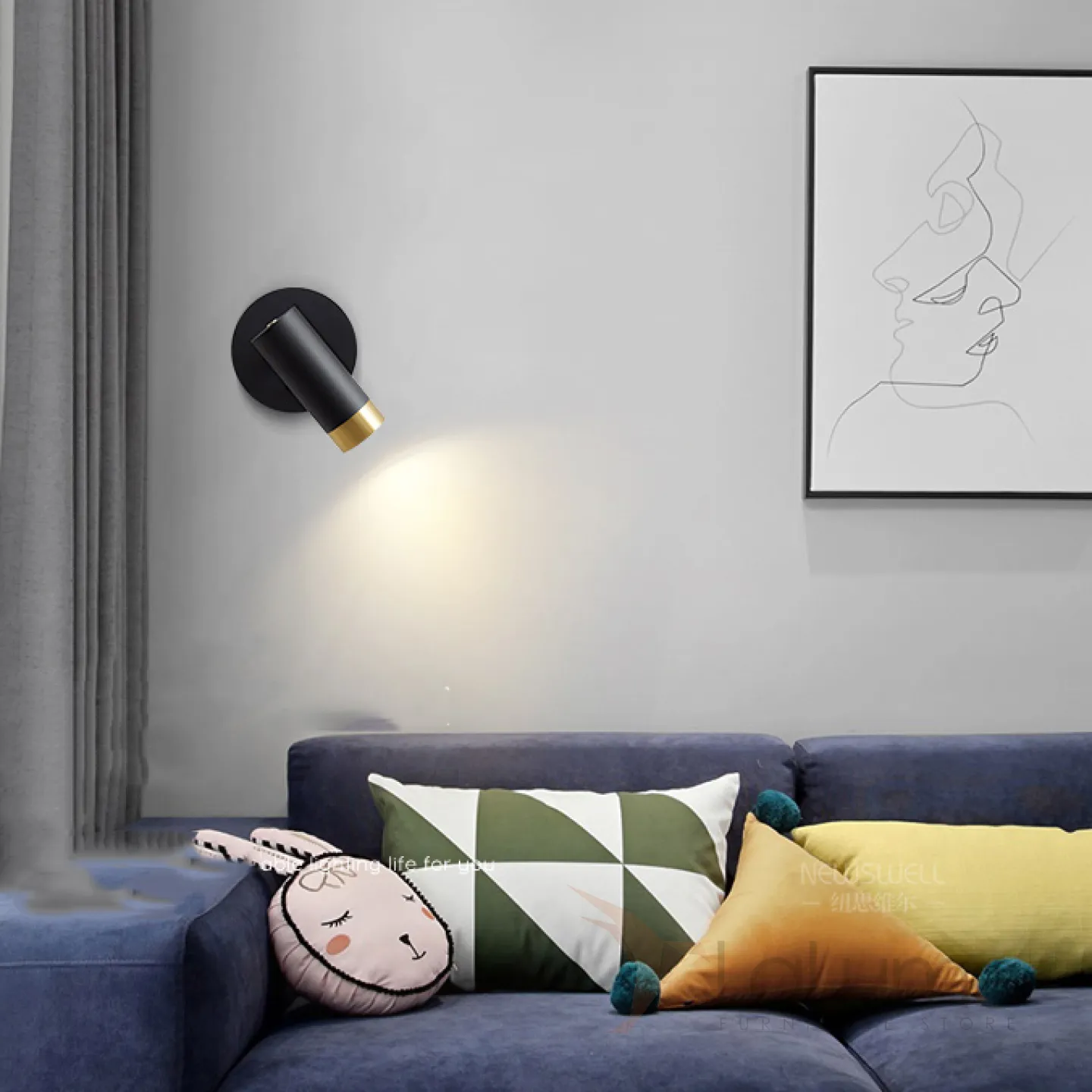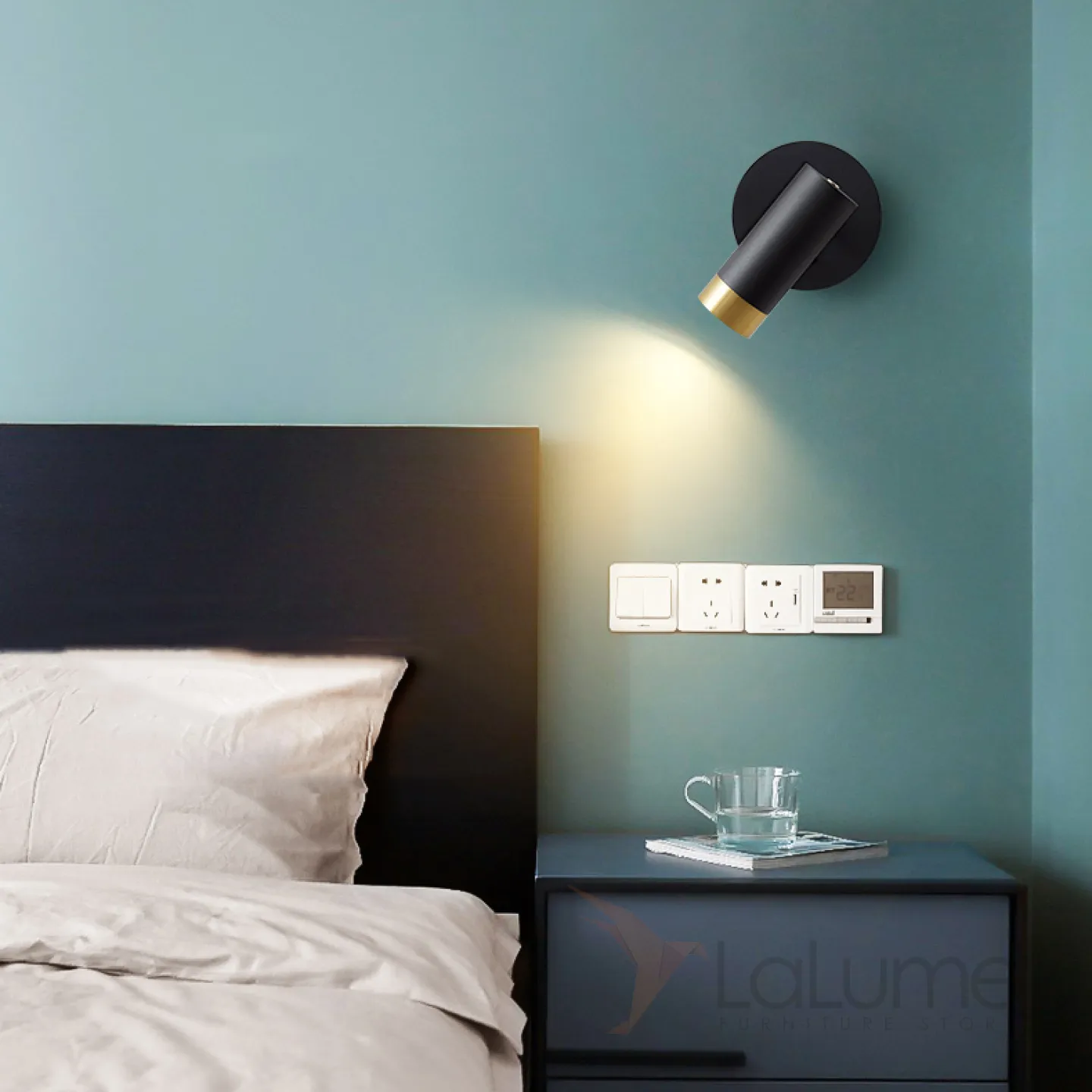 Серия настенных светильников с цилиндрическими плафонами с отделкой оттенка латунь на кронштейне с круглым креплением GET Black