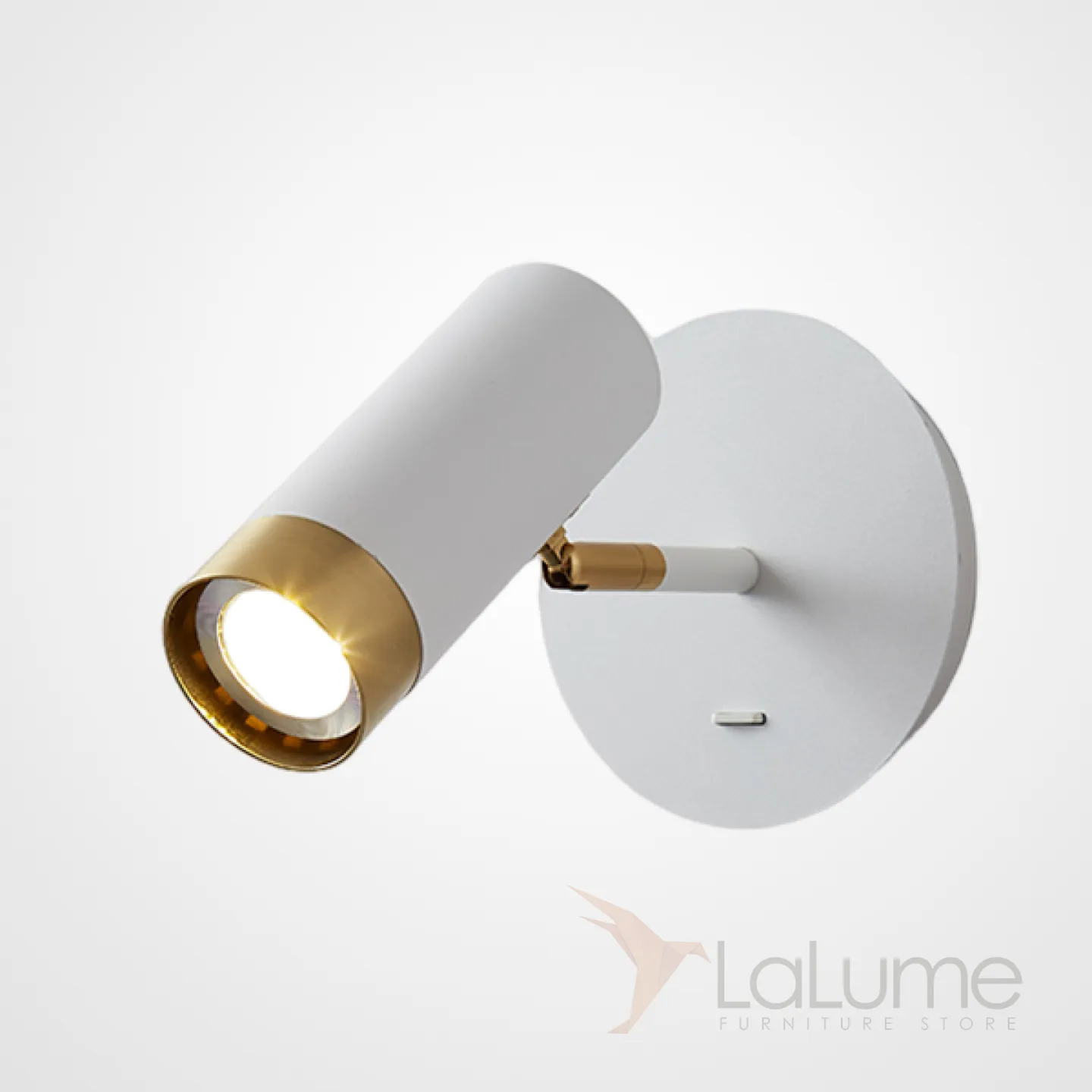 Серия настенных светильников с цилиндрическими плафонами с отделкой оттенка латунь на кронштейне с круглым креплением GET White