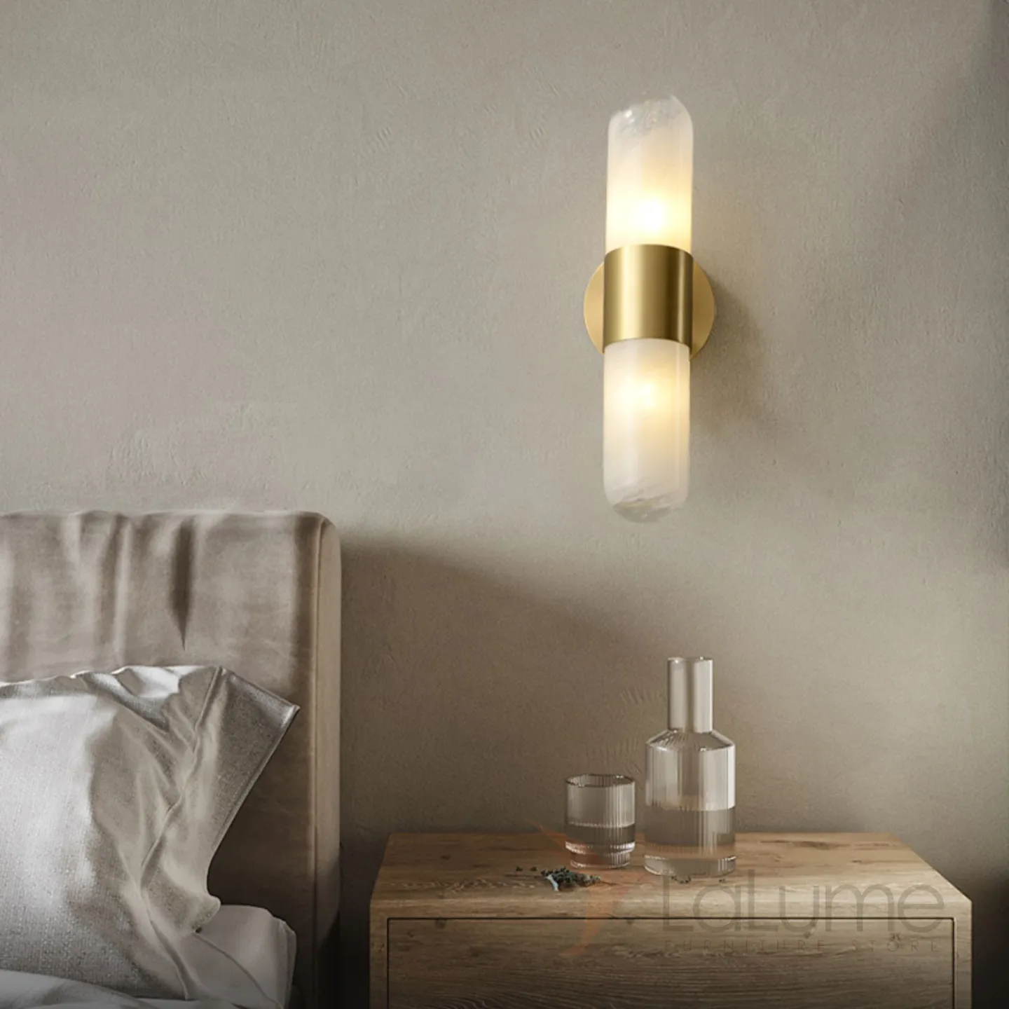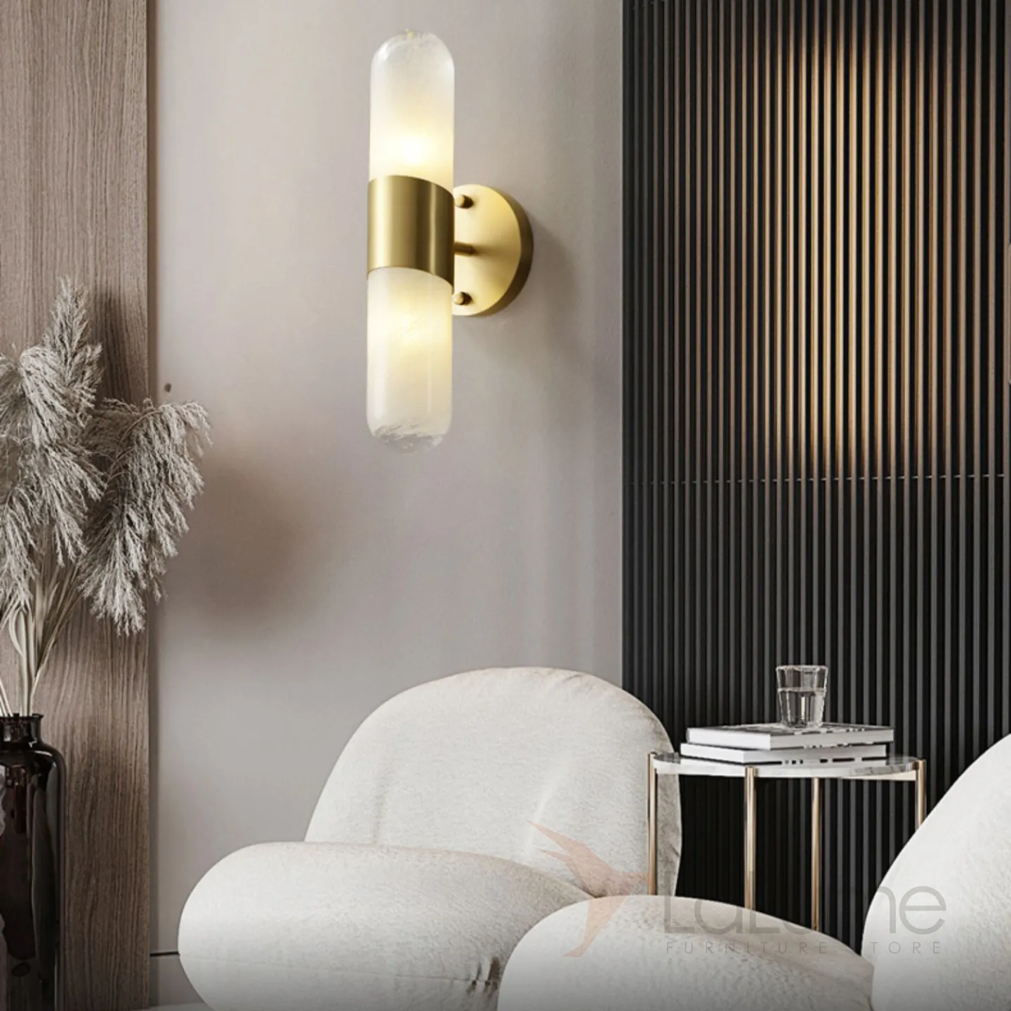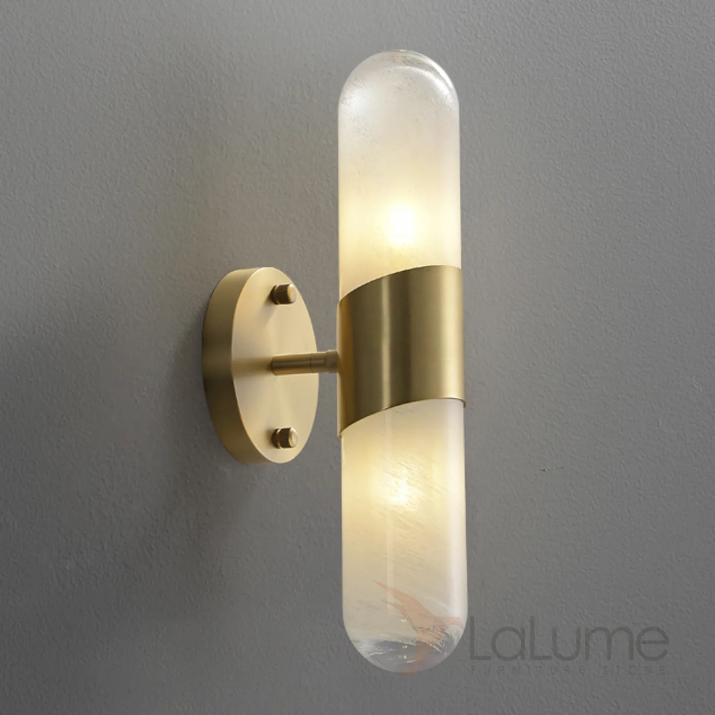 Дизайнерский настенный светильник с двойным цилиндрическим плафоном из белого стекла с эффектом льда LIESEL WALL