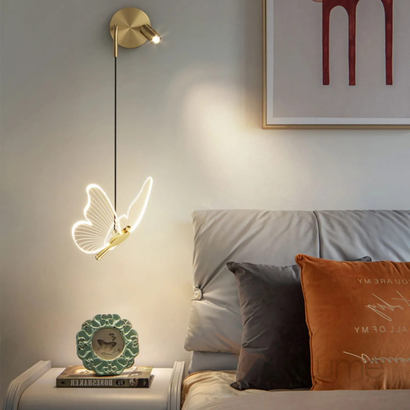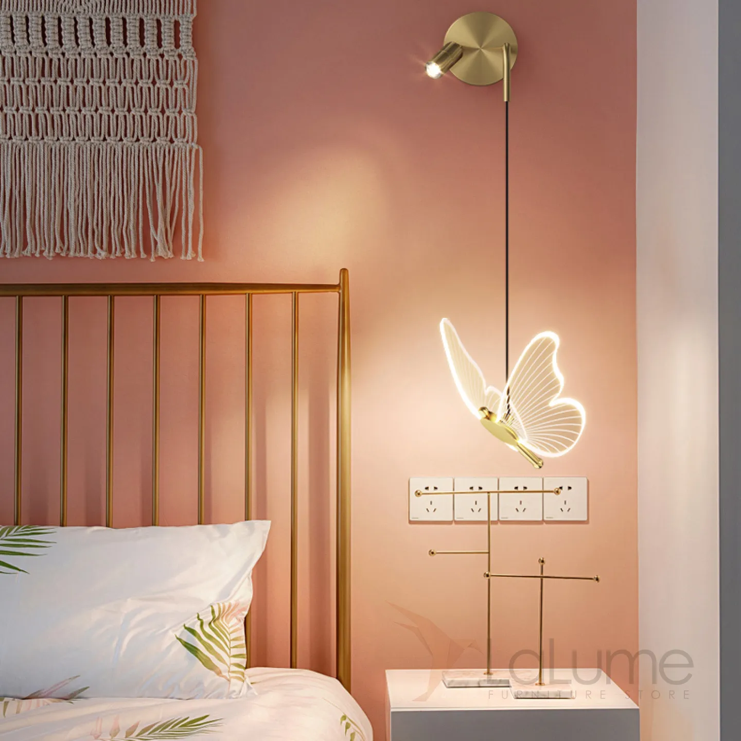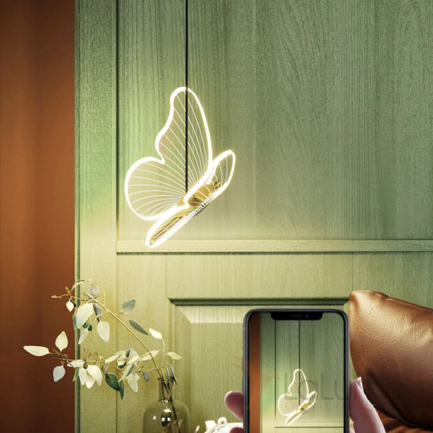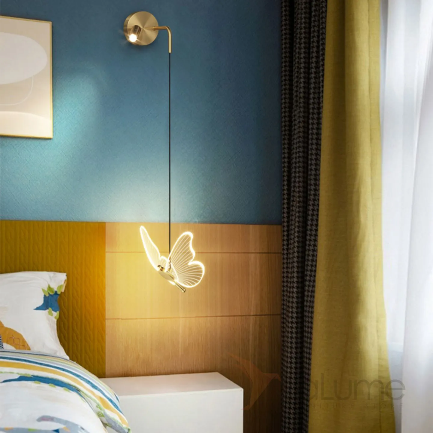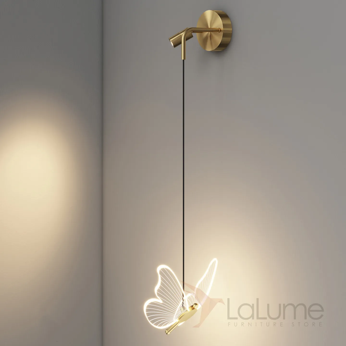 Серия светодиодных симметричных бра с подвесными плафонами, стилизованными под бабочек со светящимися крыльями BABETTA WALL D Left Трехцветный свет