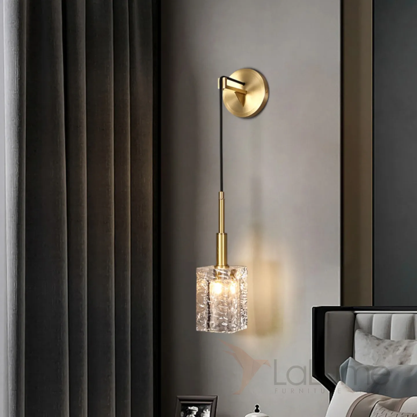 Настенный светильник с подвесным плафоном в виде рельефного стеклянного слитка прямоугольной формы VALDIS WALL