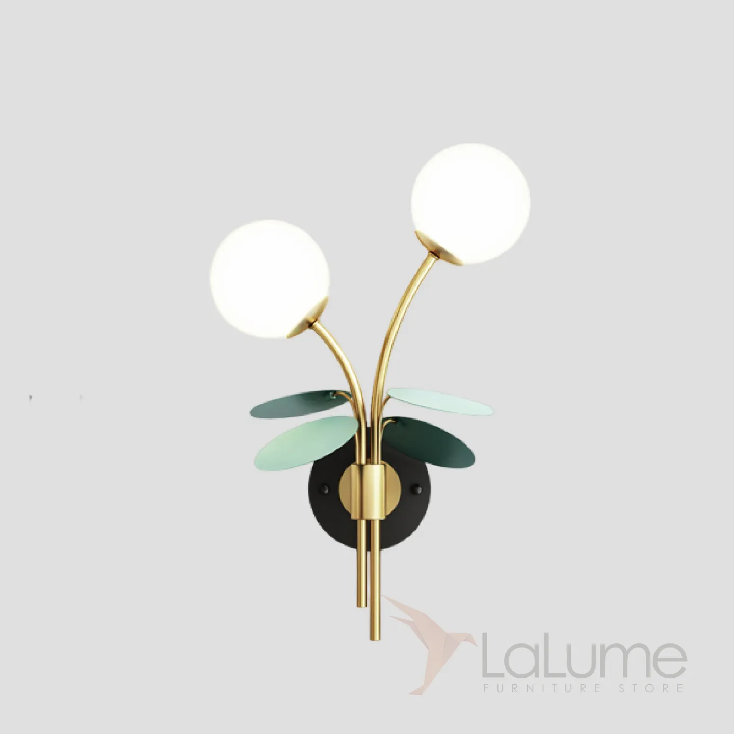 Серия бра с двумя белыми шарообразными плафонами и голубыми декоративными дисками на изогнутых рожках MATISSE B WALL Left