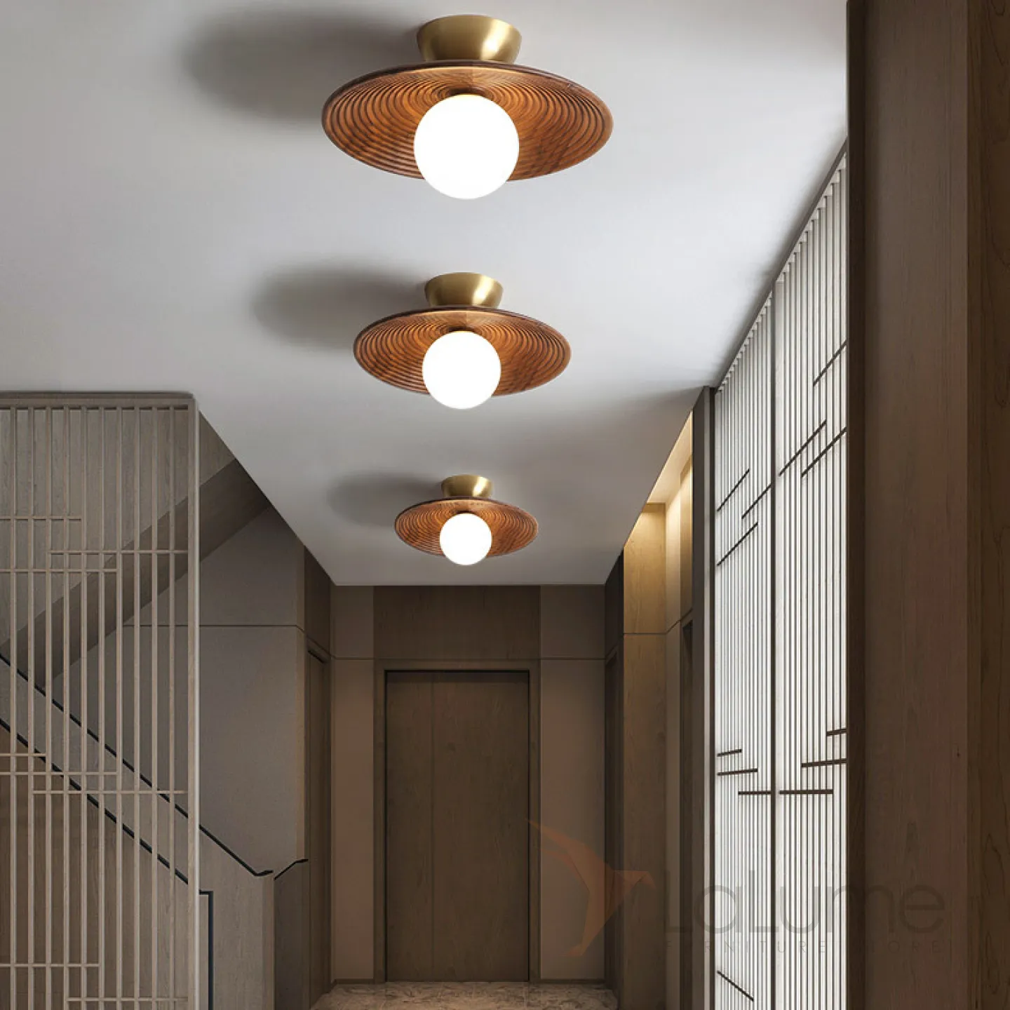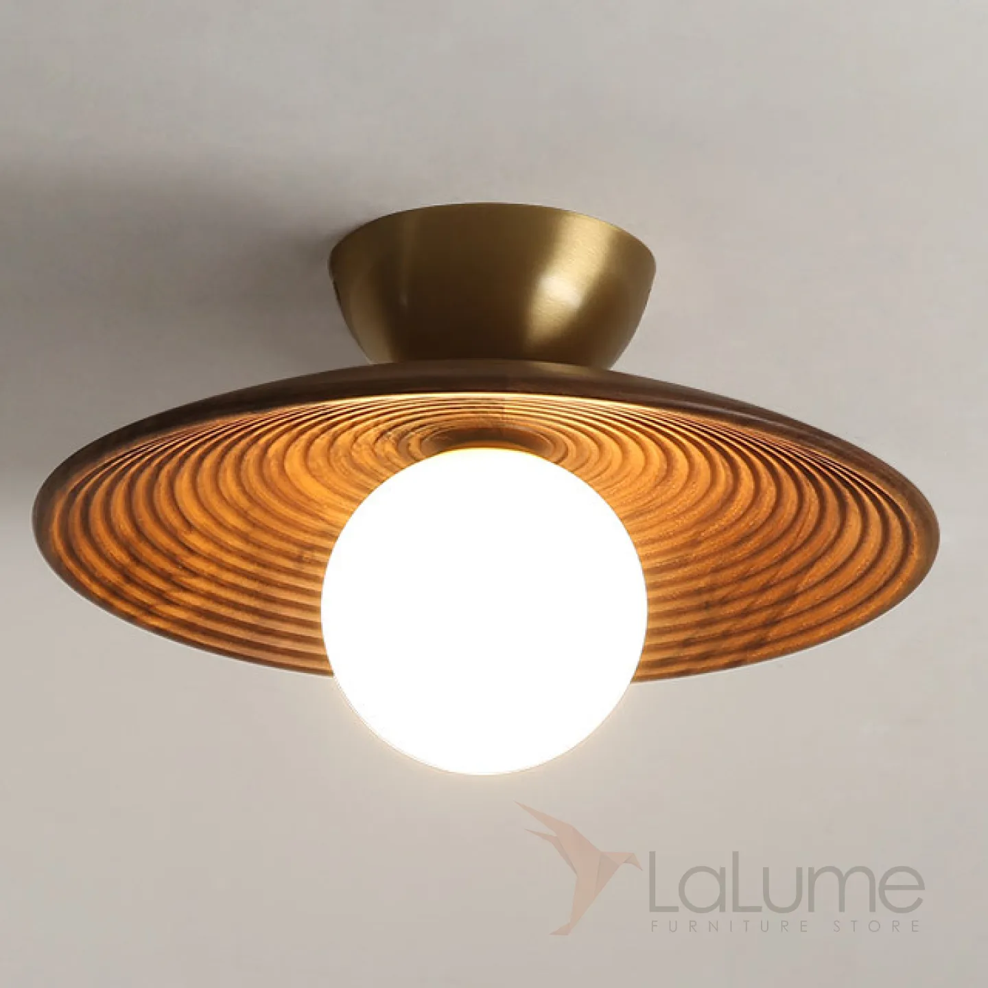 Настенный светильник со стеклянным шарообразным плафоном на рельефной чашеобразной основе из дерева KEDAR