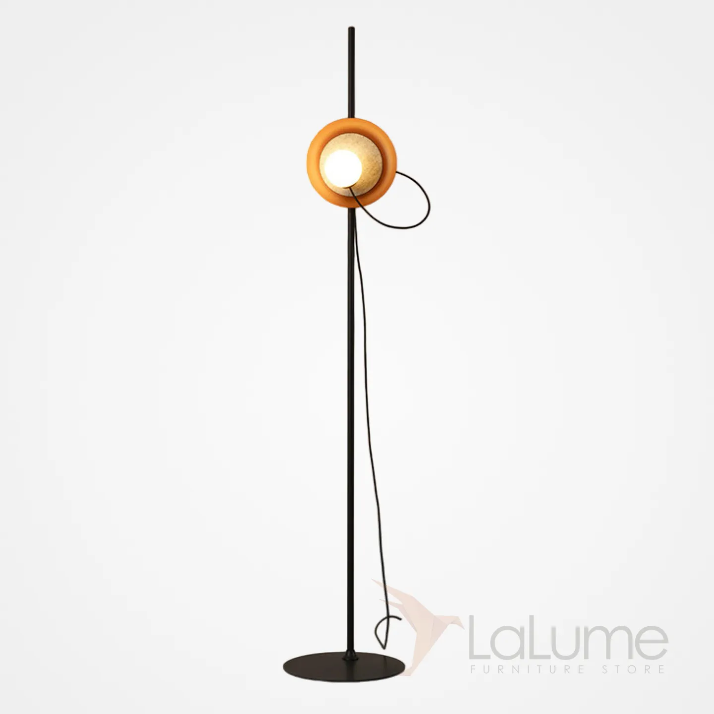 Серия напольных светильников с белыми магнитными шарообразными плафонами с дисковидным абажуром MARGOTT FL D25 Orange