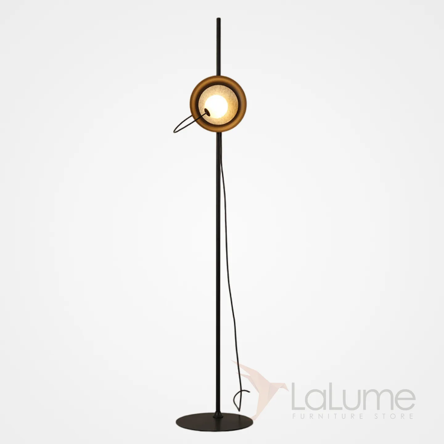 Серия напольных светильников с белыми магнитными шарообразными плафонами с дисковидным абажуром MARGOTT FL D25 Black