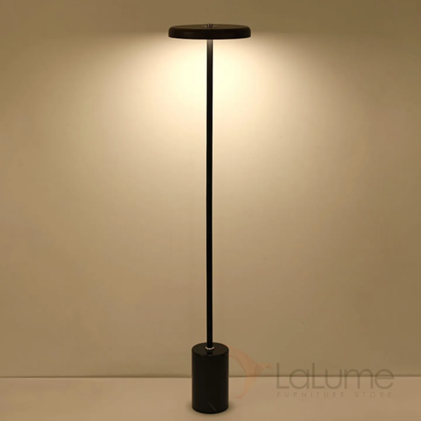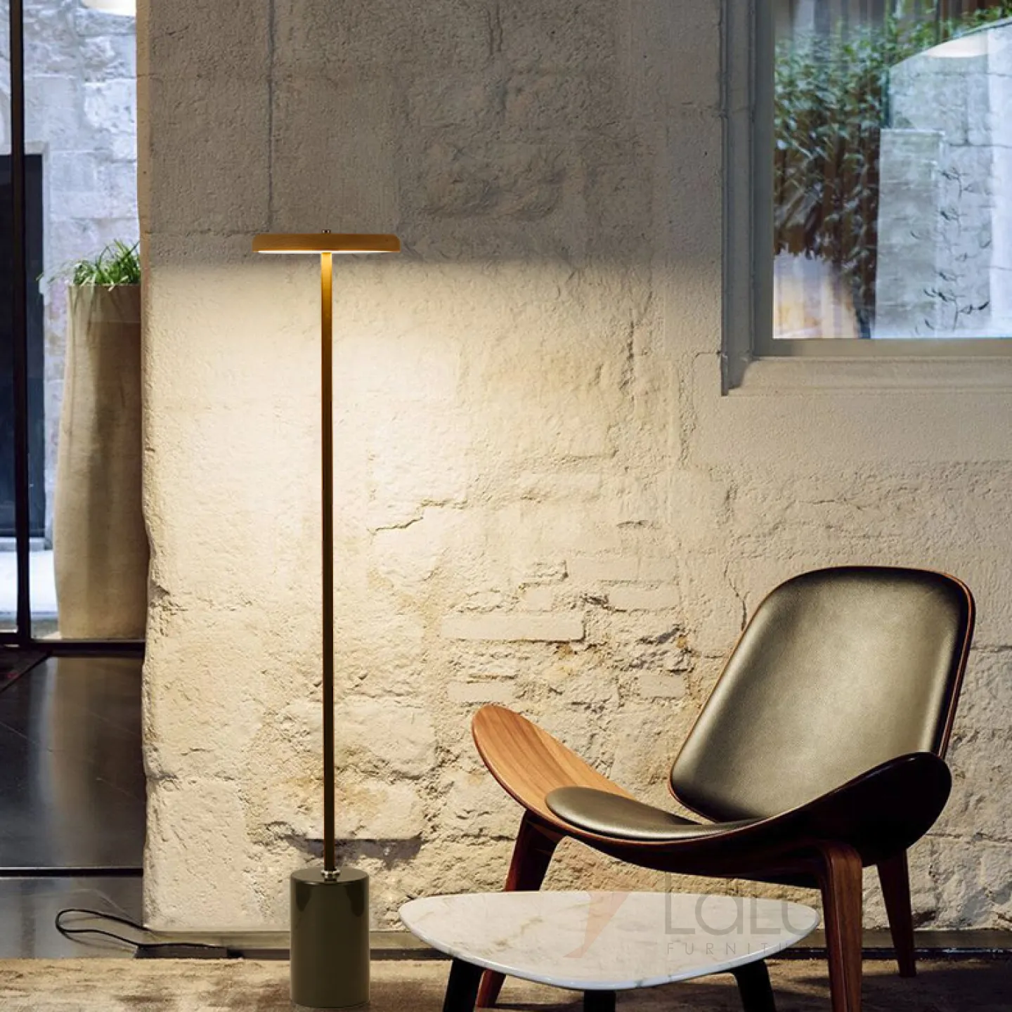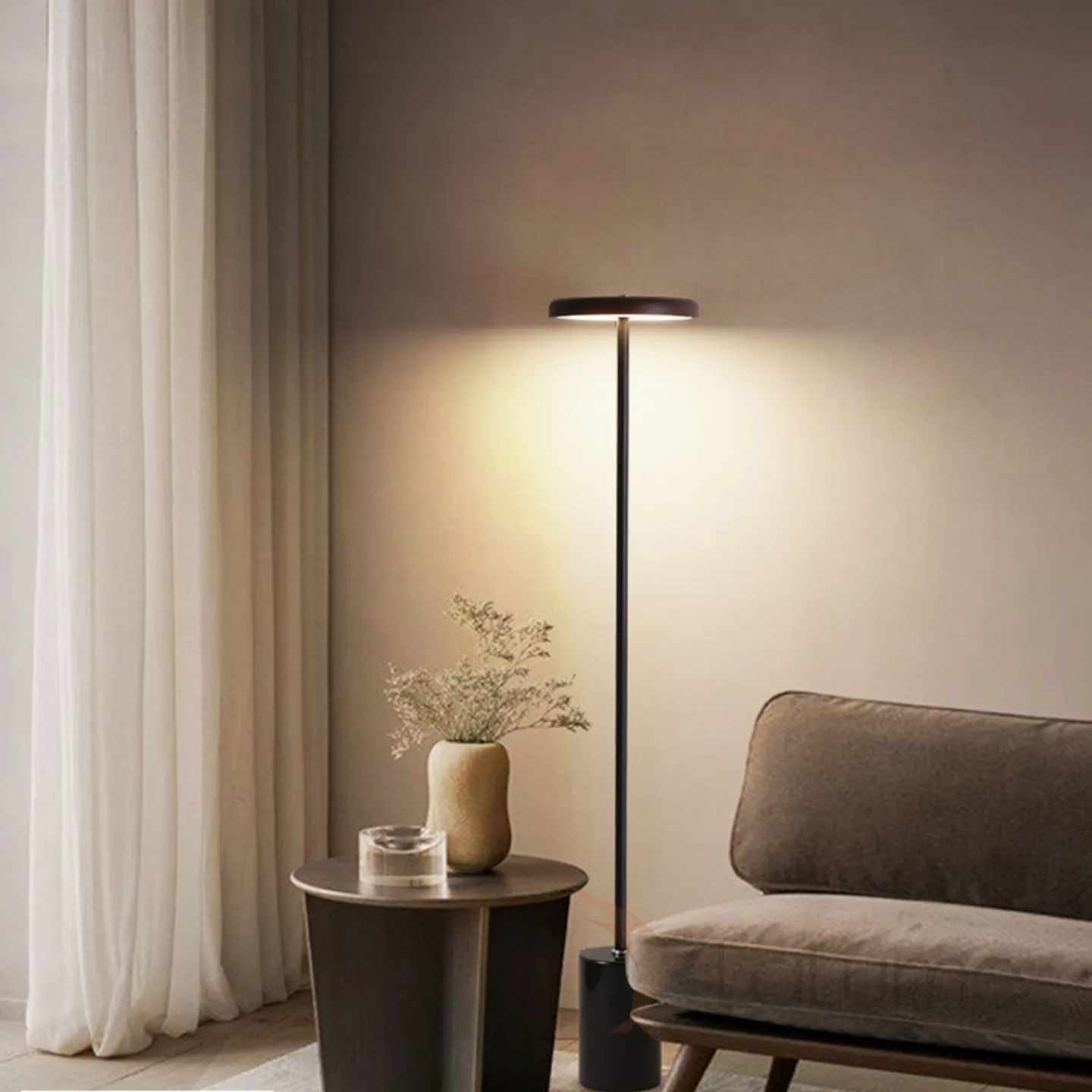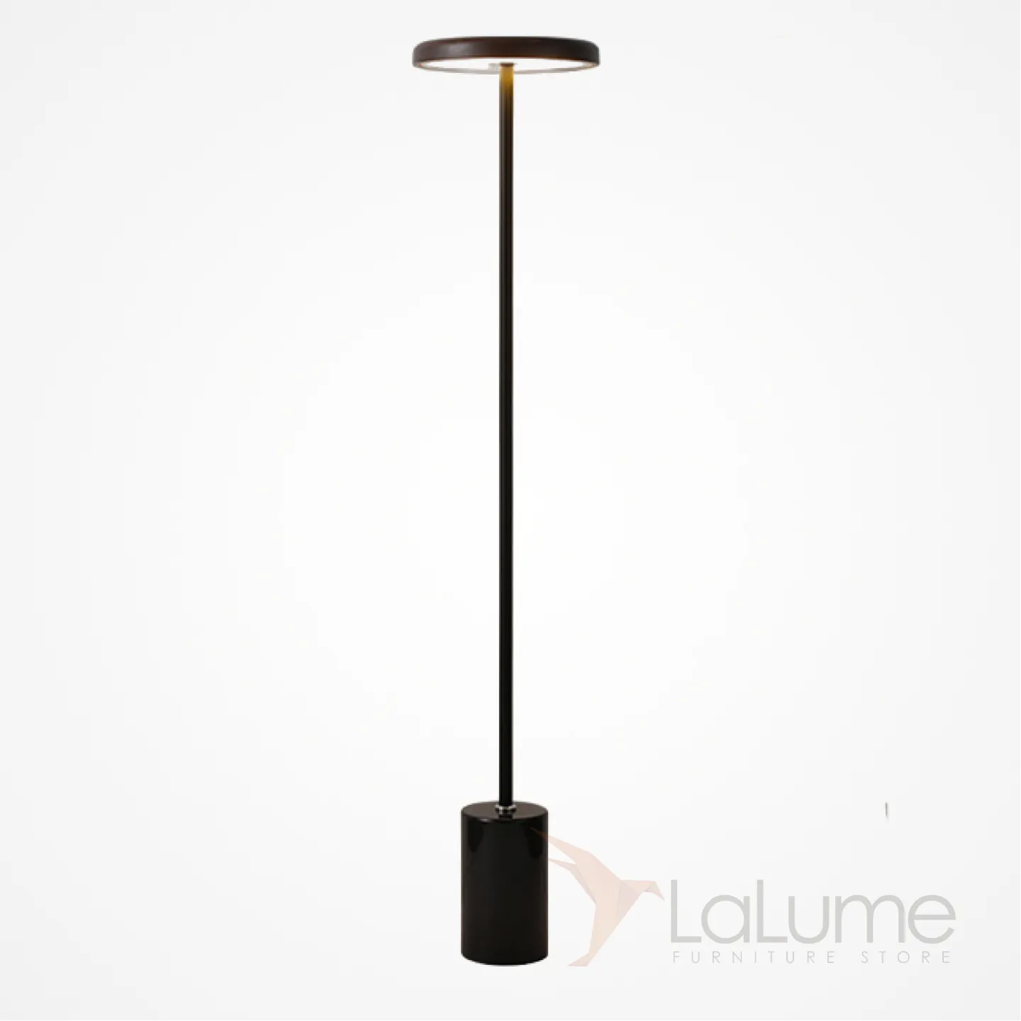 Серия светодиодных торшеров с дисковидным абажуром из светлого и темного дерева на вертикальной стойке с мраморным основанием DEBBY Dark brown