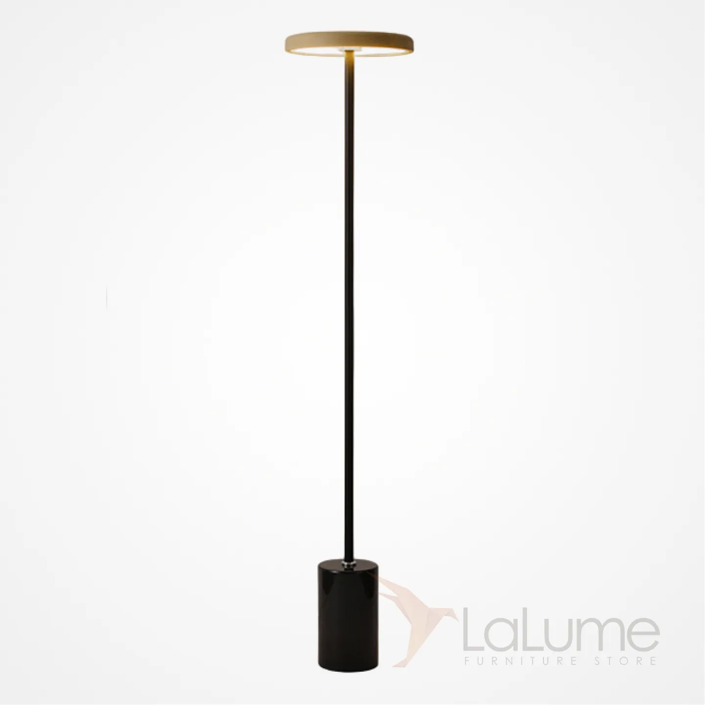 Серия светодиодных торшеров с дисковидным абажуром из светлого и темного дерева на вертикальной стойке с мраморным основанием DEBBY Light brown