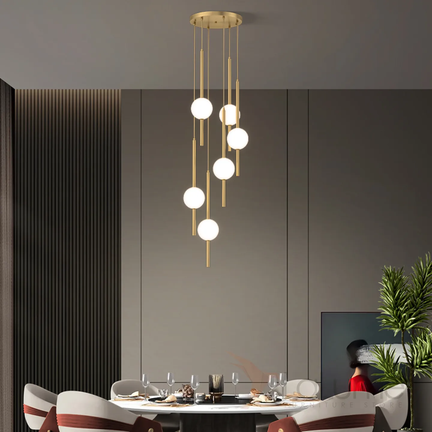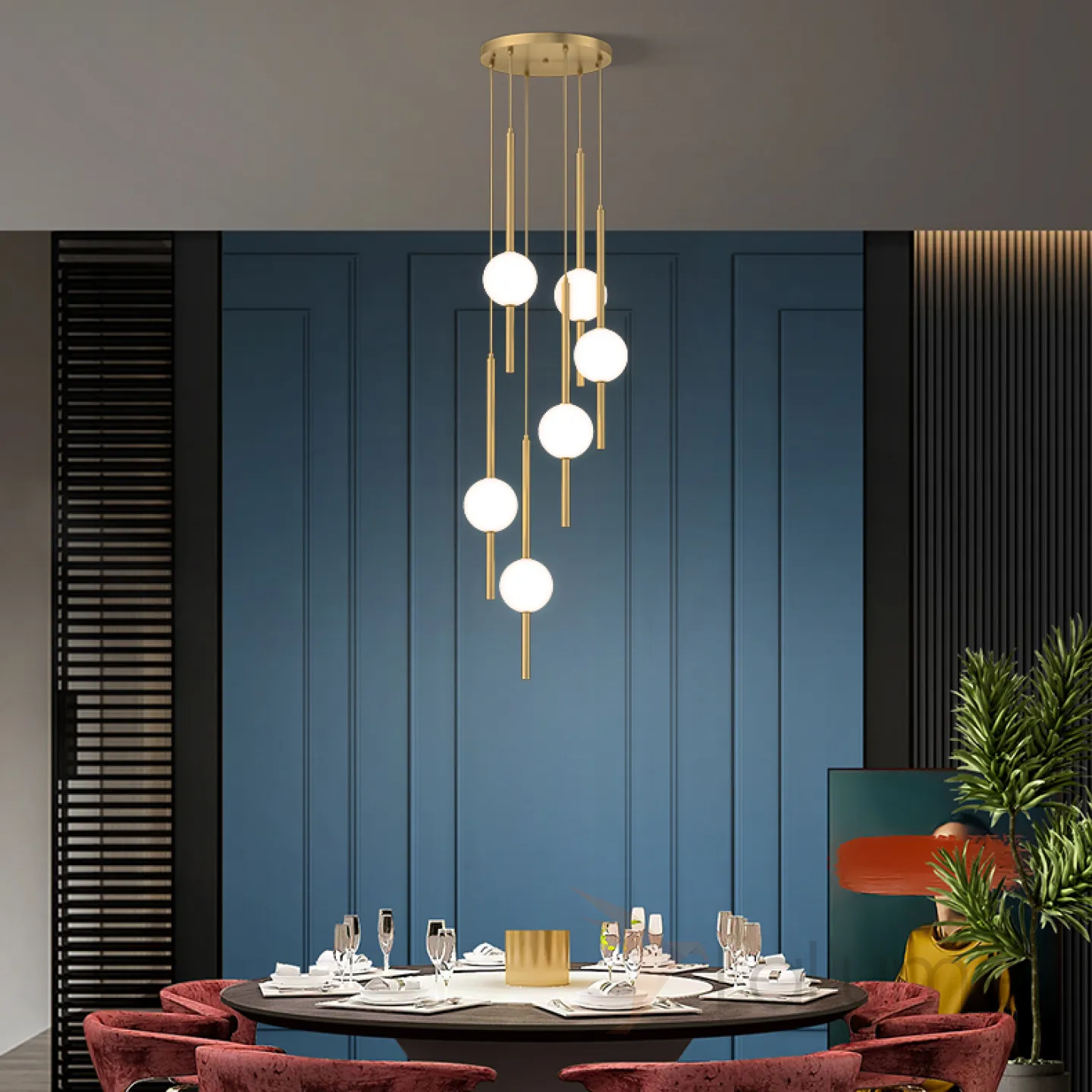 Готовая комбинация подвесных светодиодных светильников с белыми шарообразными плафонами из стекла JENNA COMBO D30 L6